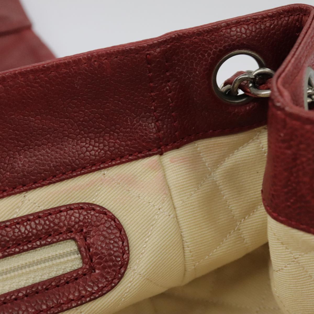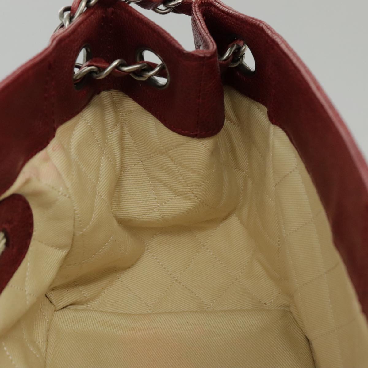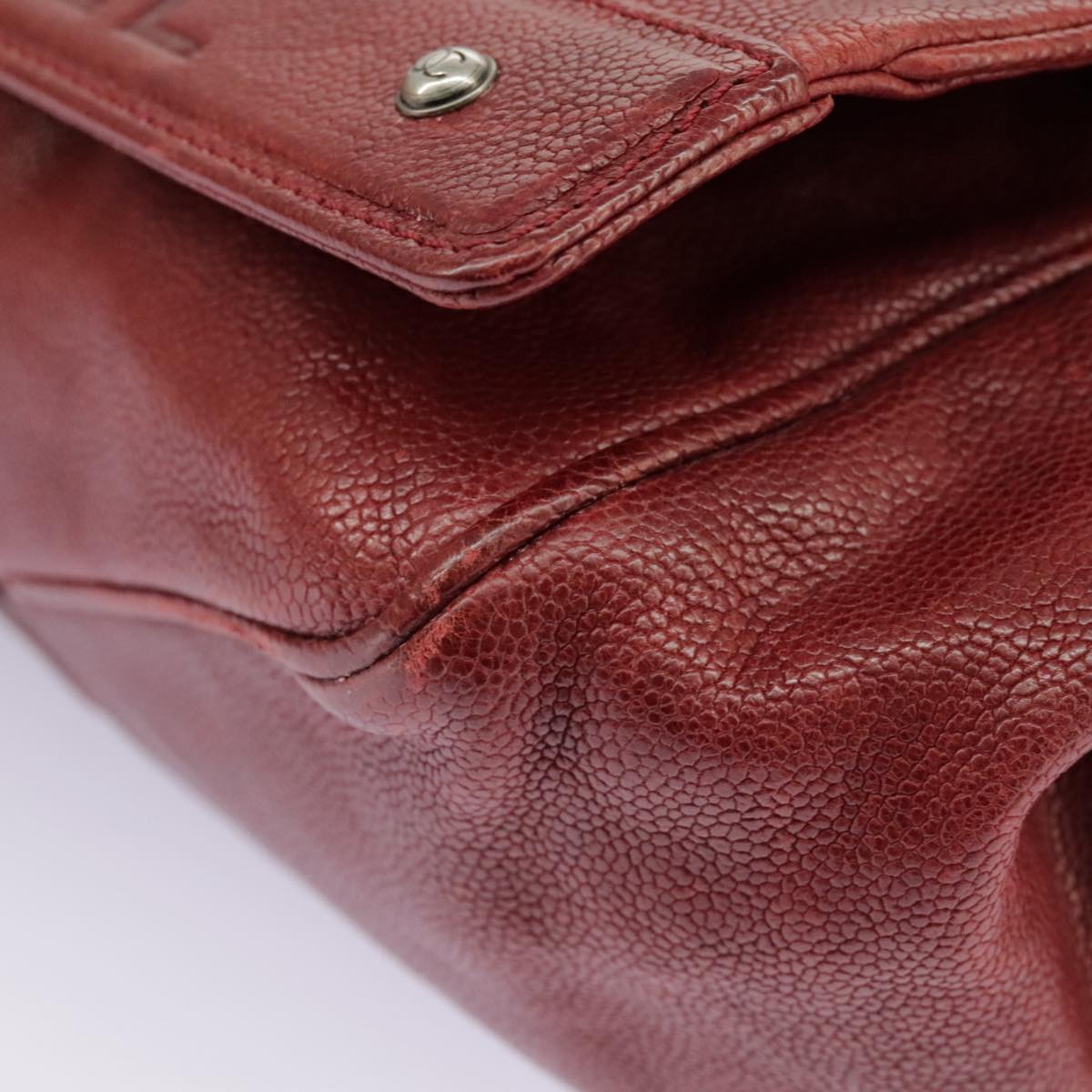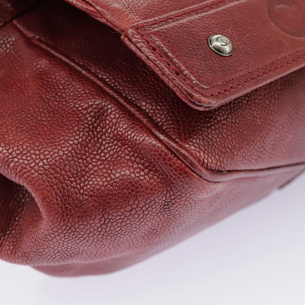 CHANEL Chain Hand Bag Caviar Skin Beige Silver CC bs19418