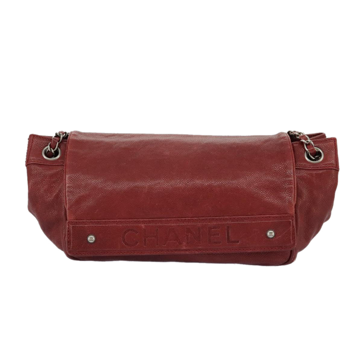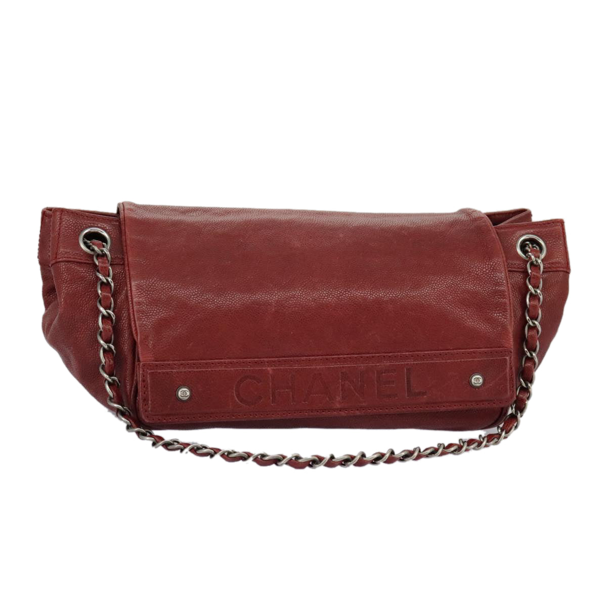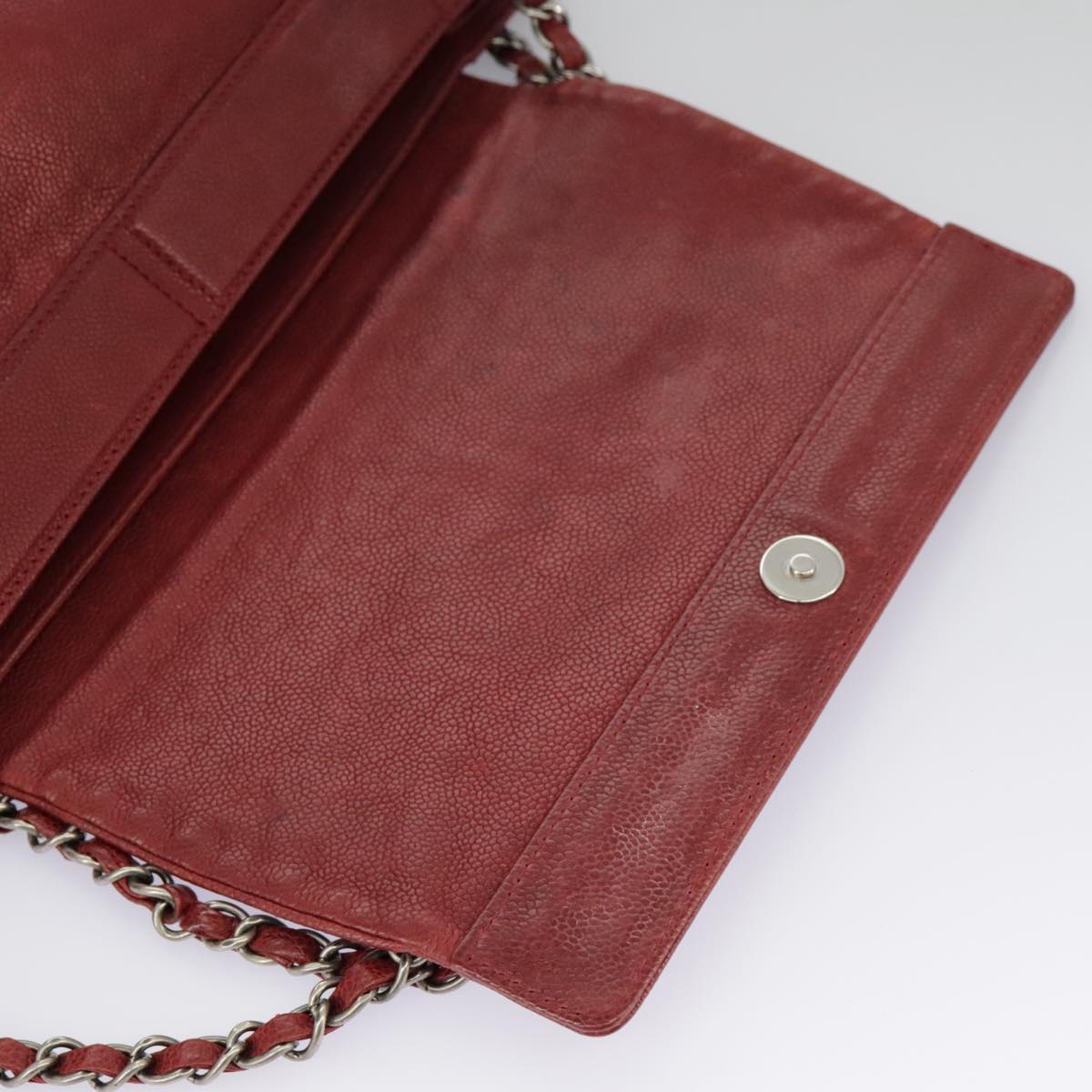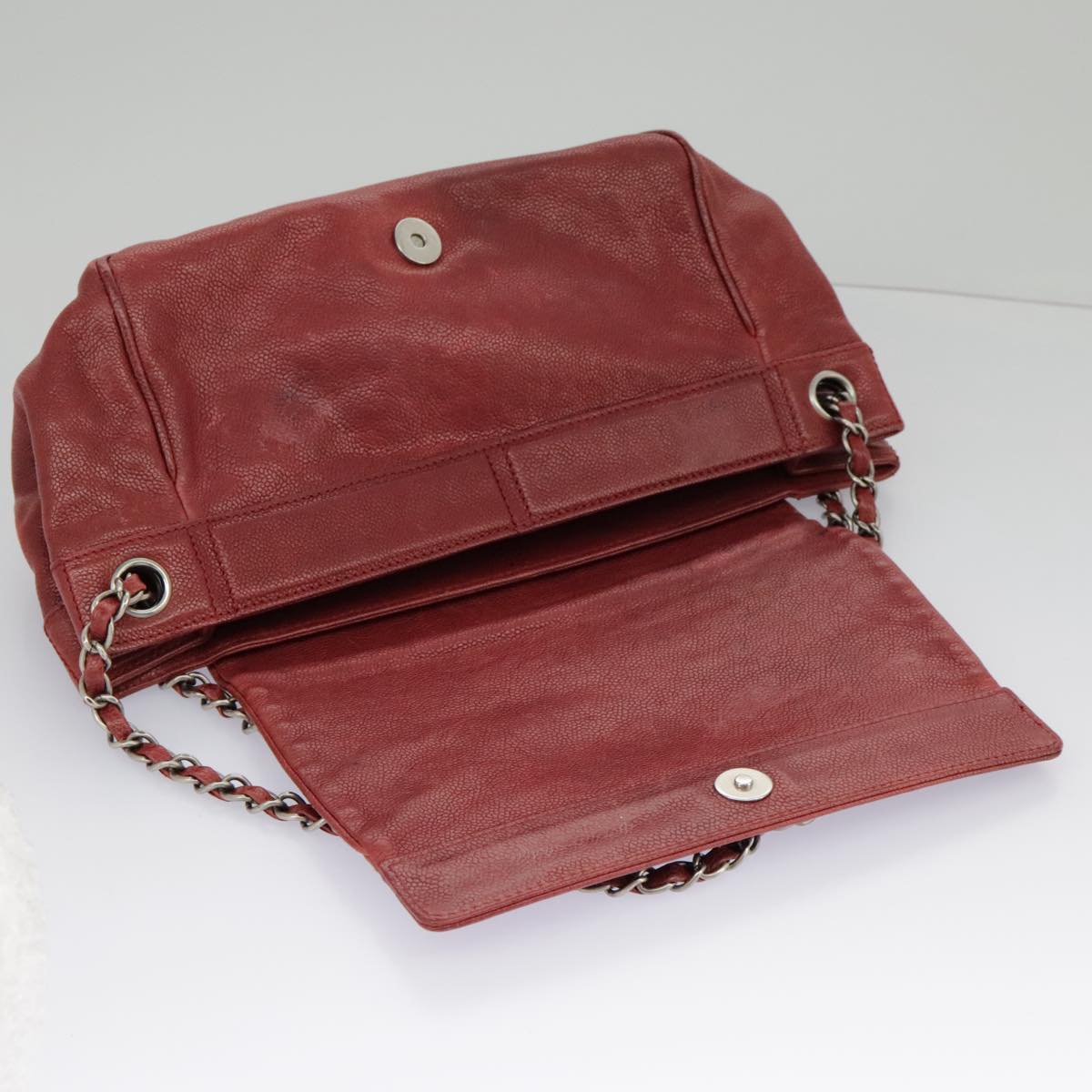 CHANEL Chain Hand Bag Caviar Skin Beige Silver CC bs19418