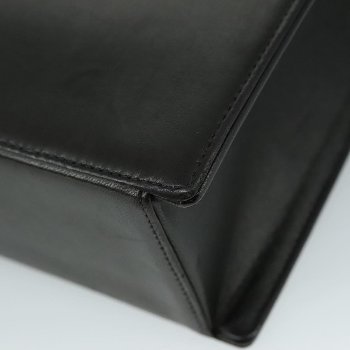 CHANEL Chain Hand Bag Leather Black Gold CC PP125