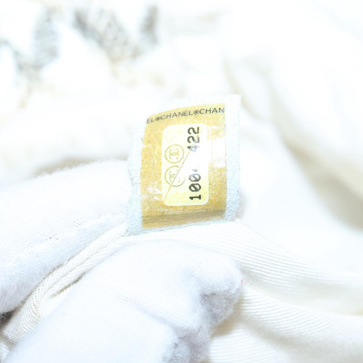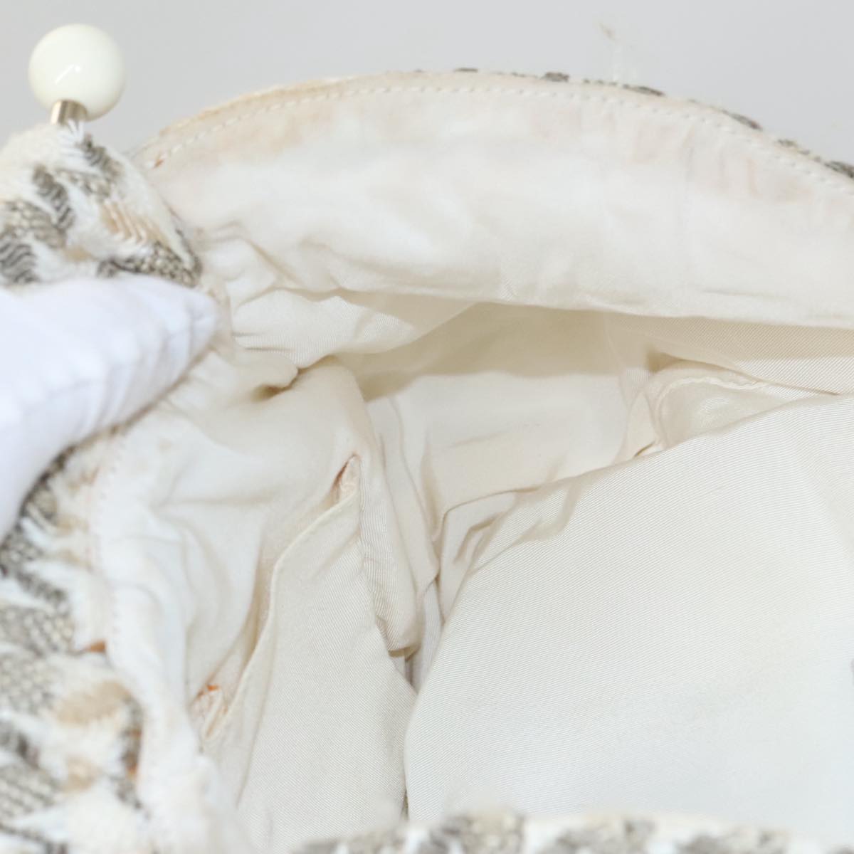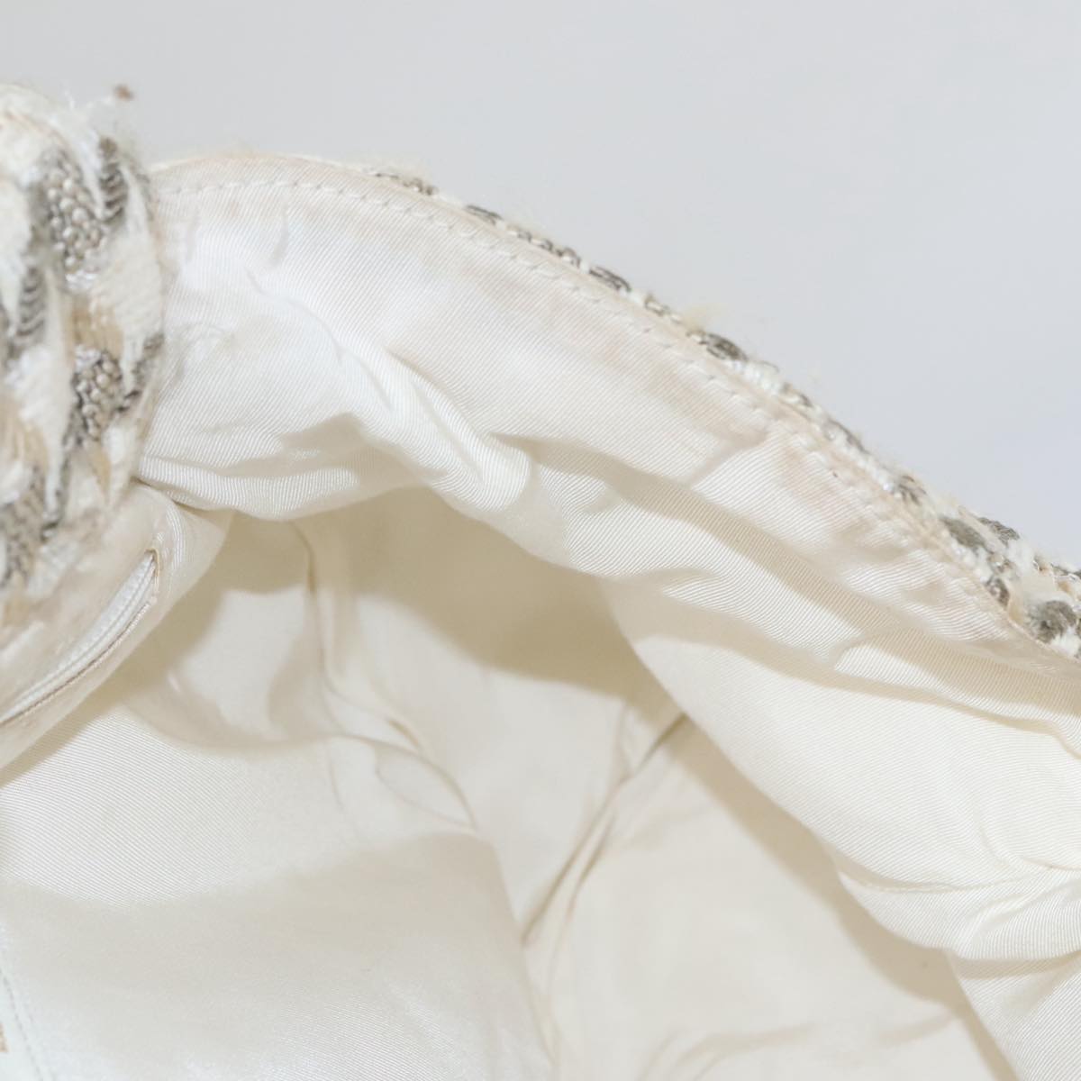 CHANEL Chain Hand Bag tweed Cream CC 106431