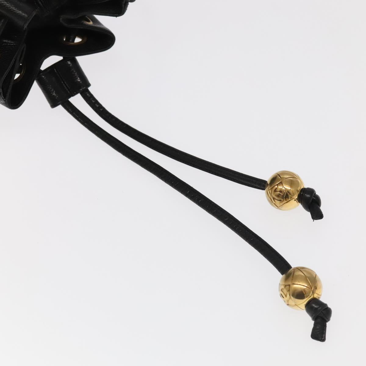 CHANEL Chain Shoulder Bag Caviar Skin Black Gold CC PP101