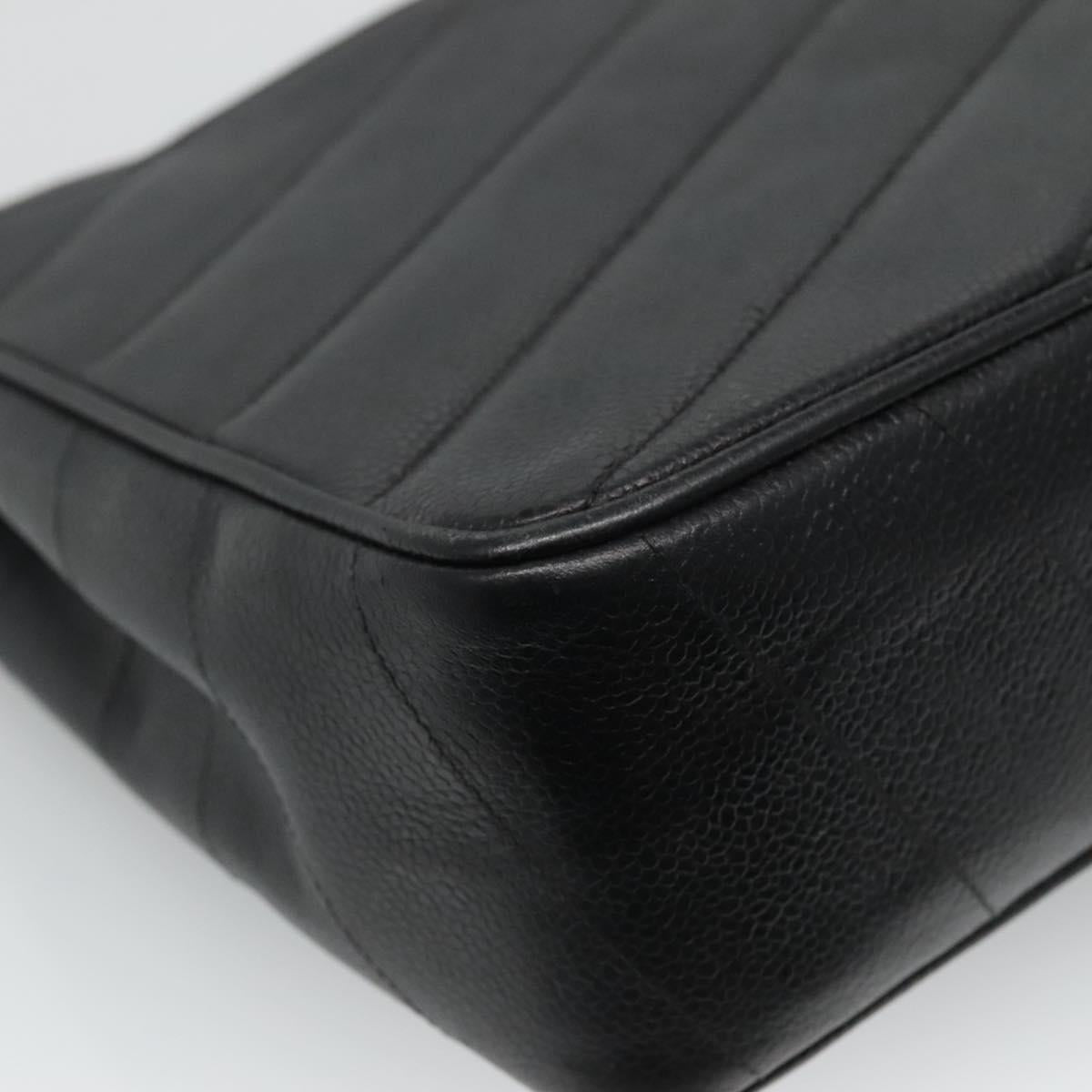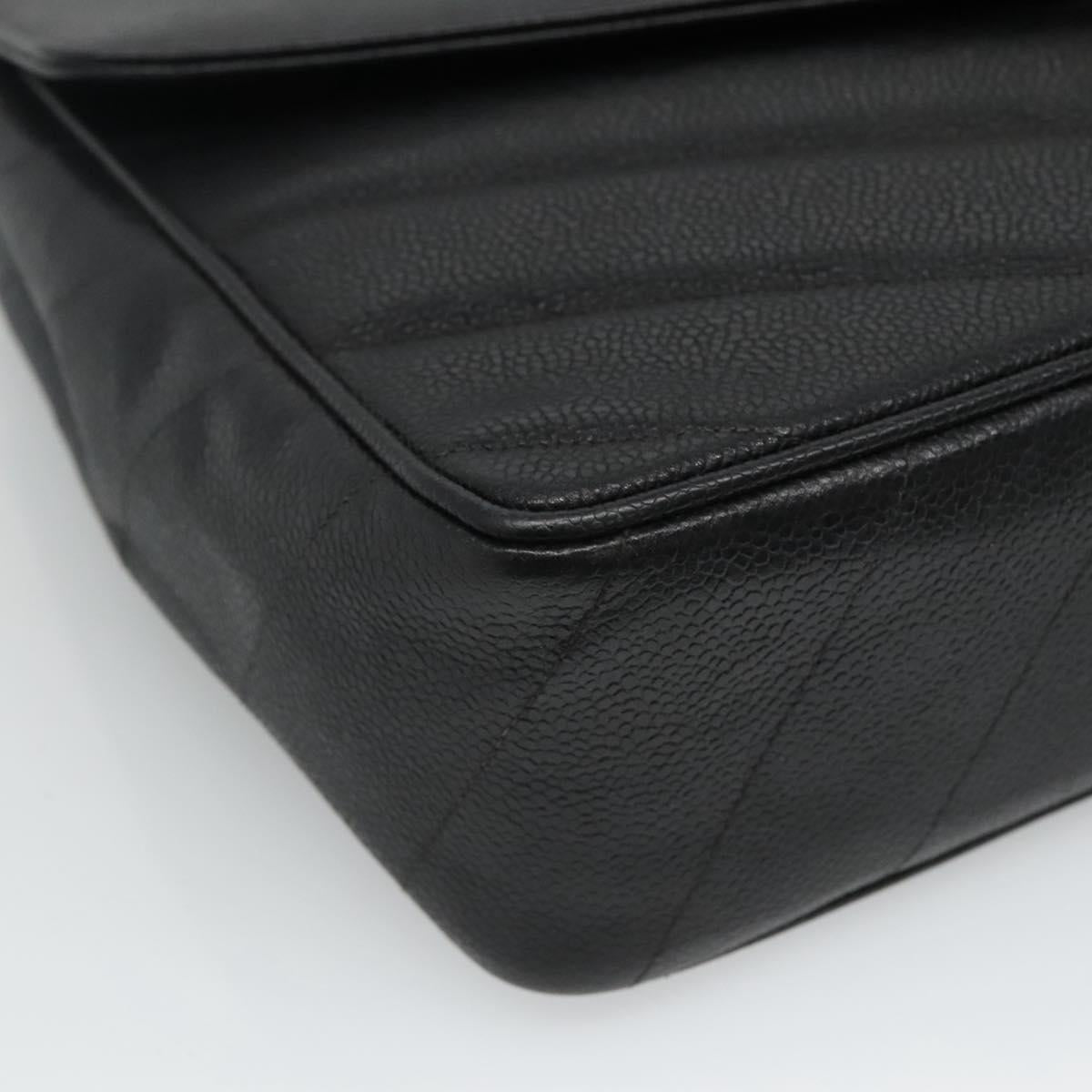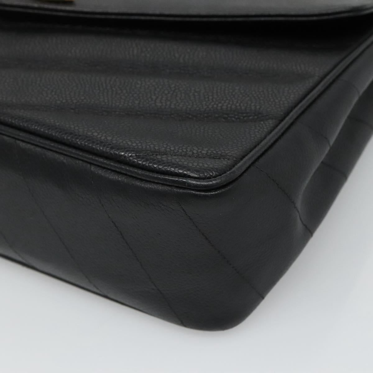 CHANEL Chain Shoulder Bag Caviar Skin Black Gold CC PP181