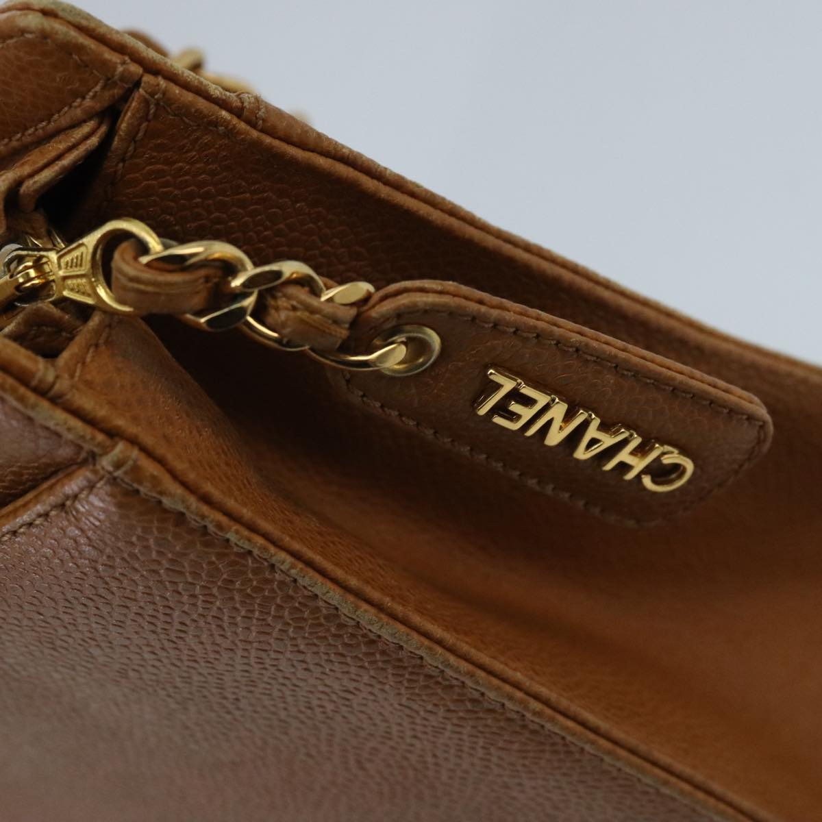 CHANEL Chain Shoulder Bag Caviar Skin Brown Gold CC 96239