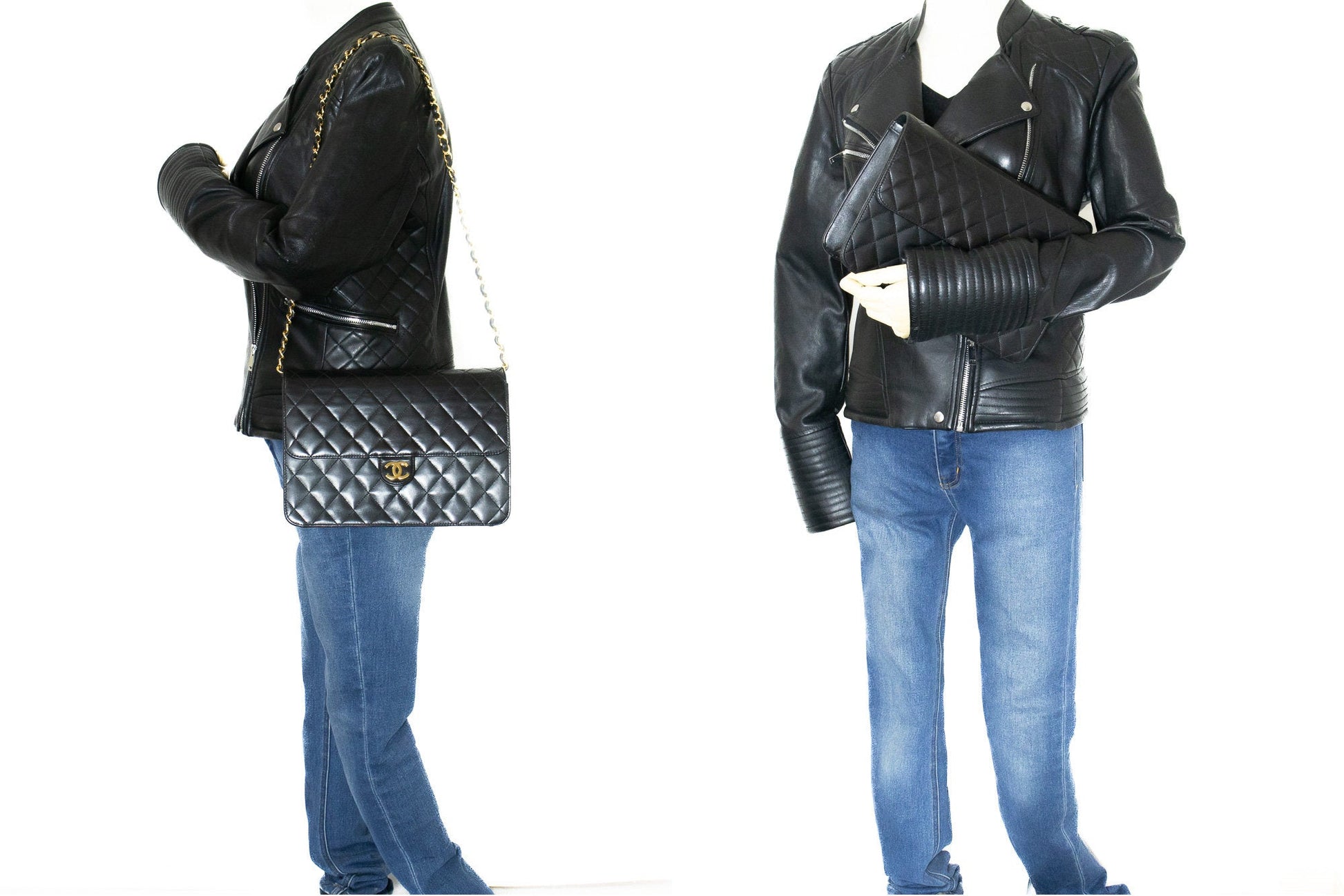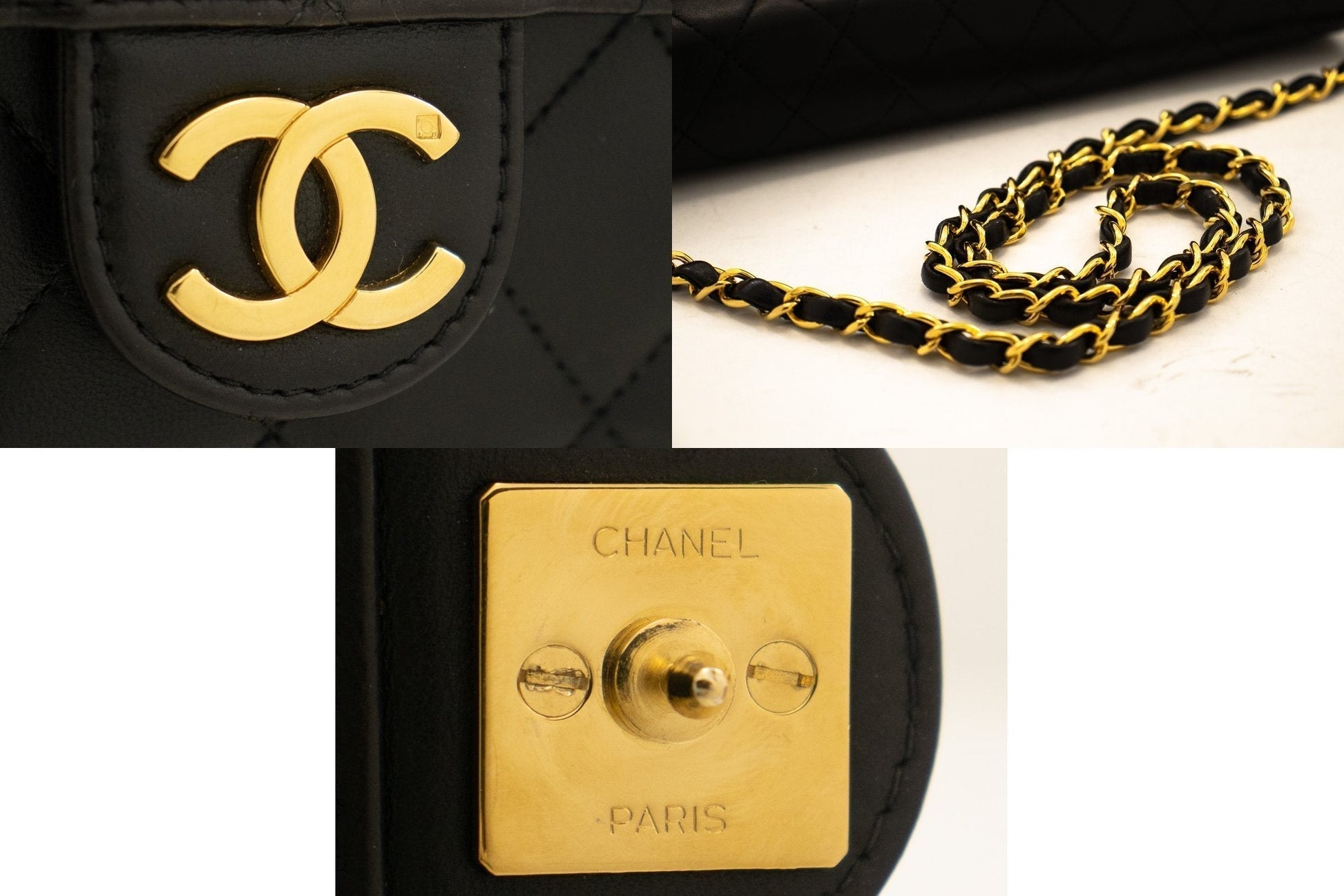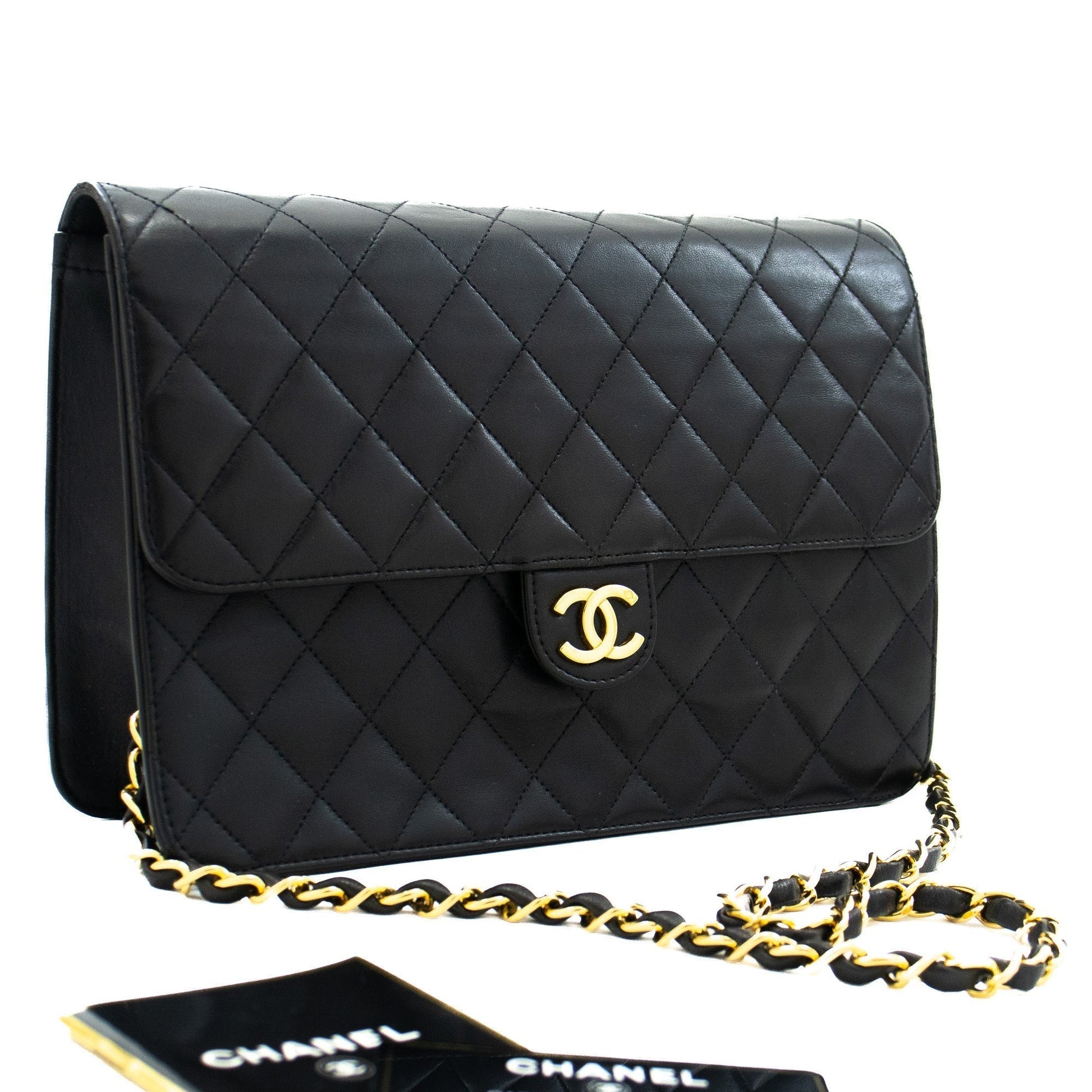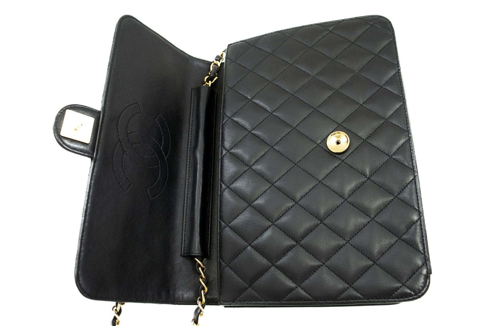 An CHANEL Chain Shoulder Bag Clutch Black Quilted Flap made of black Lambskin Purse j78 This item is Vintage / Classic. The year of manufacture would be 1997-1999.