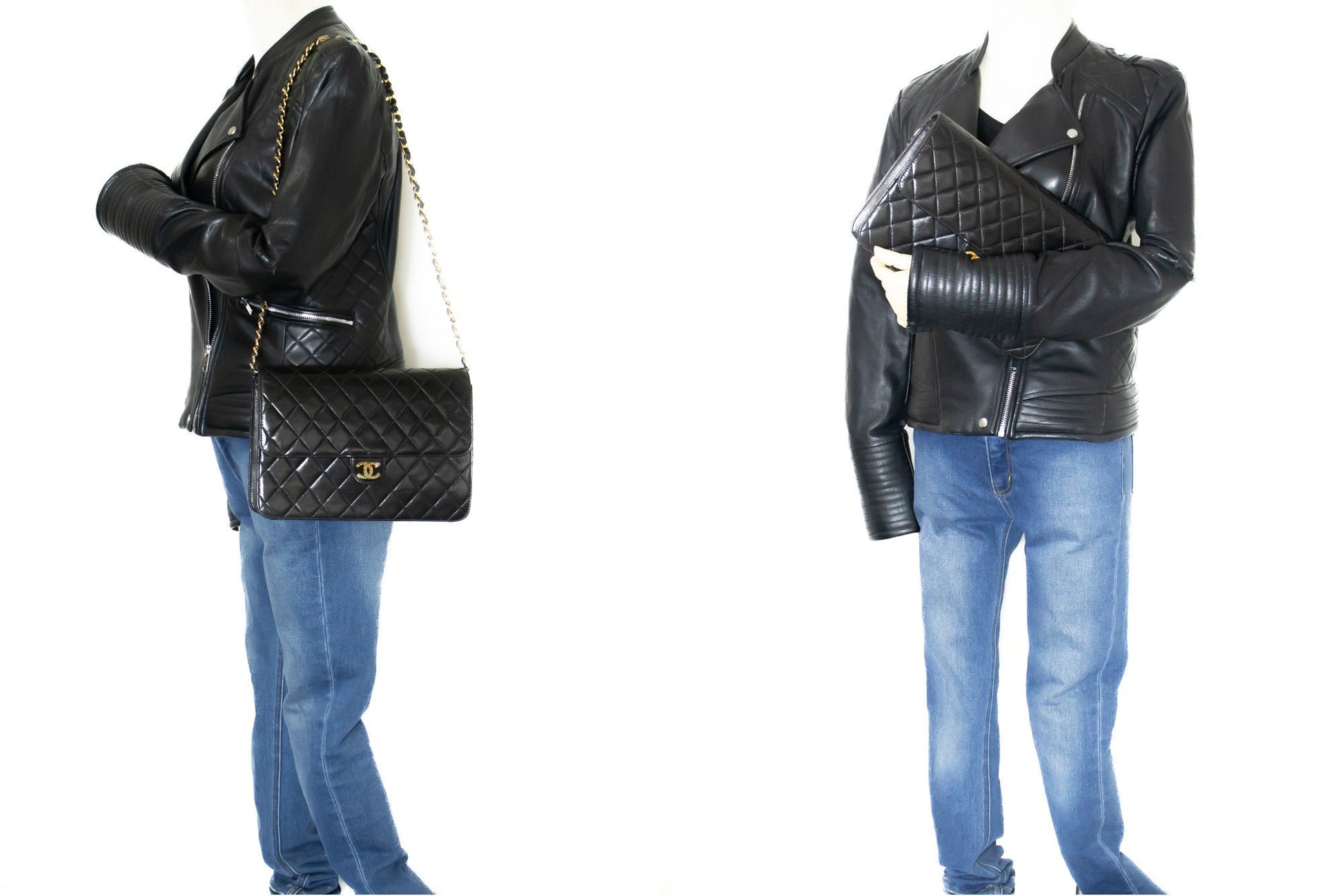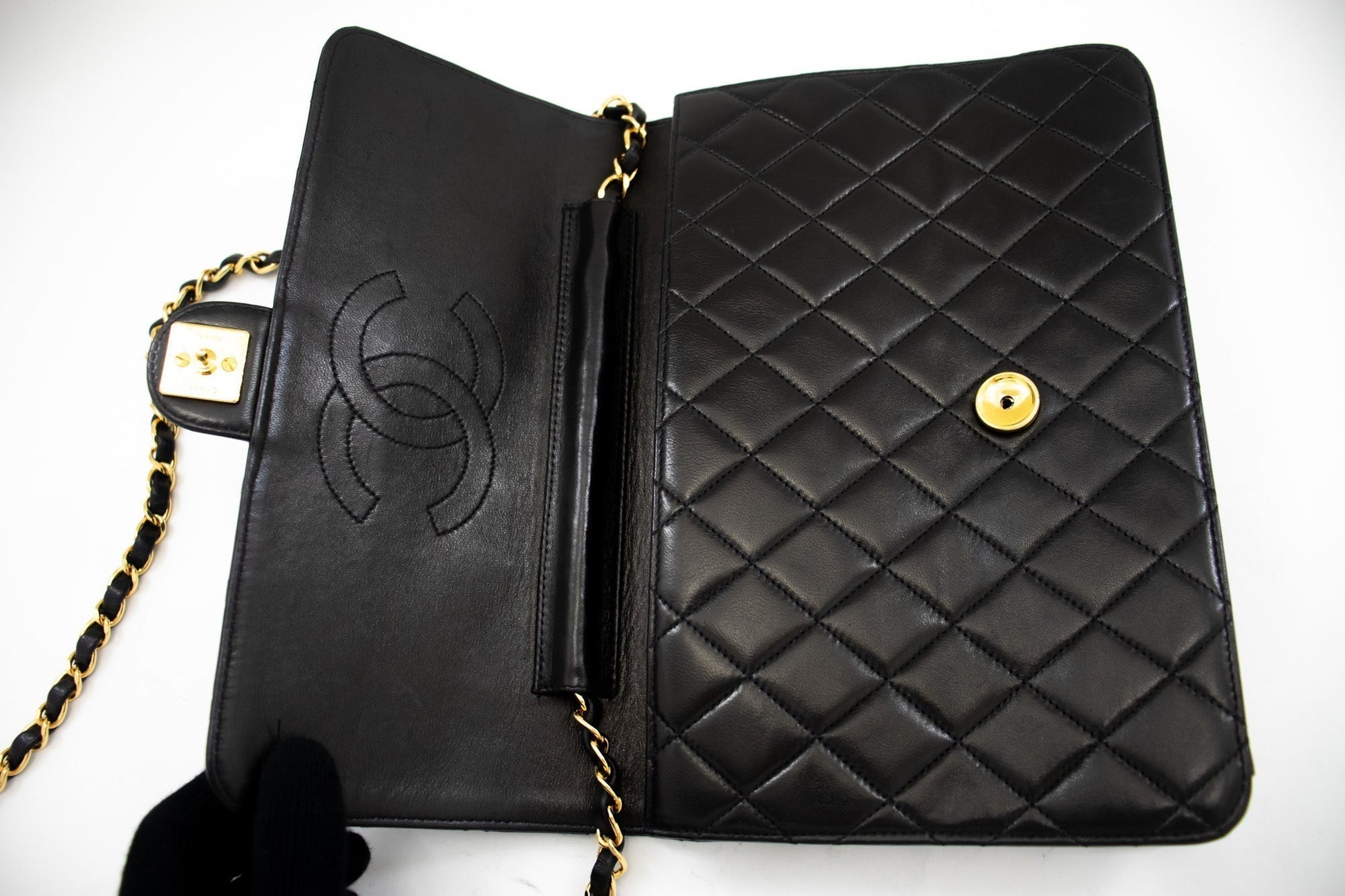 An CHANEL Chain Shoulder Bag Clutch Black Quilted Flap made of black Lambskin Purse k36 This item is Vintage / Classic. The year of manufacture would be 1994-1996.