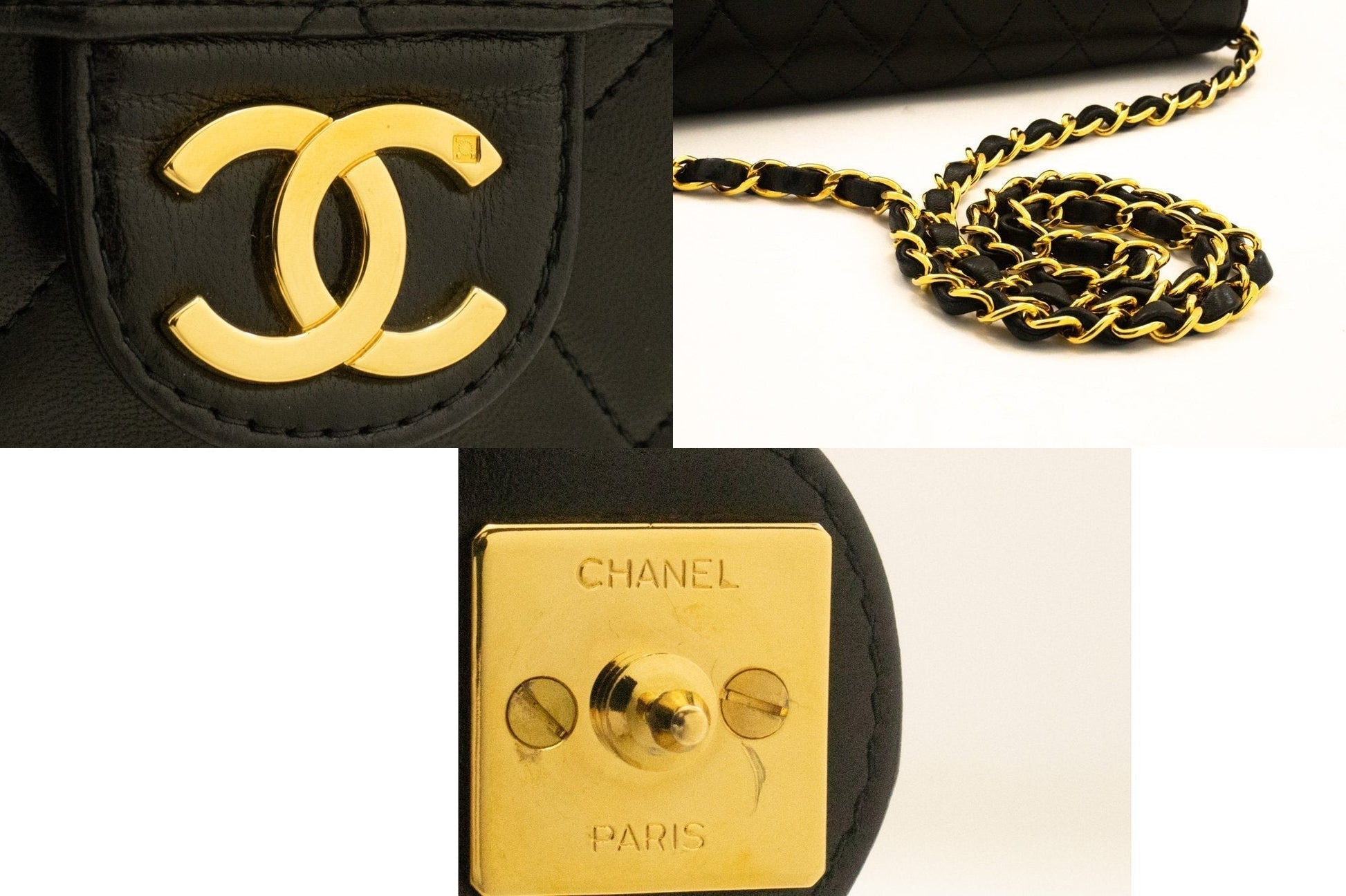 CHANEL Chain Shoulder Bag Clutch Black Quilted Flap Lambskin Purse k36