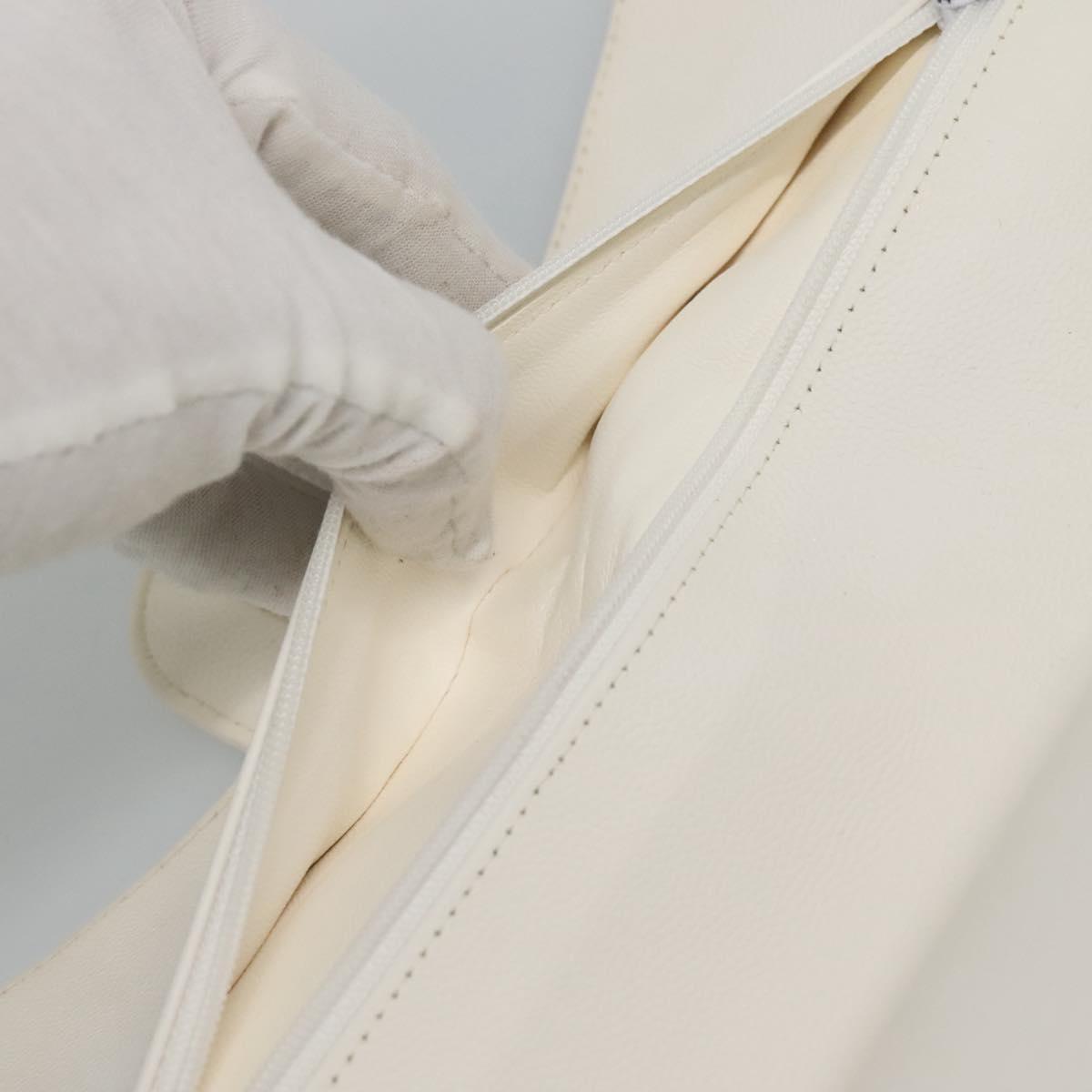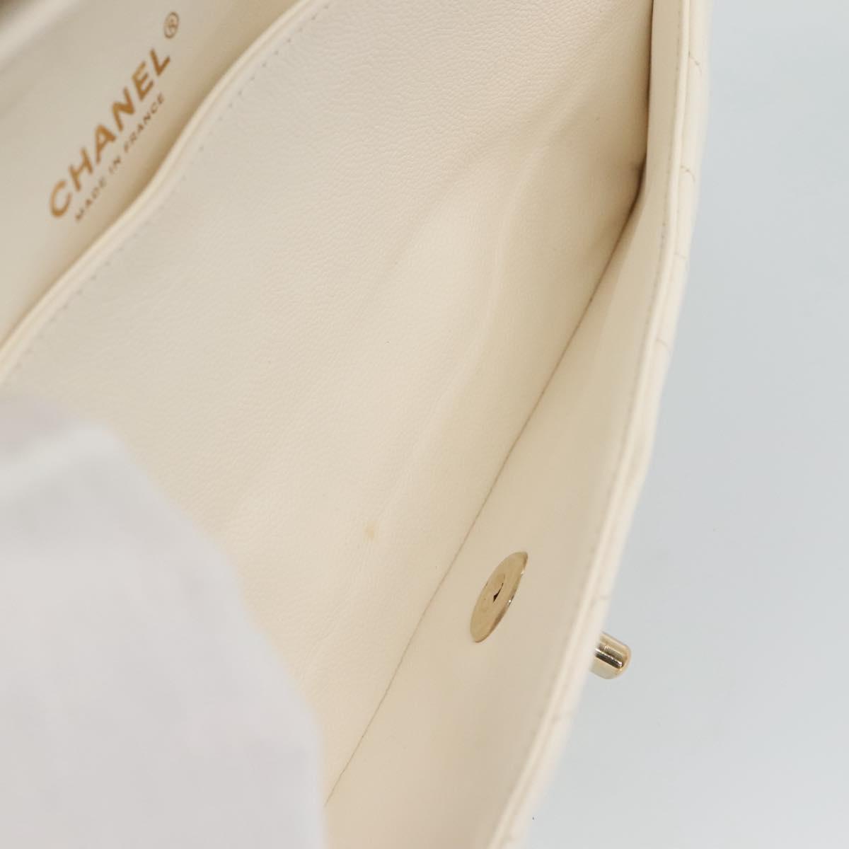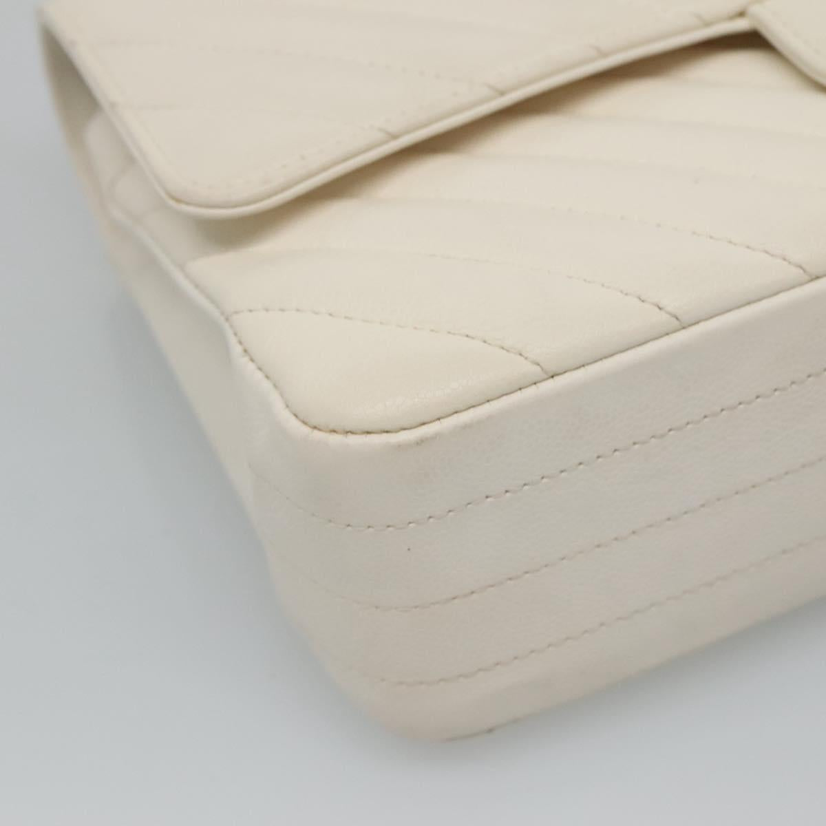 CHANEL Chain Shoulder Bag Lamb Skin White Gold CC PP180