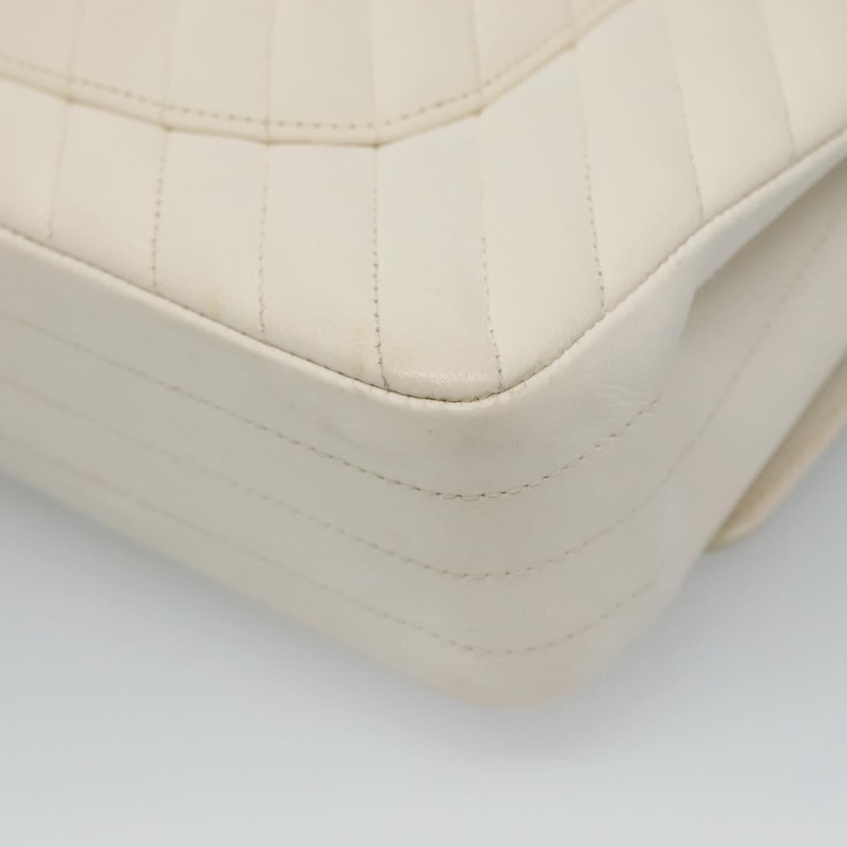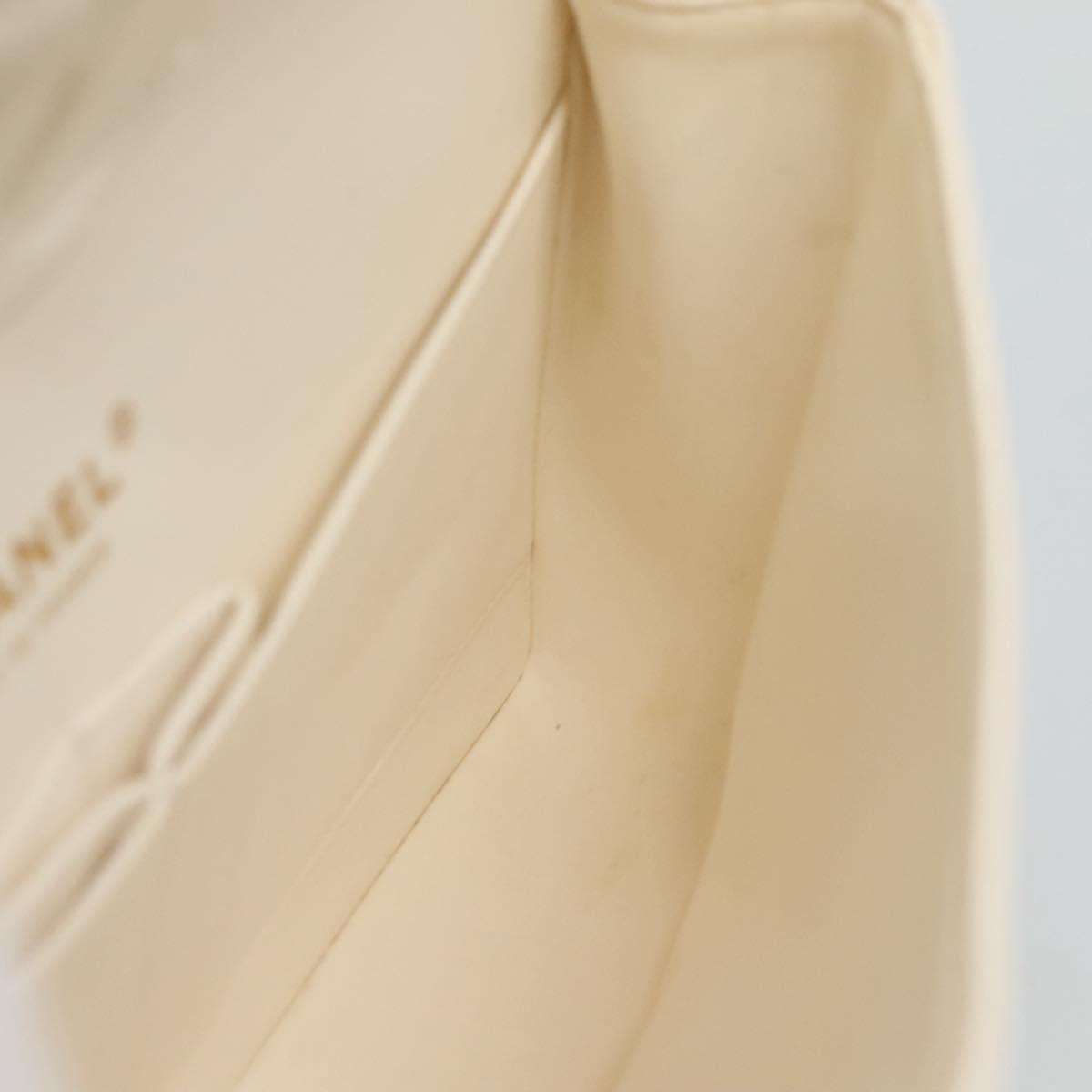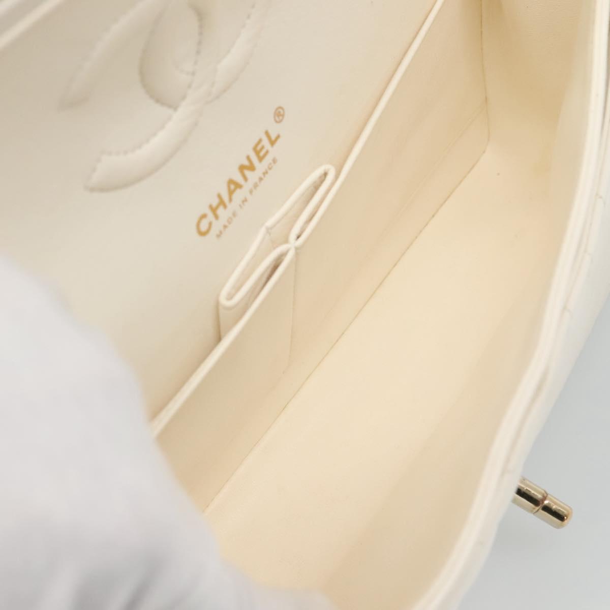 CHANEL Chain Shoulder Bag Lamb Skin White Gold CC PP180
