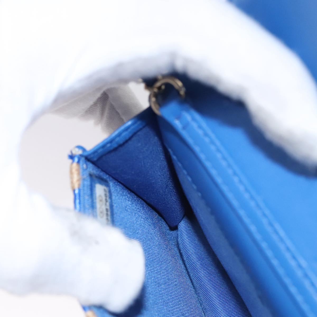 CHANEL Chain Shoulder Bag Raffia Blue CC 115347A