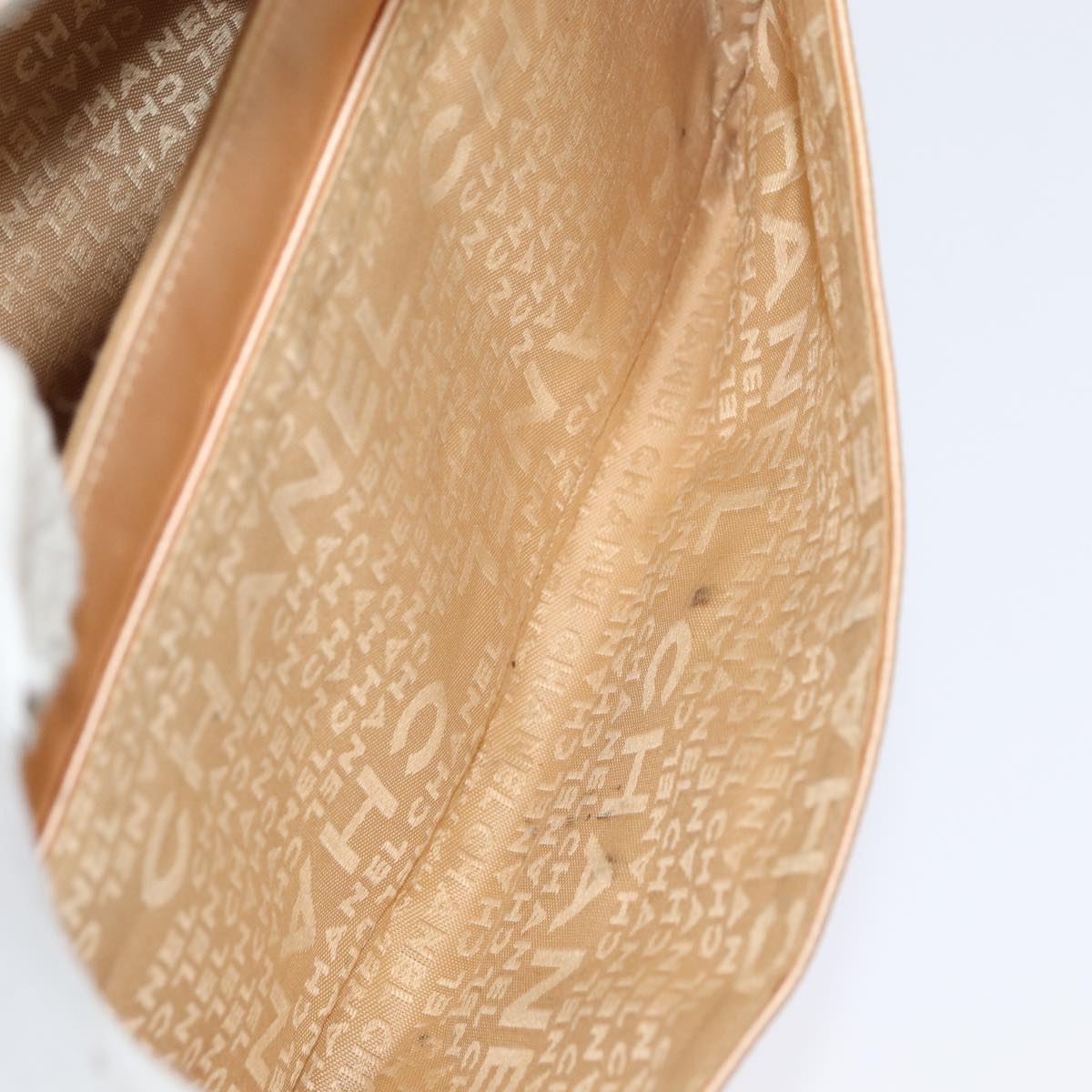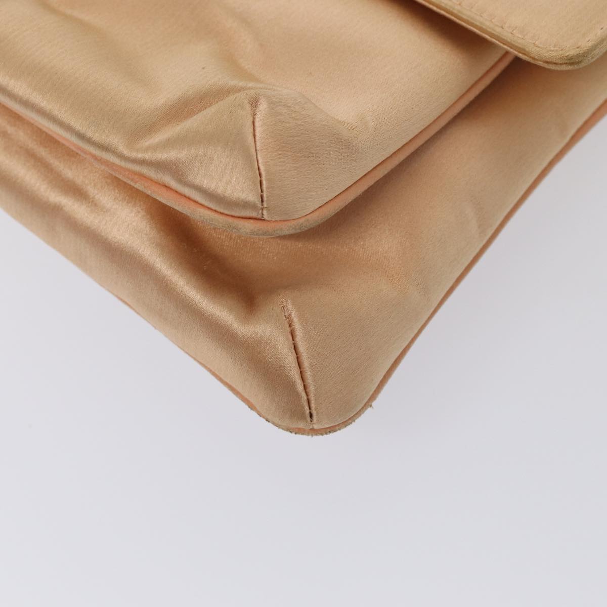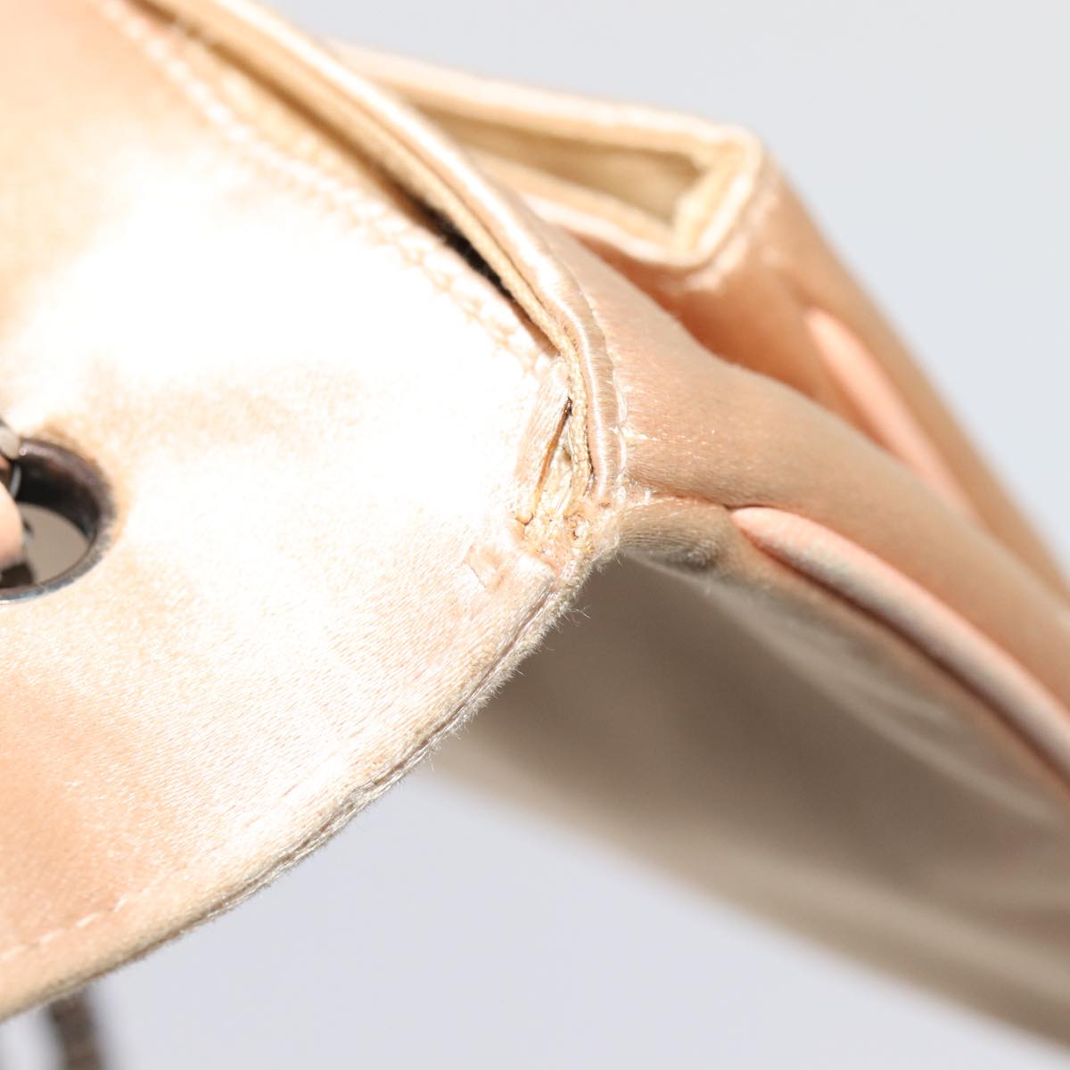 CHANEL Chain Shoulder Bag Satin Beige Silver CC bs16982