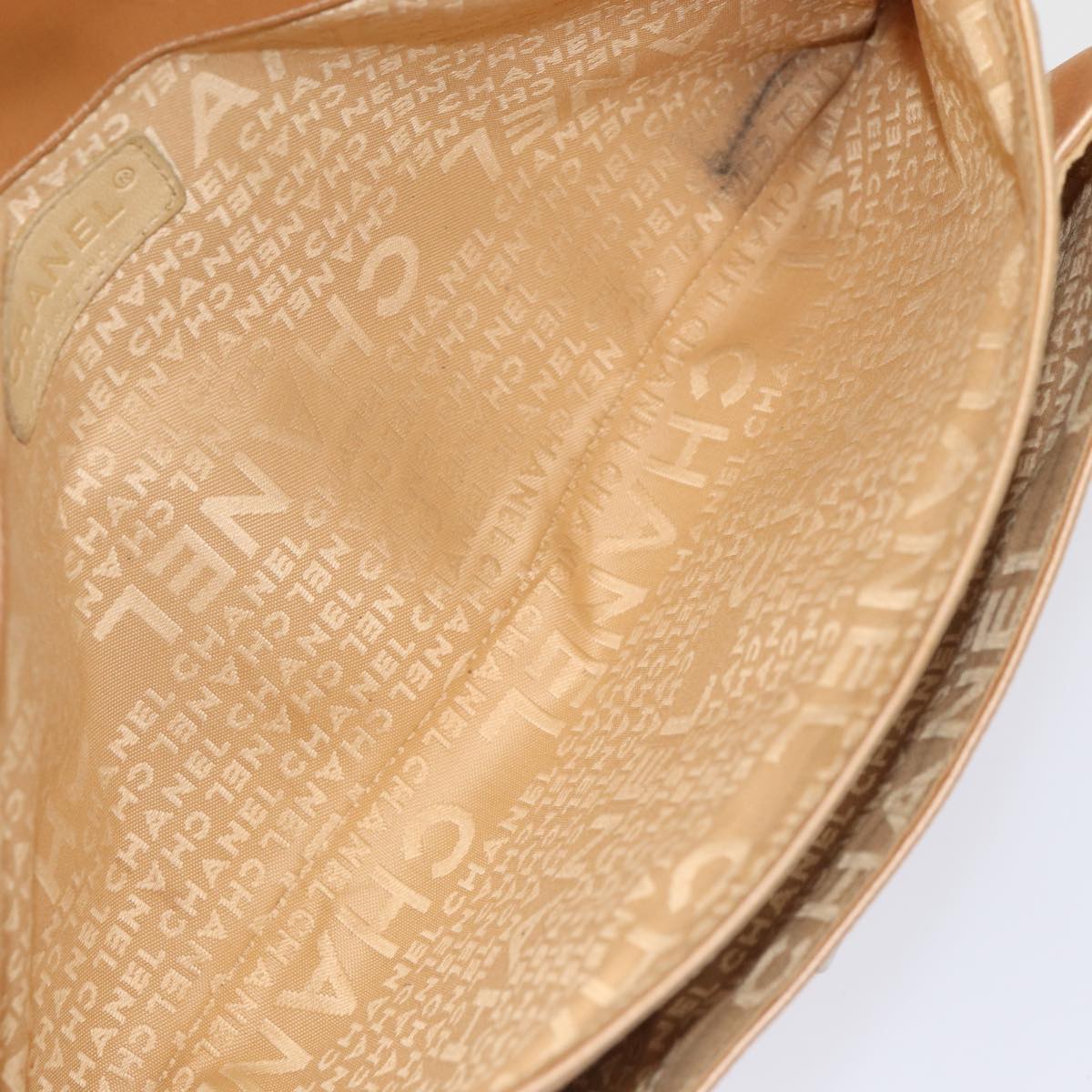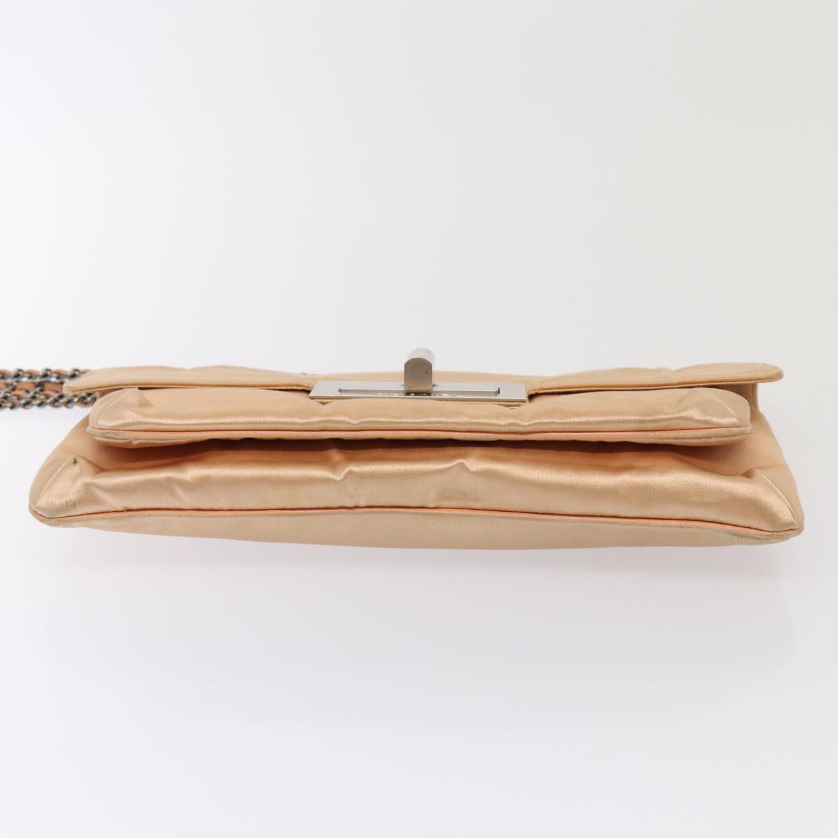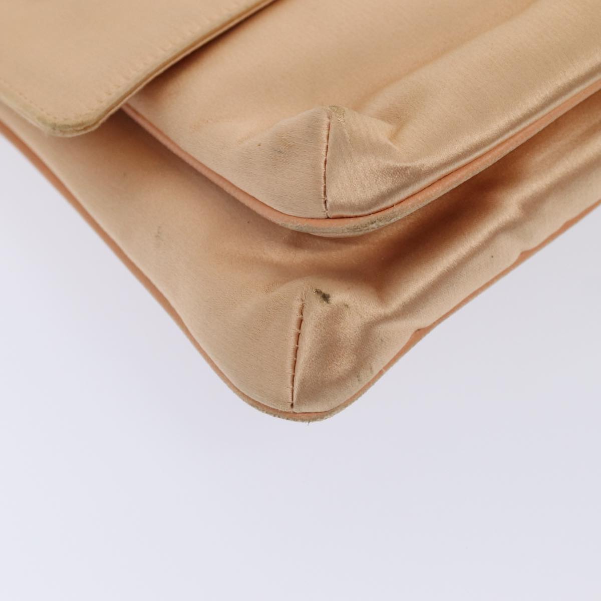 CHANEL Chain Shoulder Bag Satin Beige Silver CC bs16982