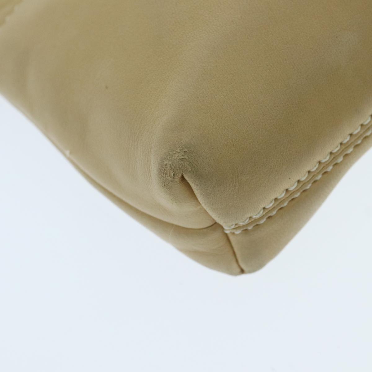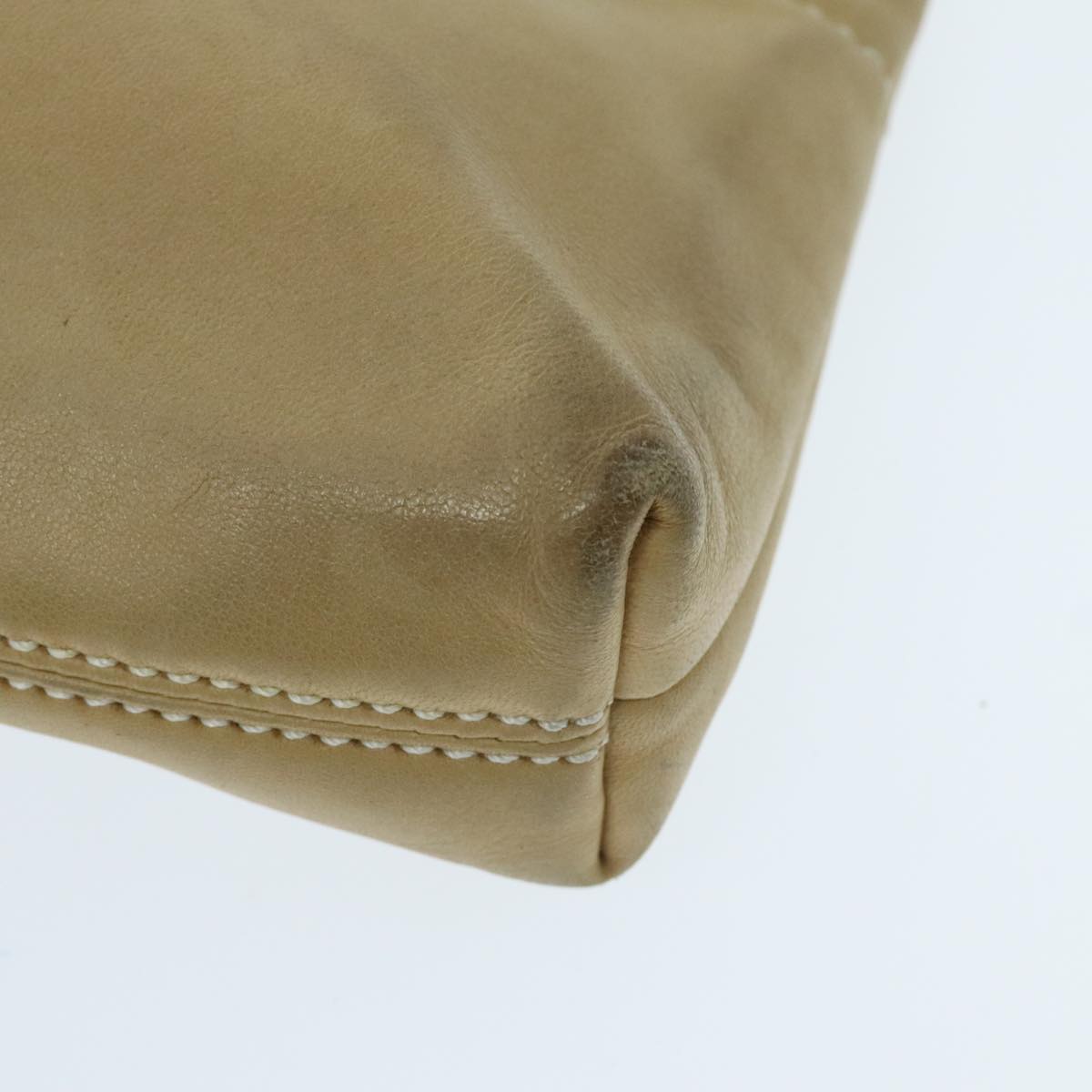 CHANEL Chain Shoulder Pouch Leather Beige Silver CC 96004