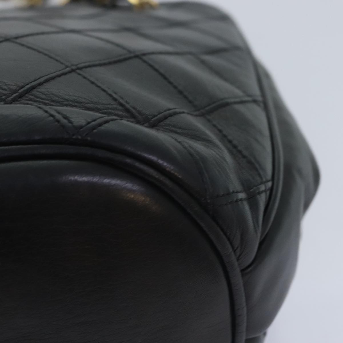 CHANEL Chain Tote Bag Lamb Skin Black Gold CC 93802