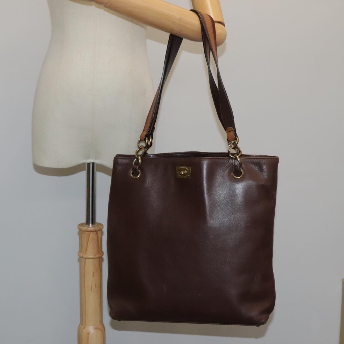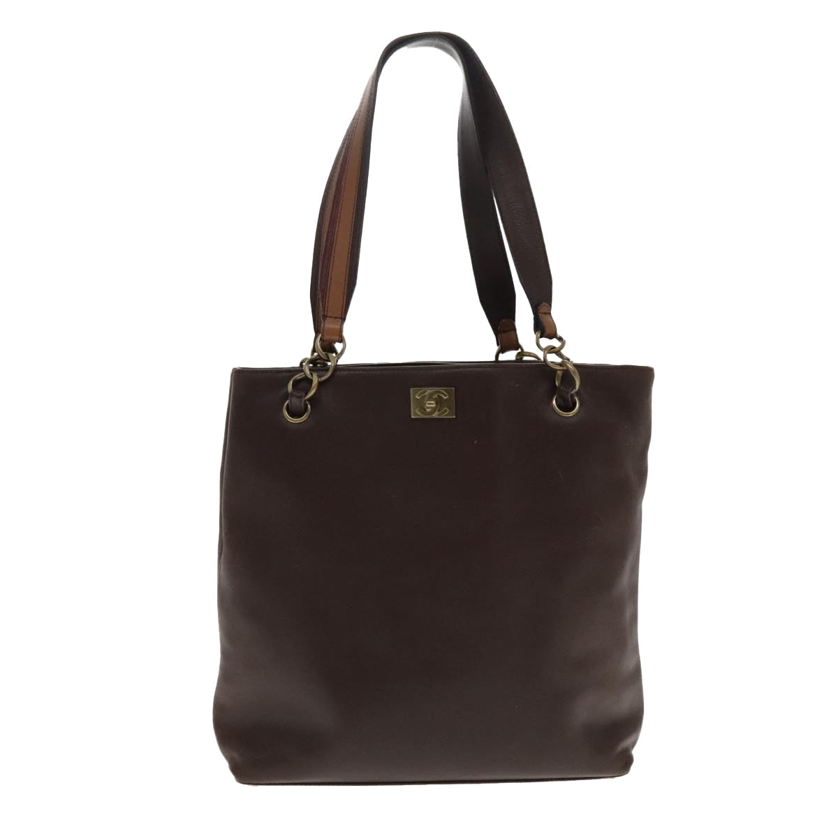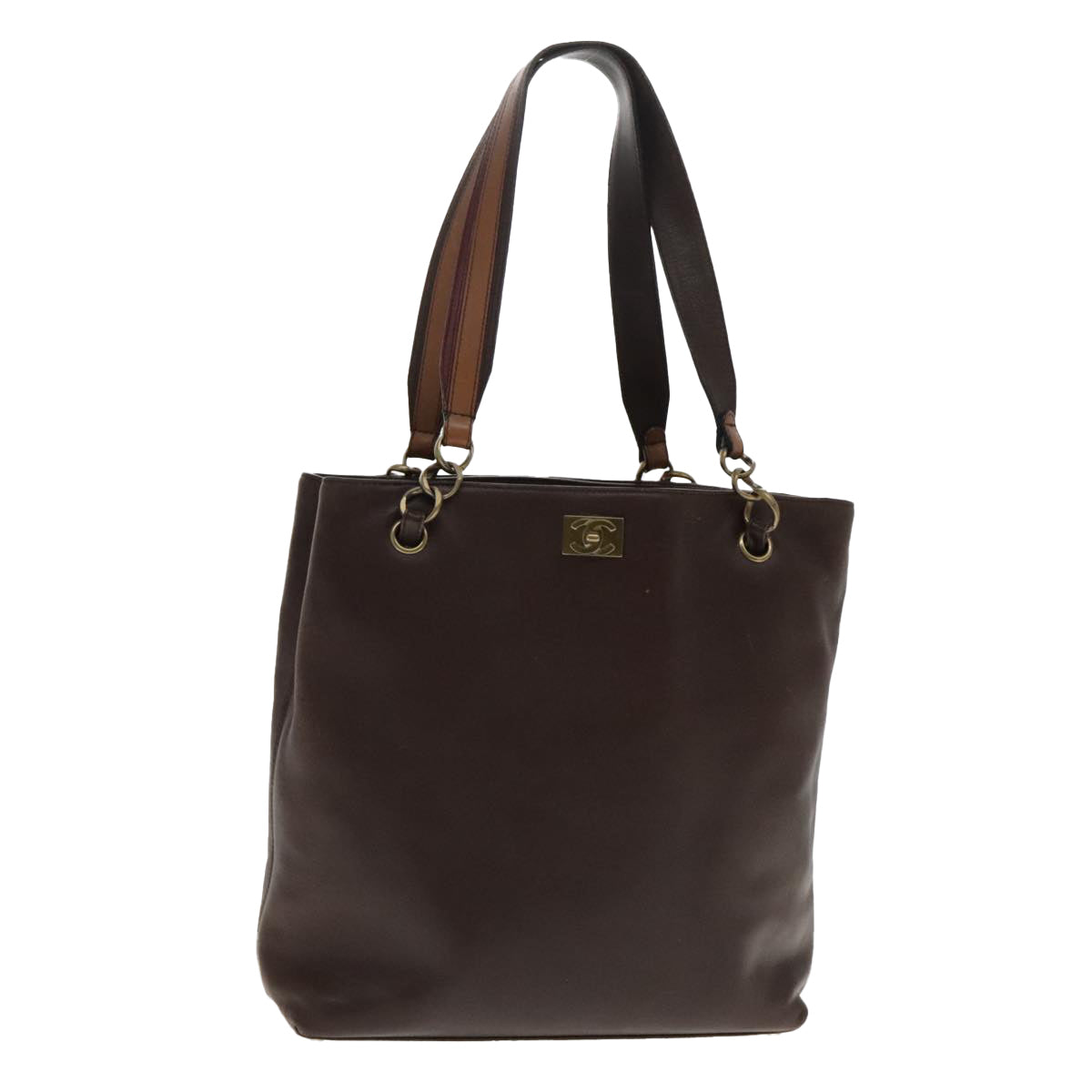 CHANEL Chain Tote Bag Leather Brown CC bs18700