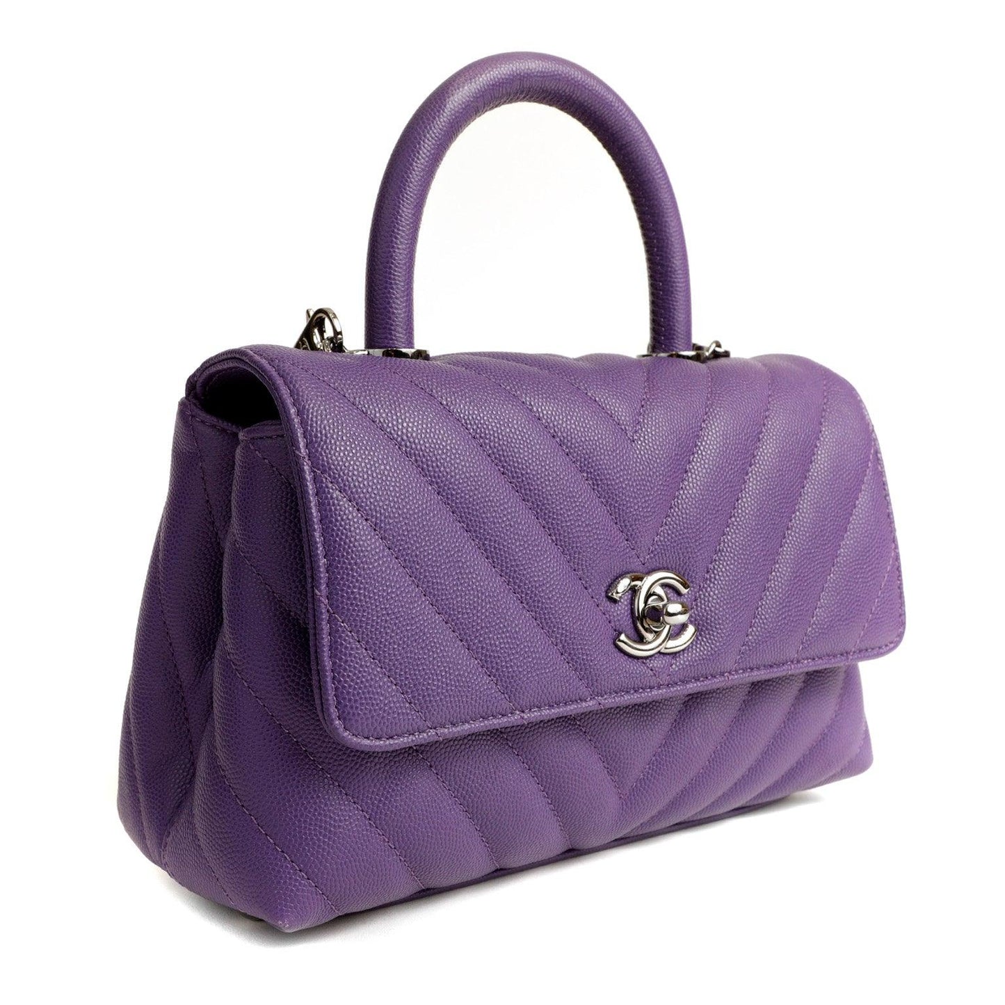 Chanel Chevron Caviar Royal Purple Mini Coco Handle Flap Bag  w/ Silver Hardware
