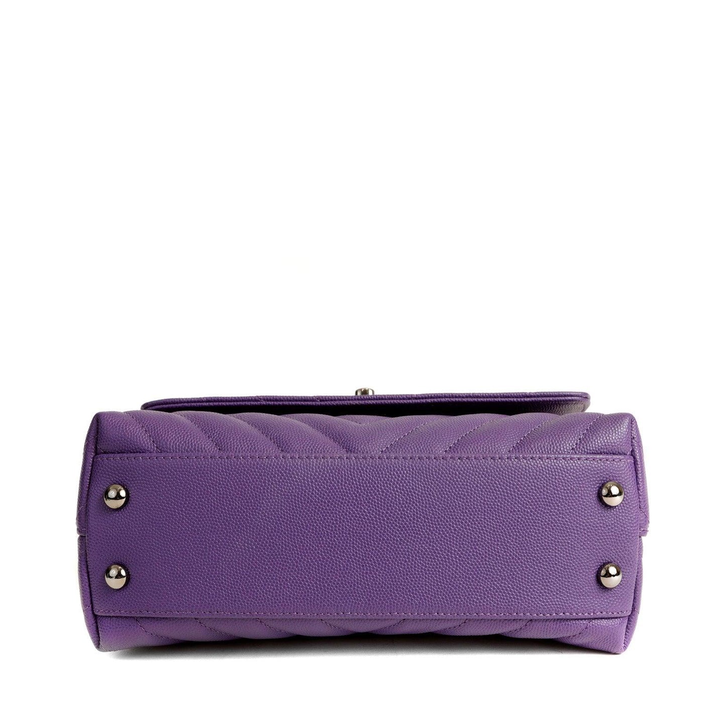 Chanel Chevron Caviar Royal Purple Mini Coco Handle Flap Bag w/ Silver Hardware