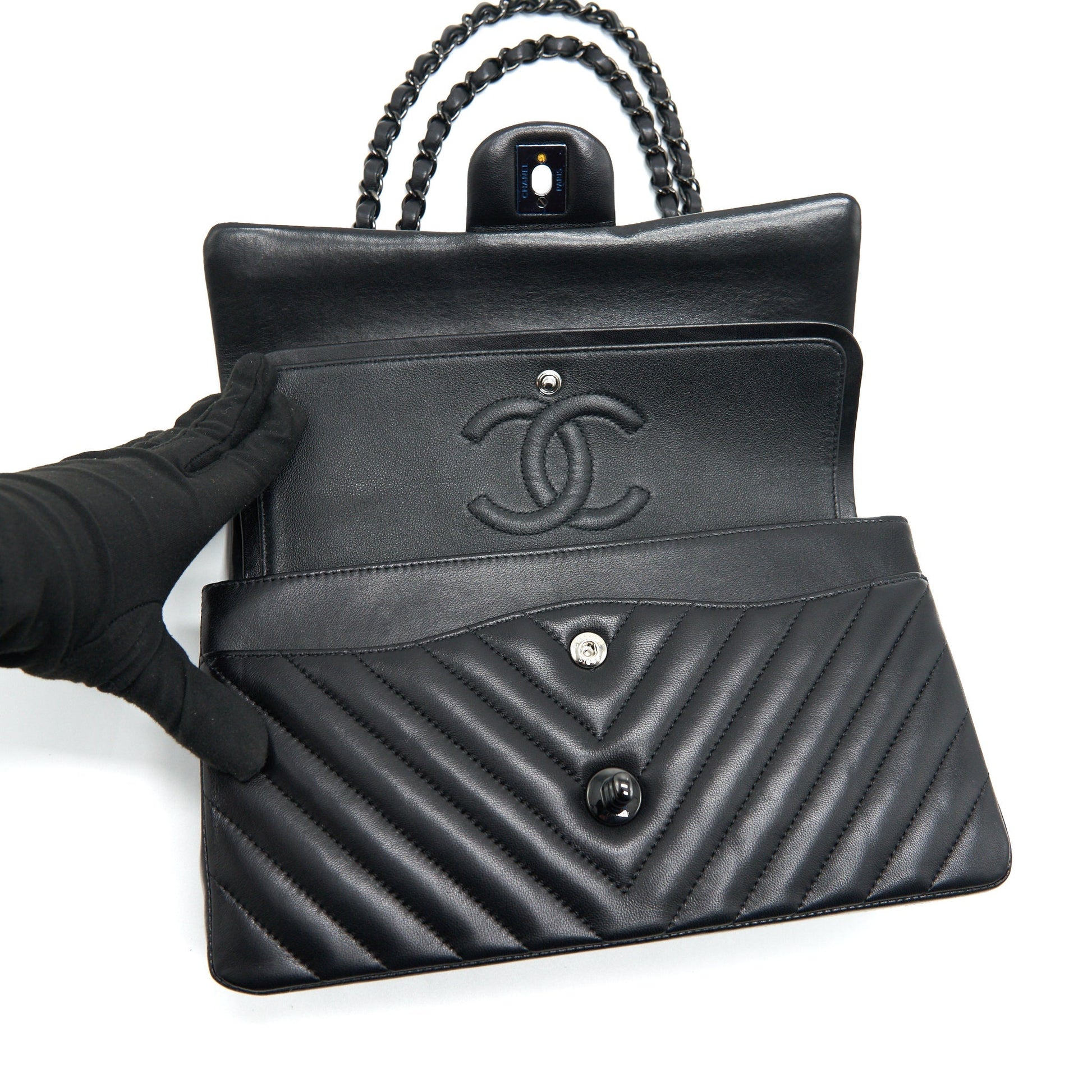 Chanel Chevron Medium Classic Double Flap Bag so Black