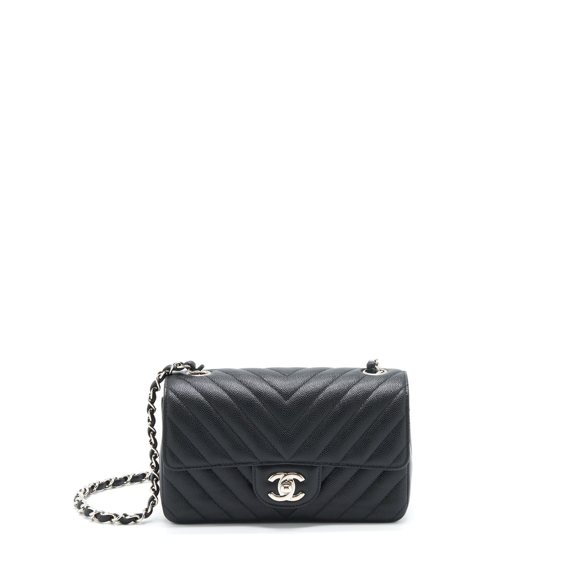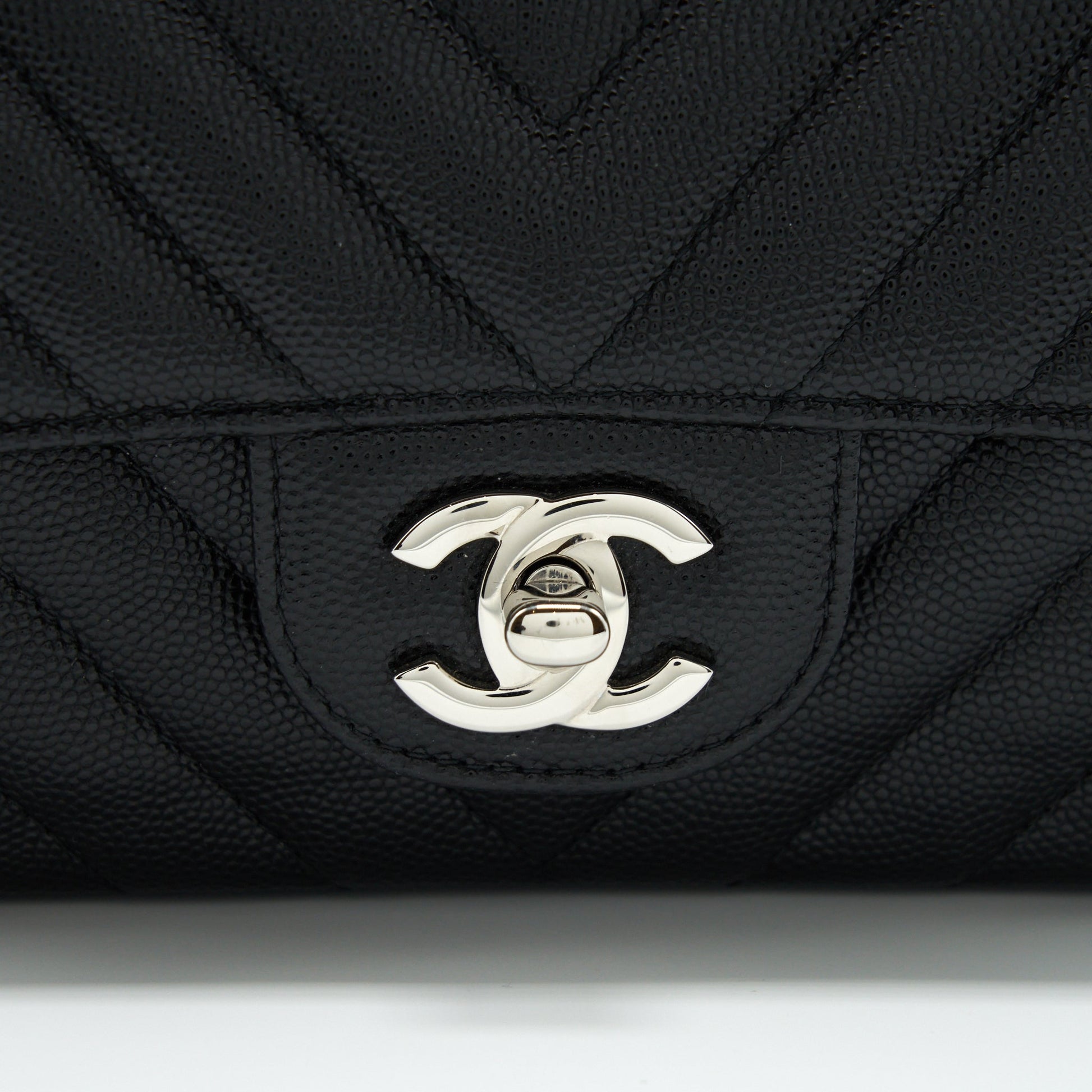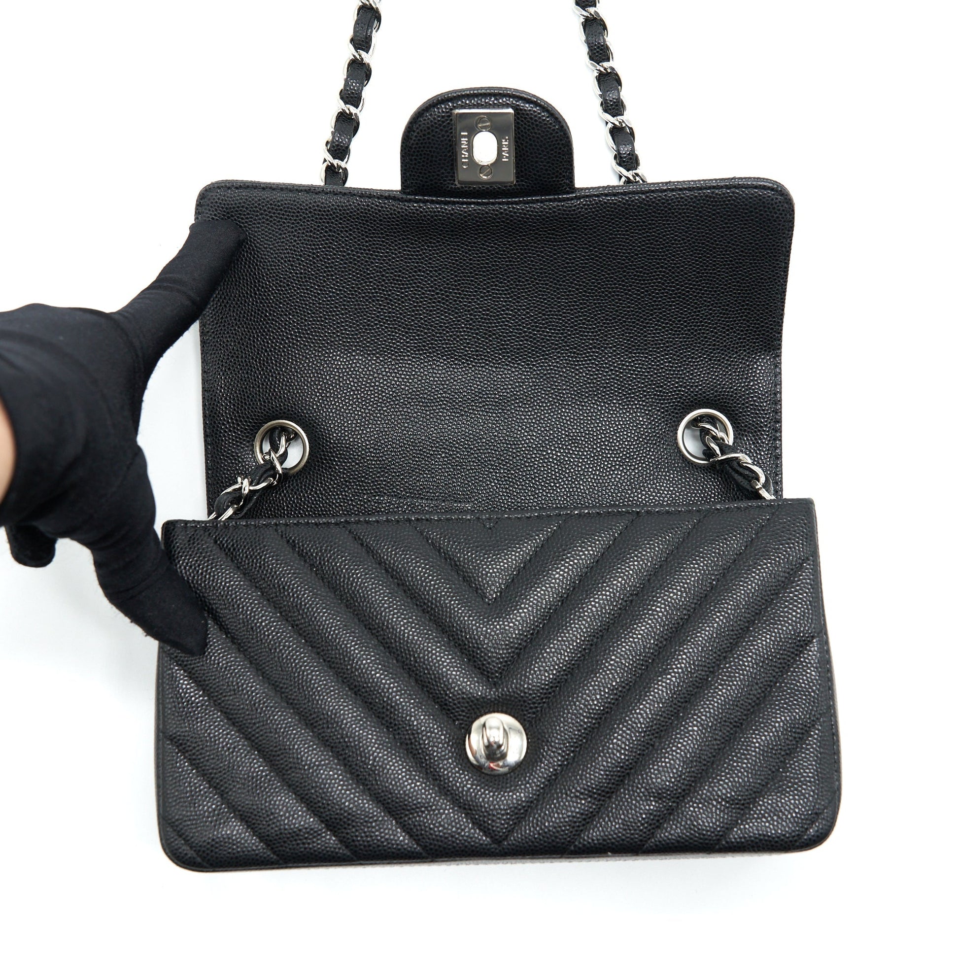 Chanel Chevron Mini Rectangular Flap Bag Caviar Black SHW