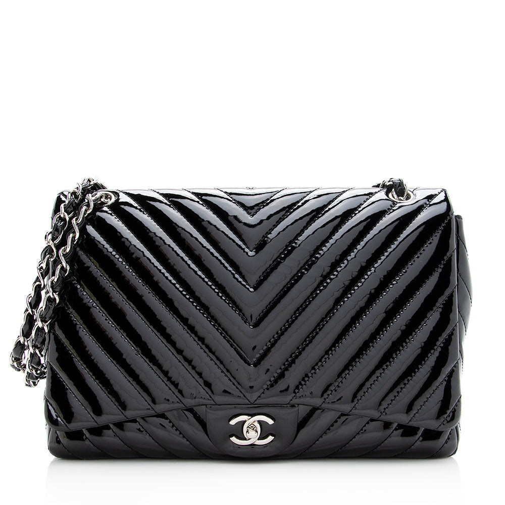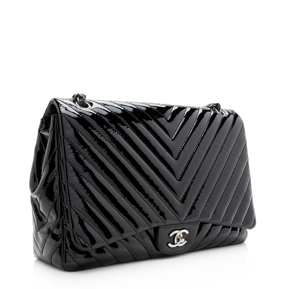 Chanel Chevron Patent Leather Classic Maxi Single Flap Bag - FINAL SALE (SHF-19684)