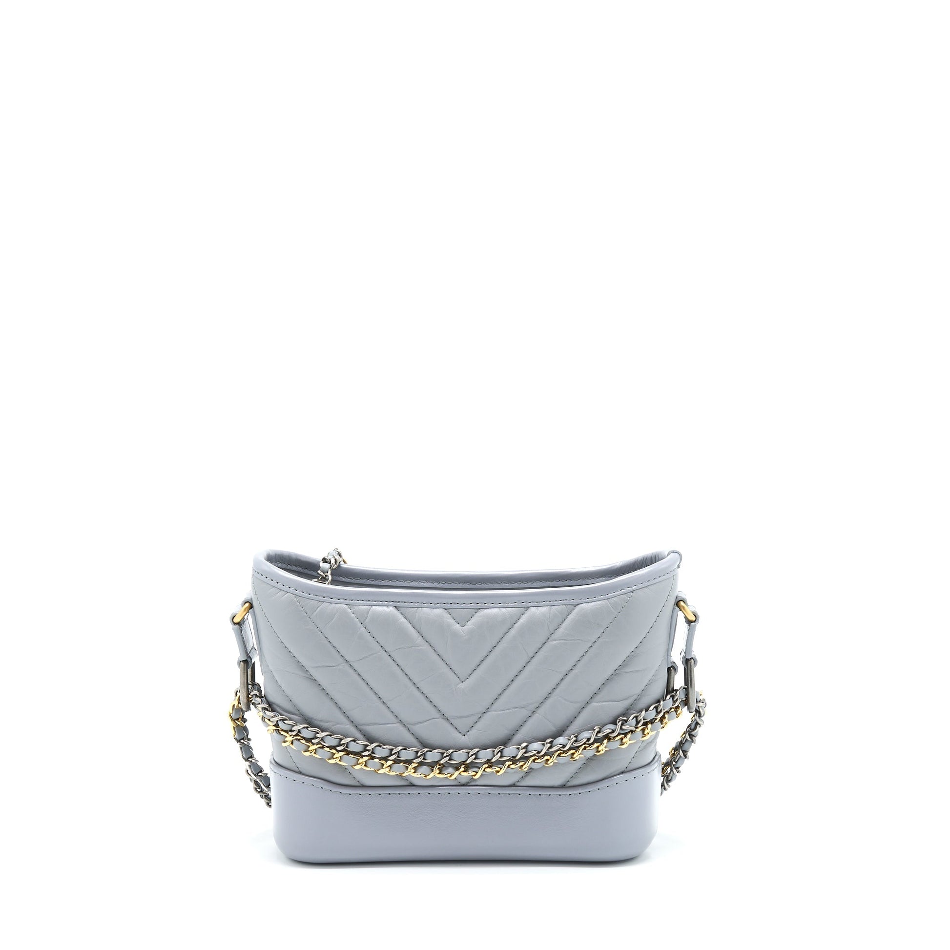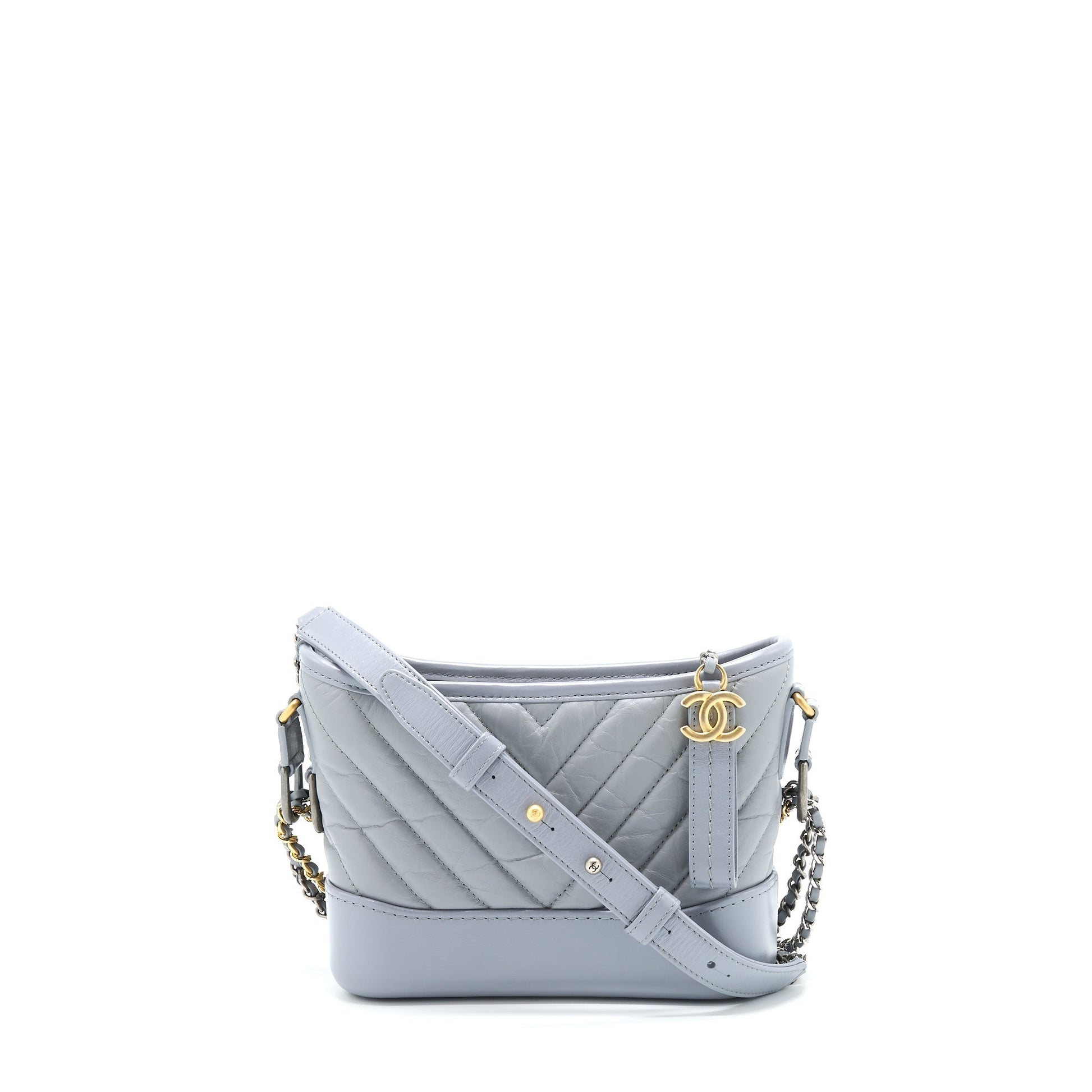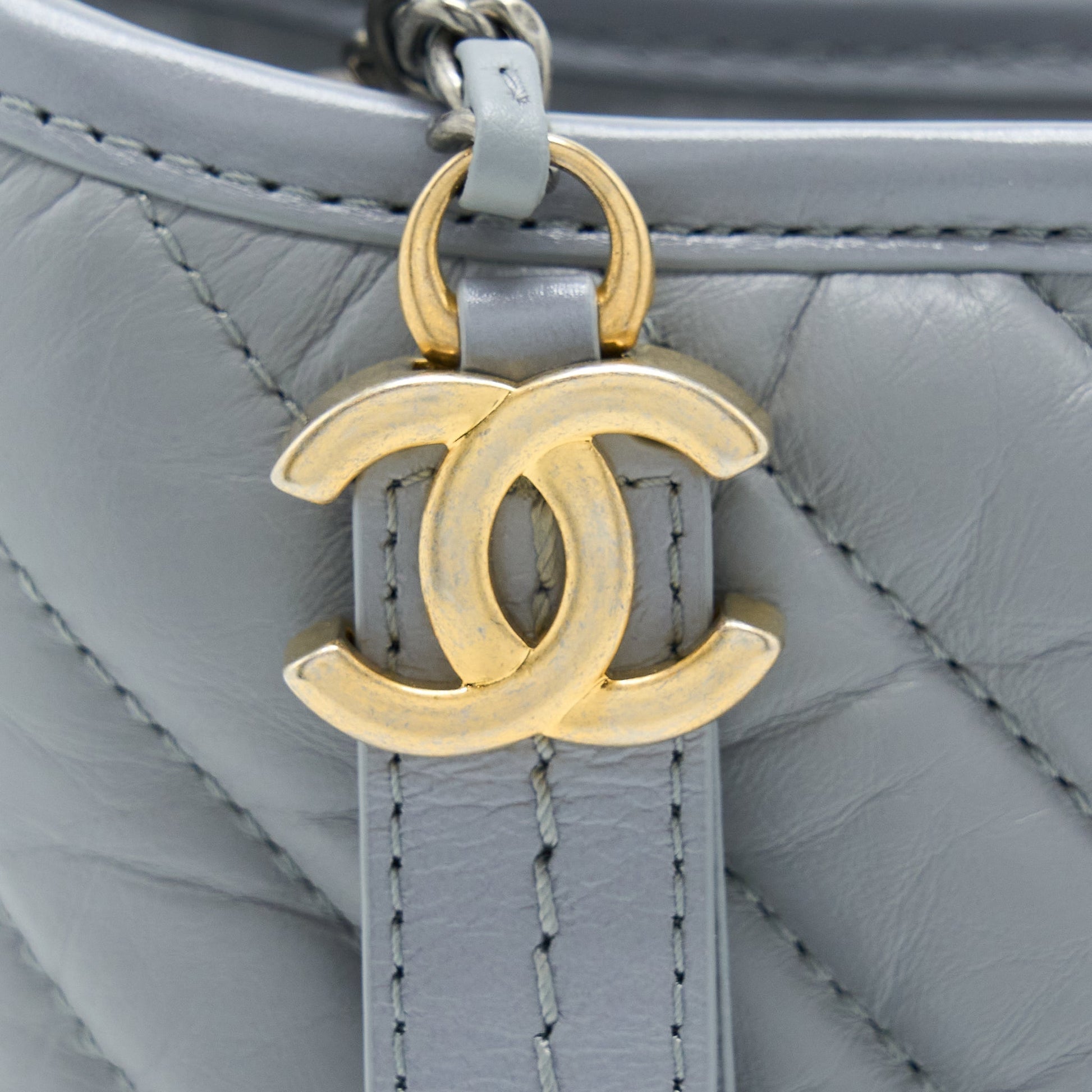Chanel Chevron Small Gabrielle Hobo Bag Aged Calfskin Grey Multicolour Hardware