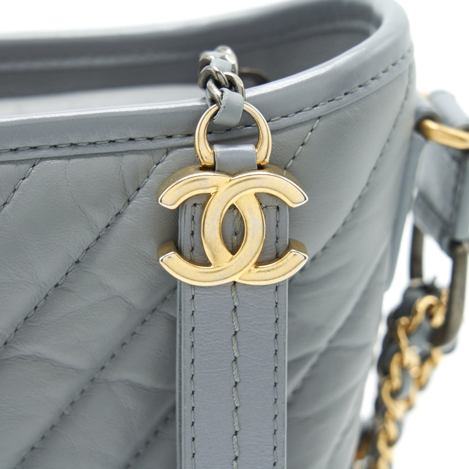 Chanel Chevron Small Gabrielle Hobo Bag Grey With Multicolour Hardware