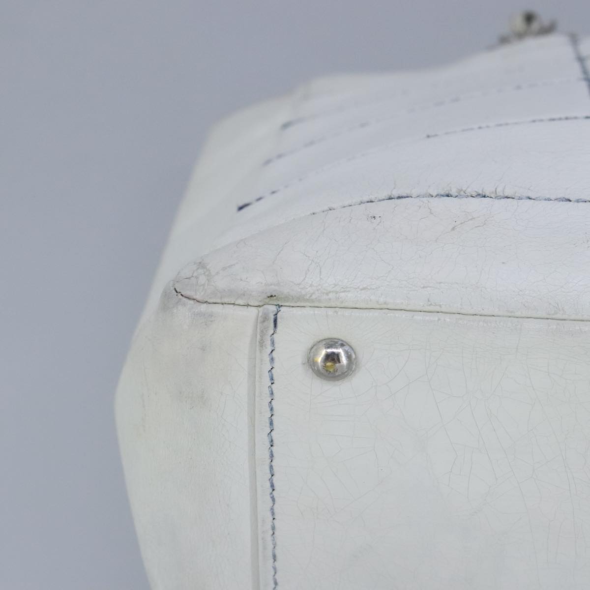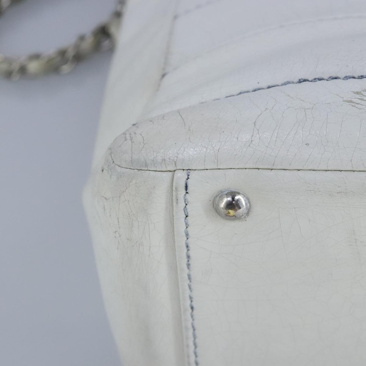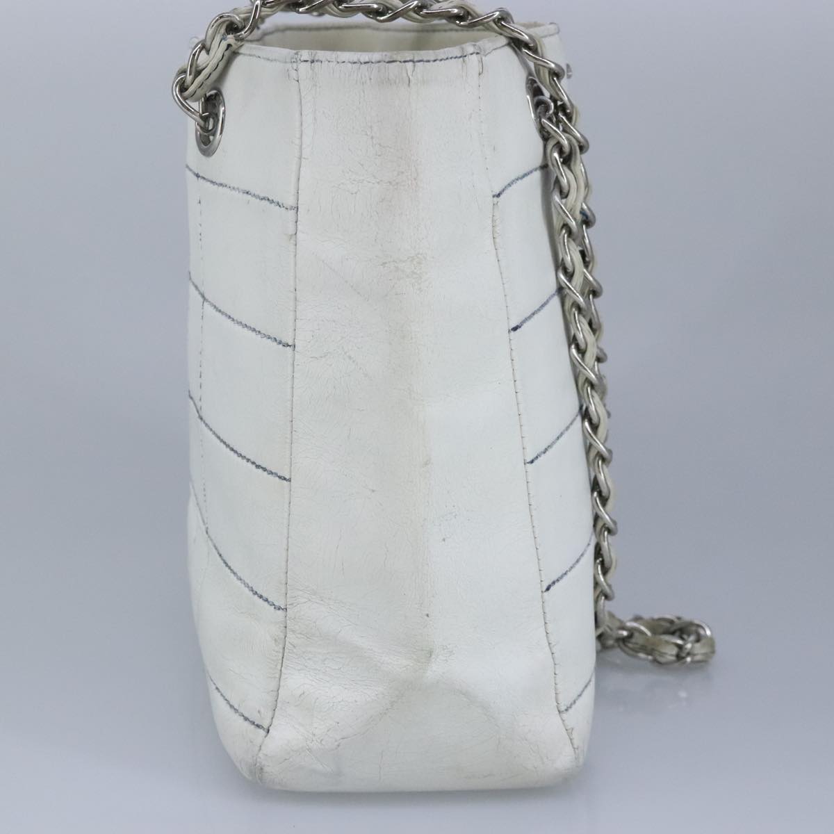 CHANEL Choco Bar Chain Tote Bag Leather White CC bs19700