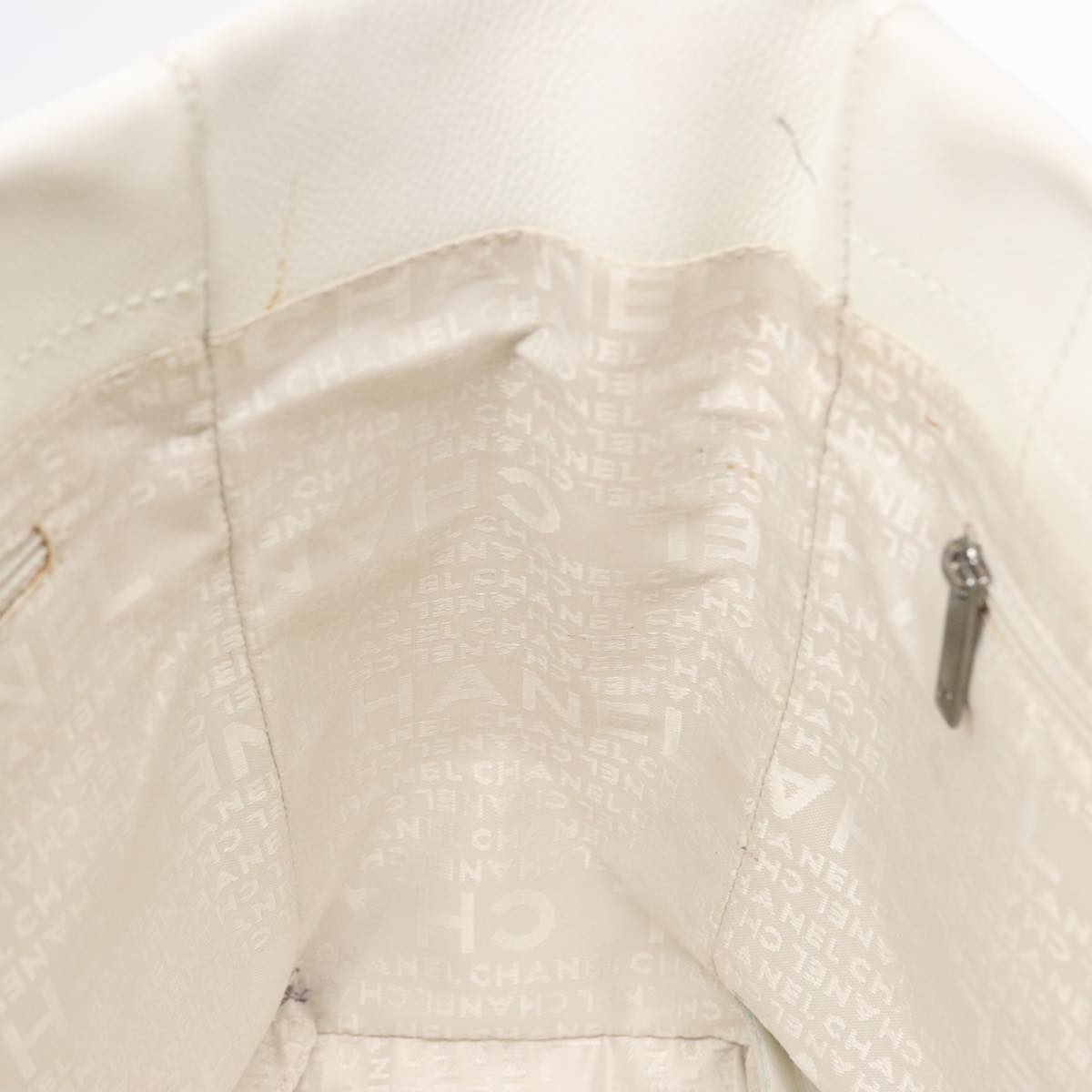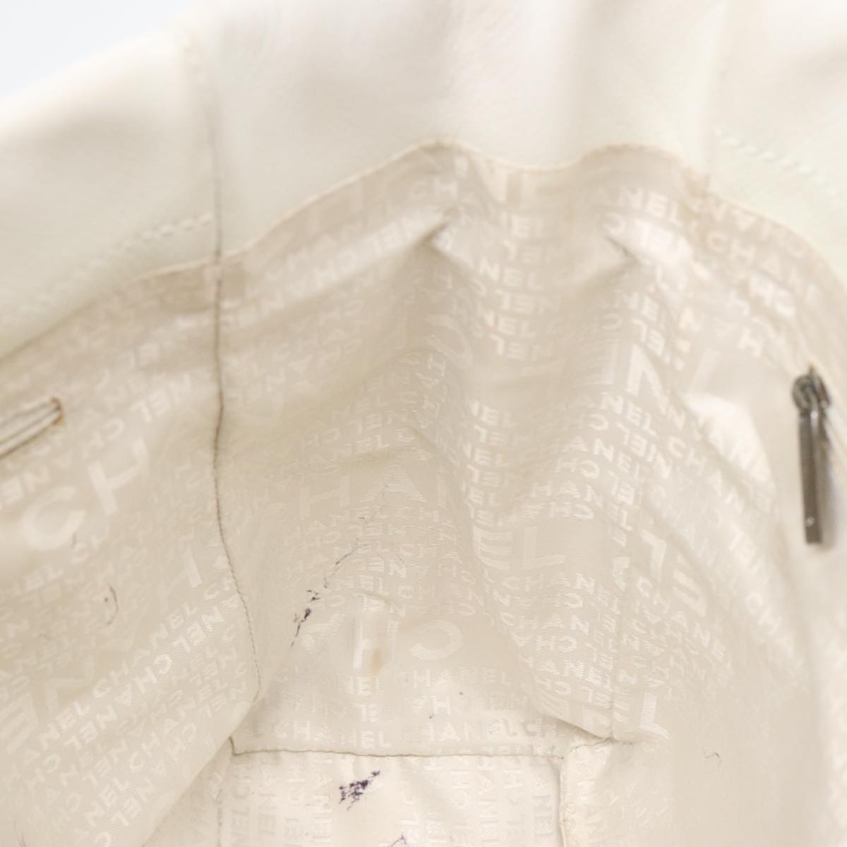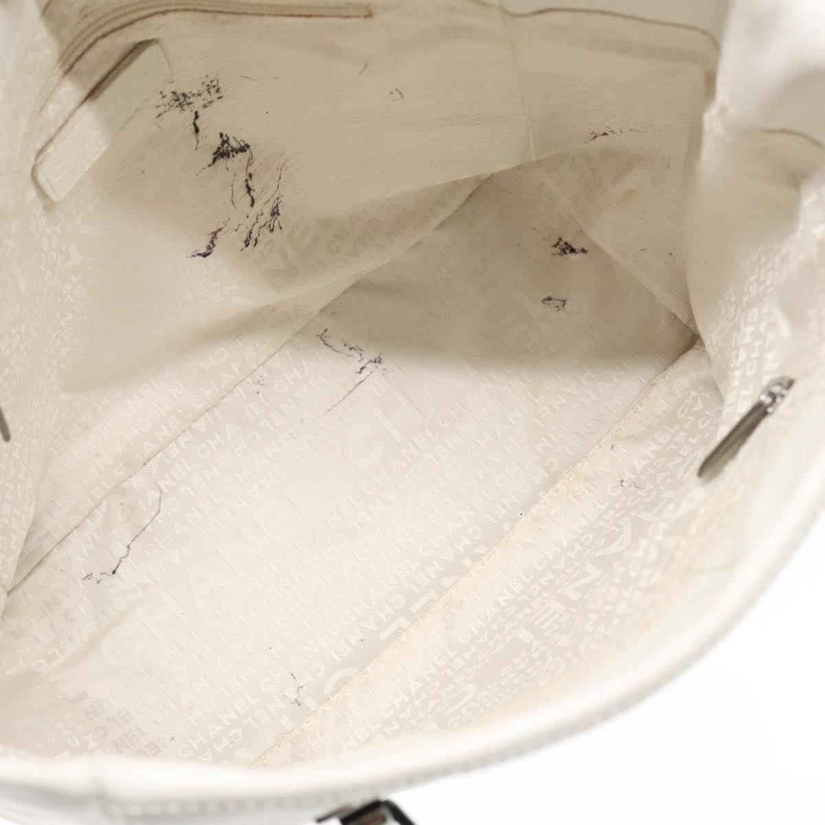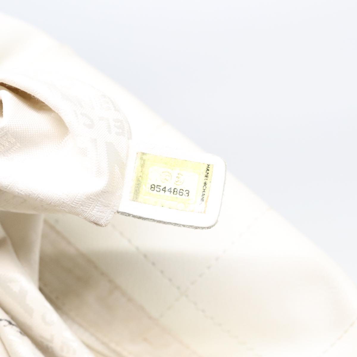 CHANEL Choco Bar Hand Bag Leather White Silver CC yk14765