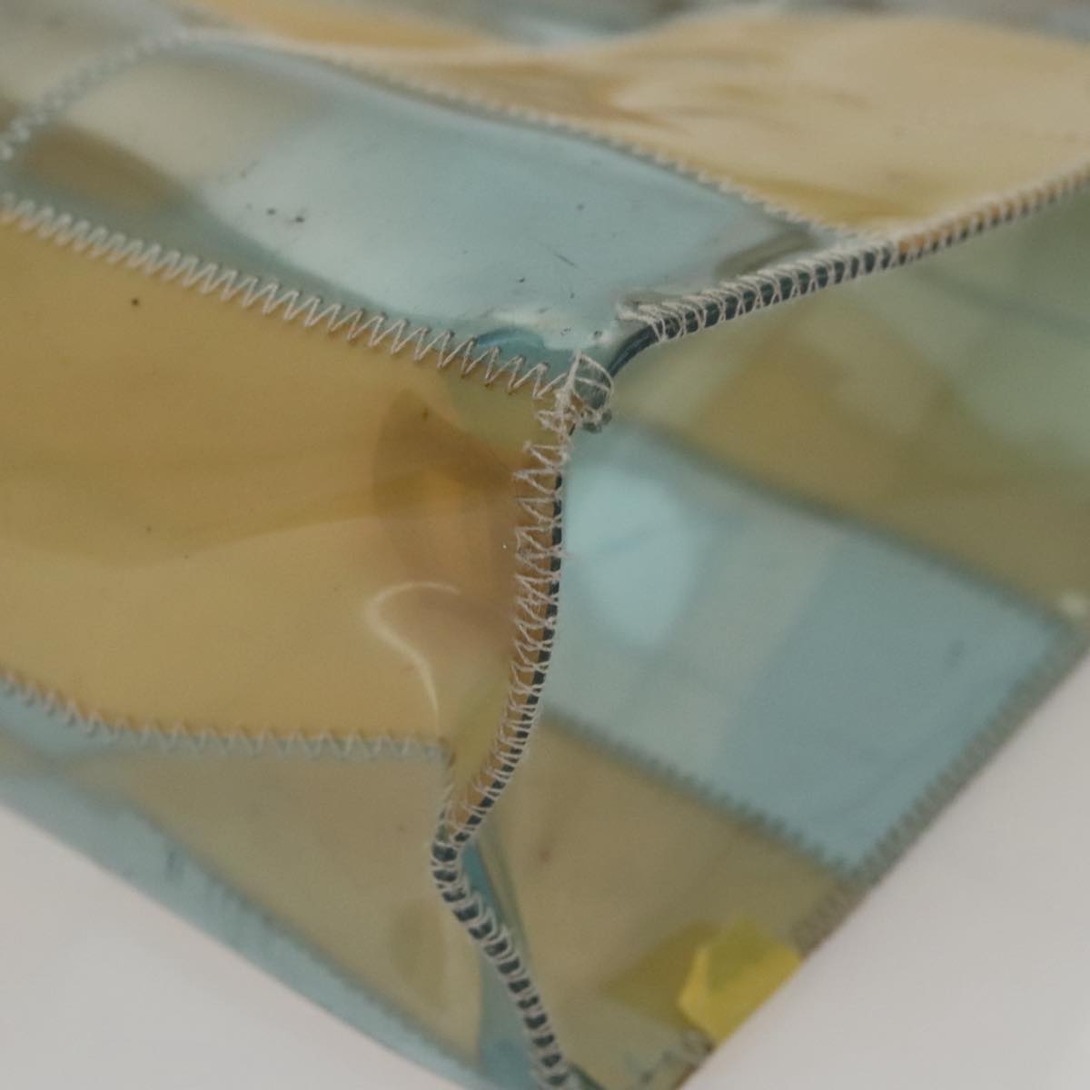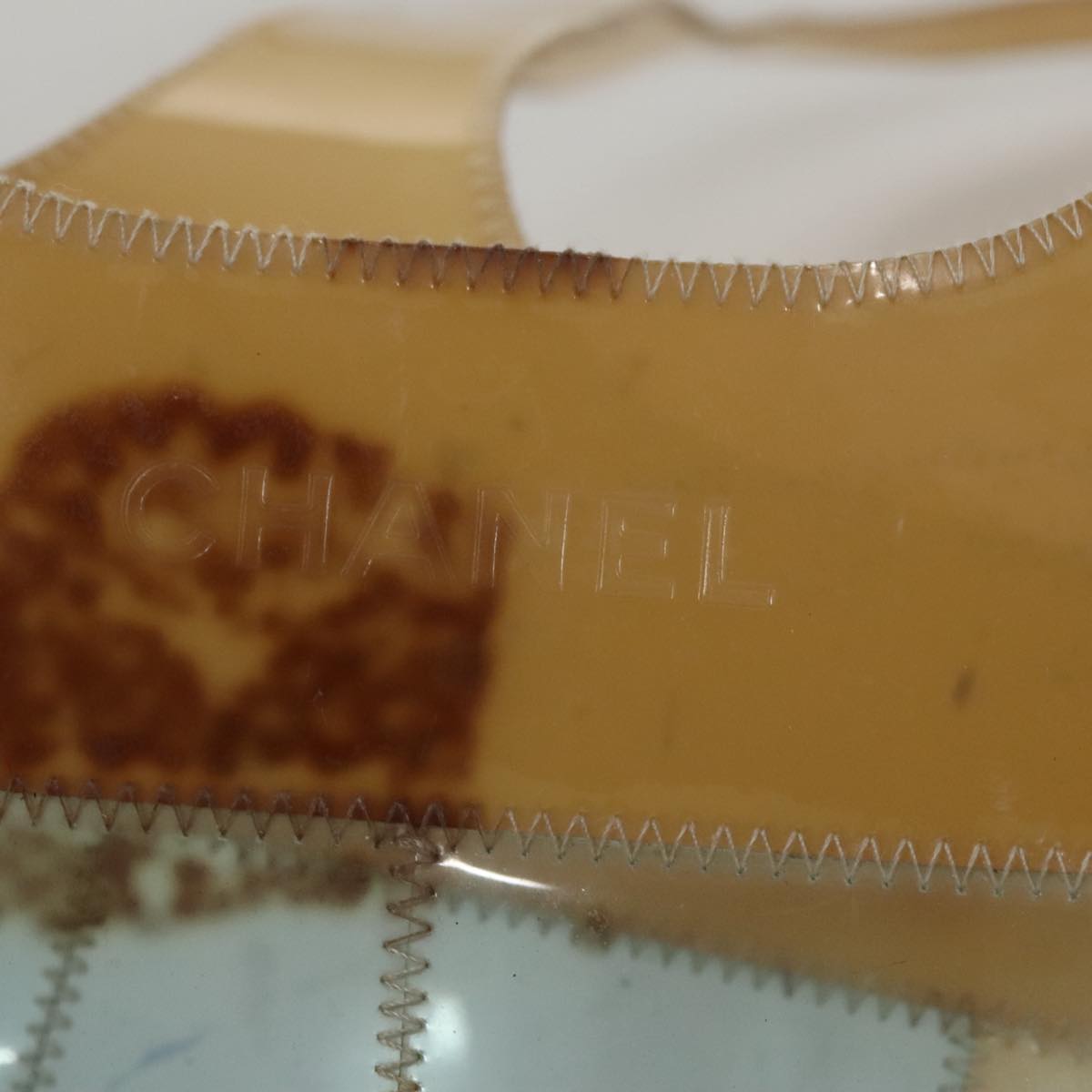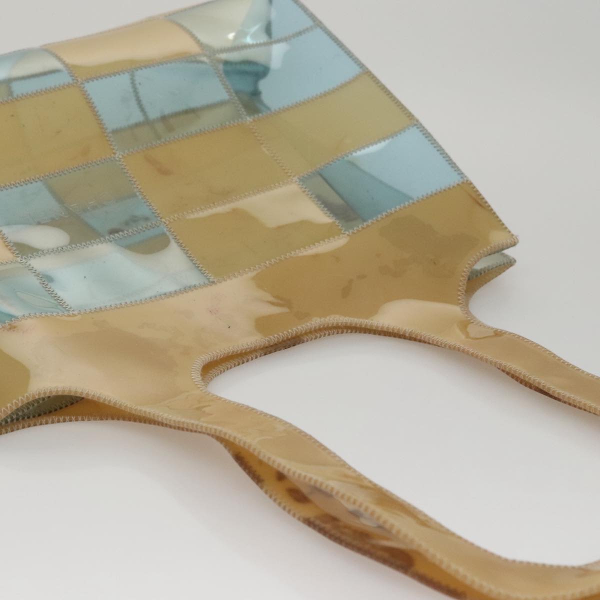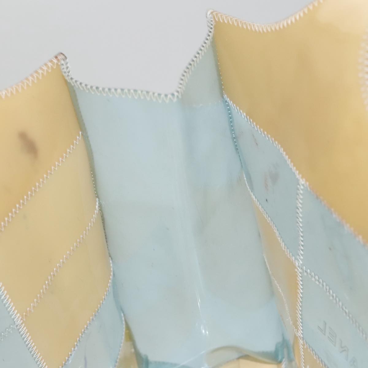 CHANEL Choco Bar Shoulder Bag Vinyl Beige Blue CC 110818