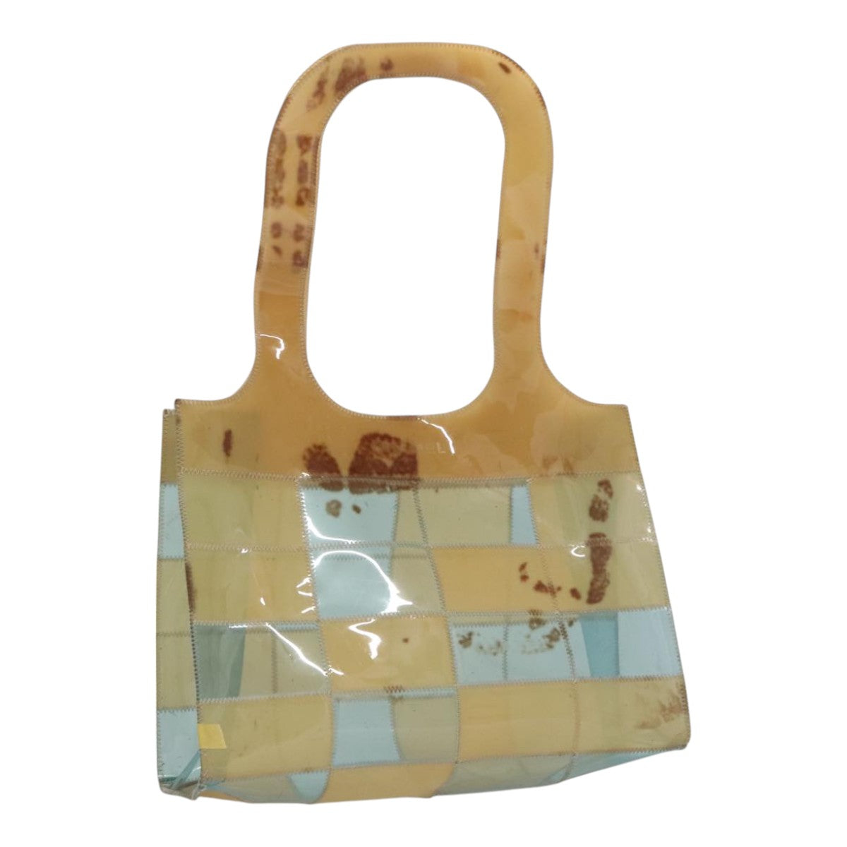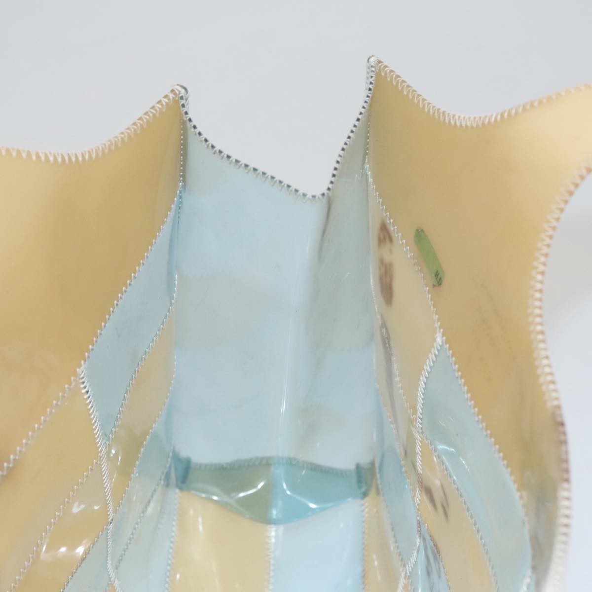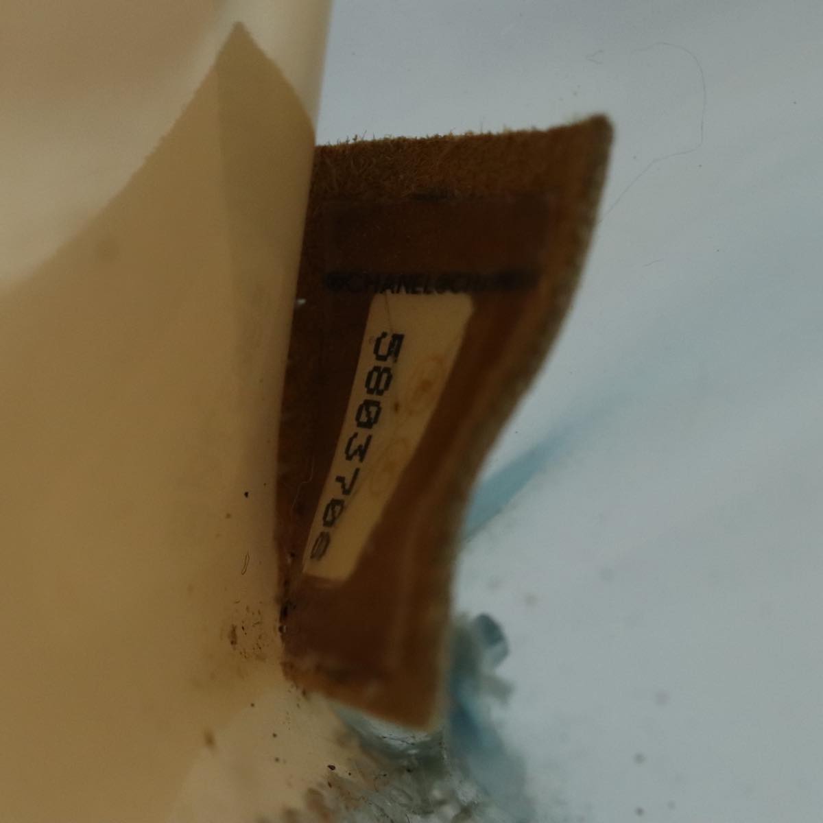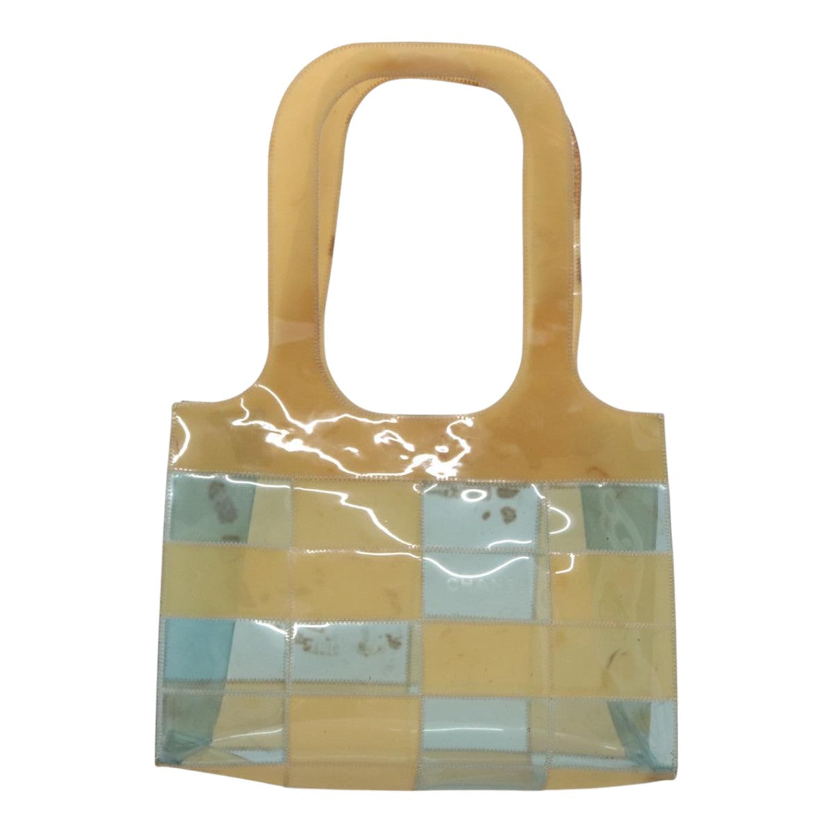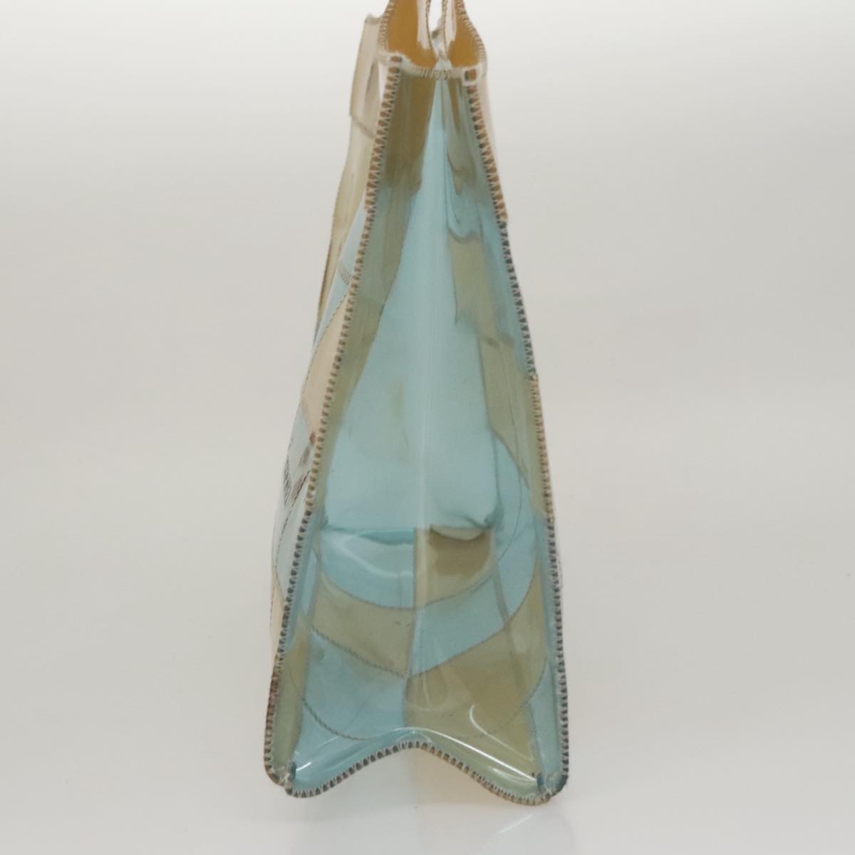 CHANEL Choco Bar Shoulder Bag Vinyl Beige Blue CC 110818