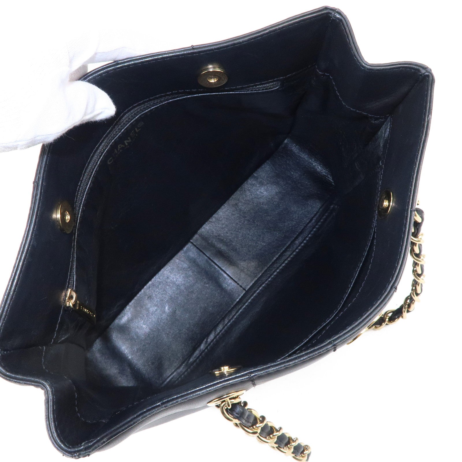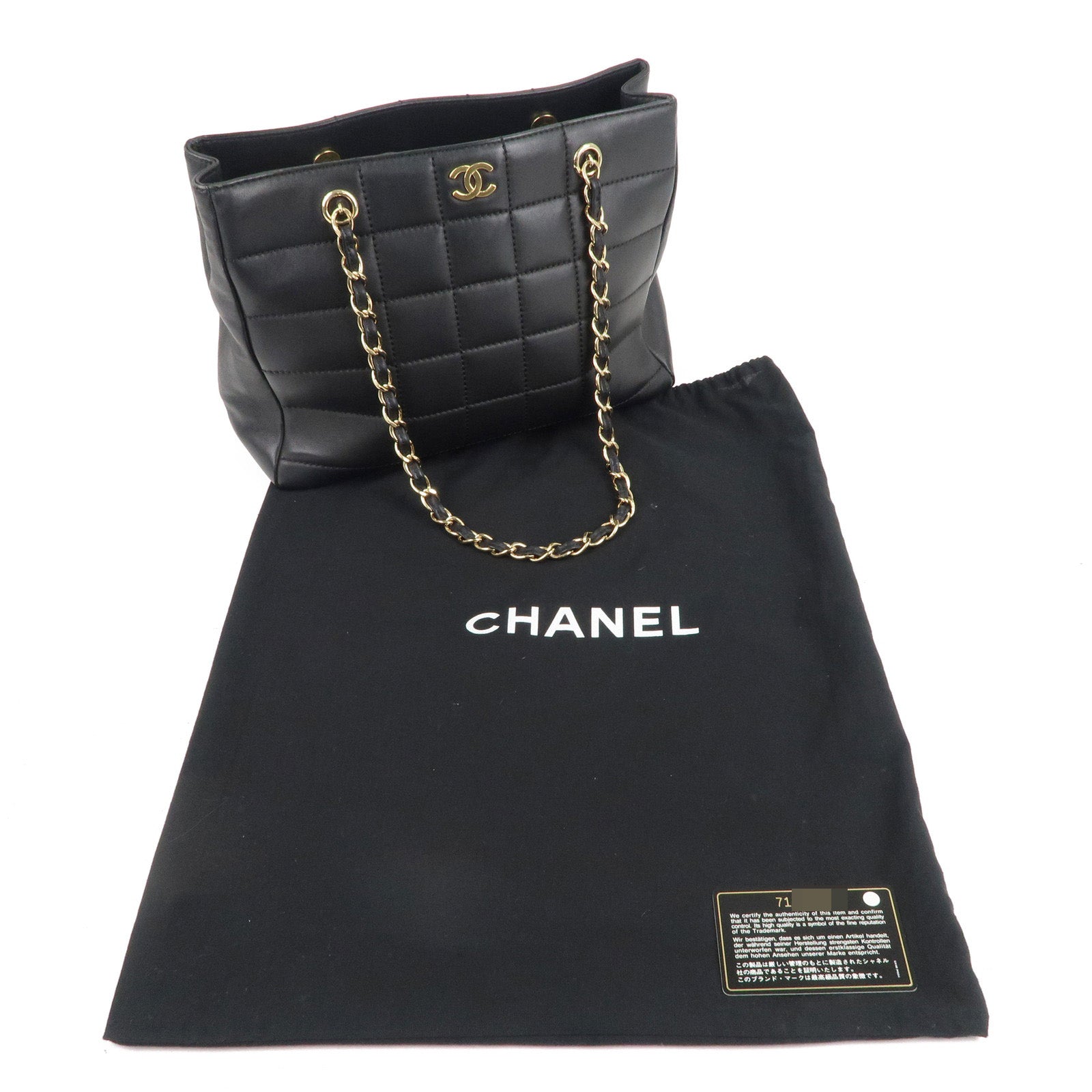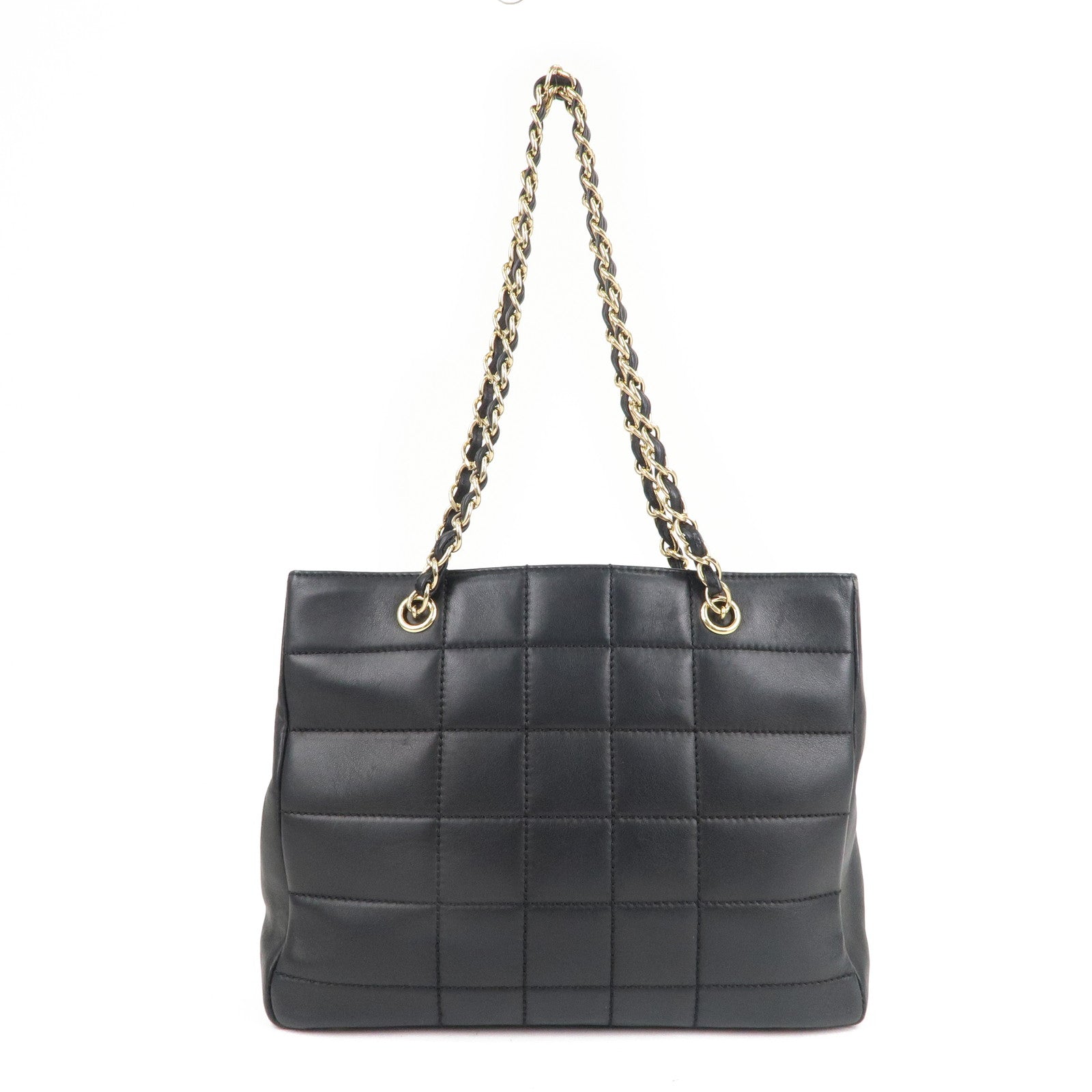 CHANEL Chocolate Bar Lamb Skin Chain Tote Bag Black