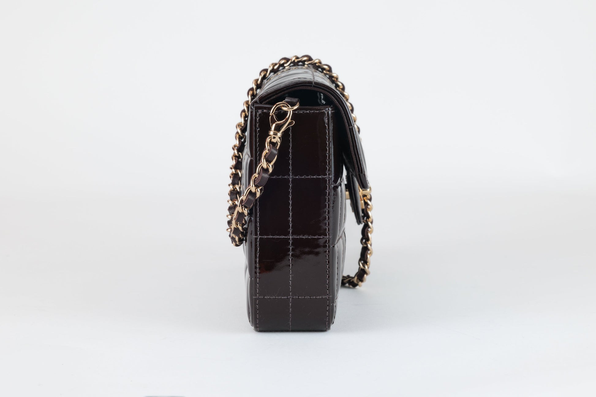 Chanel Brown Patent Leather Chocolate Bar East West Flap Bag with Gold Hardware