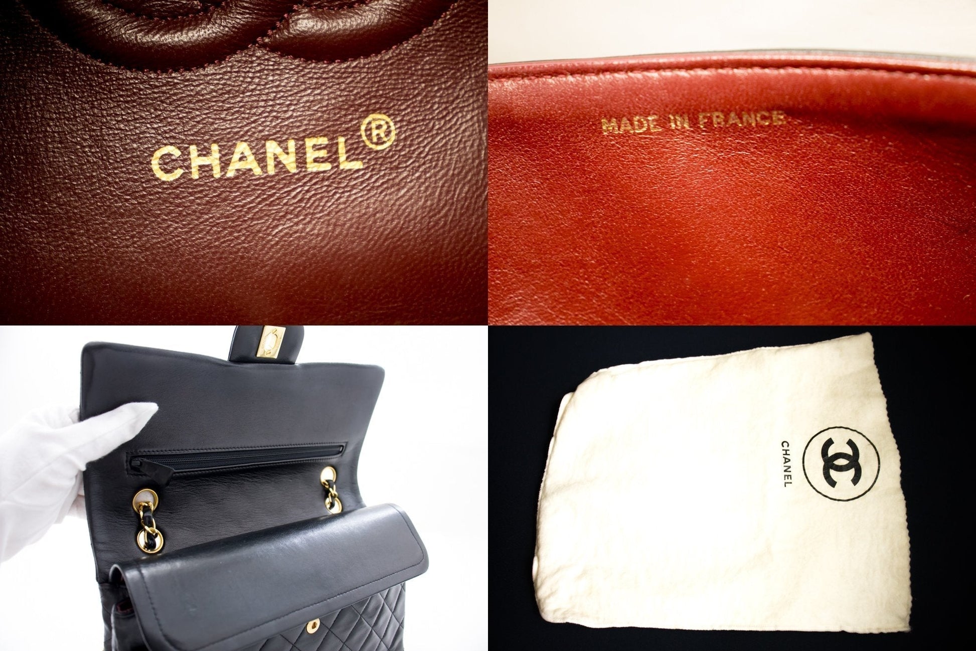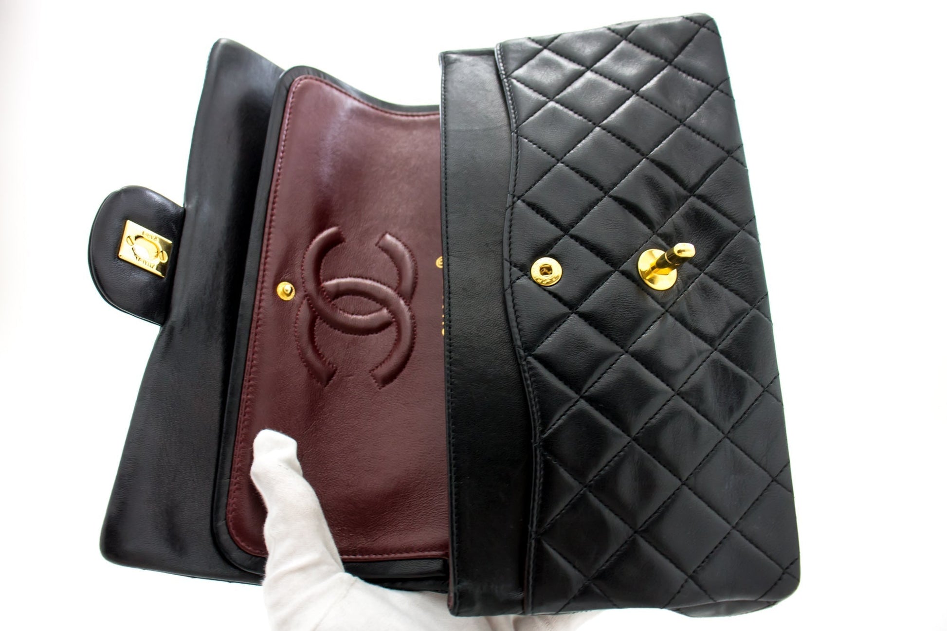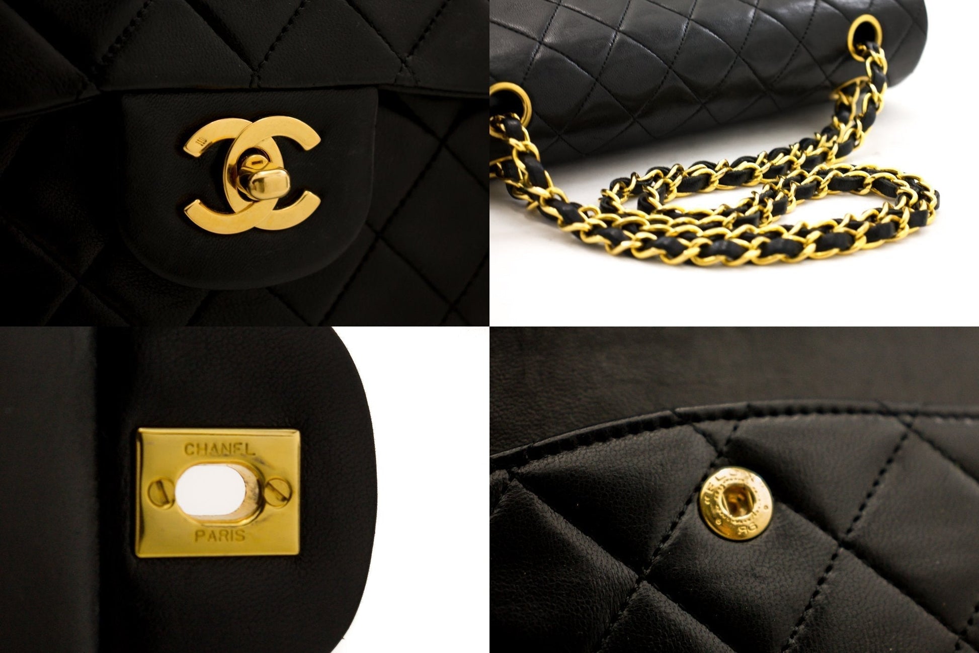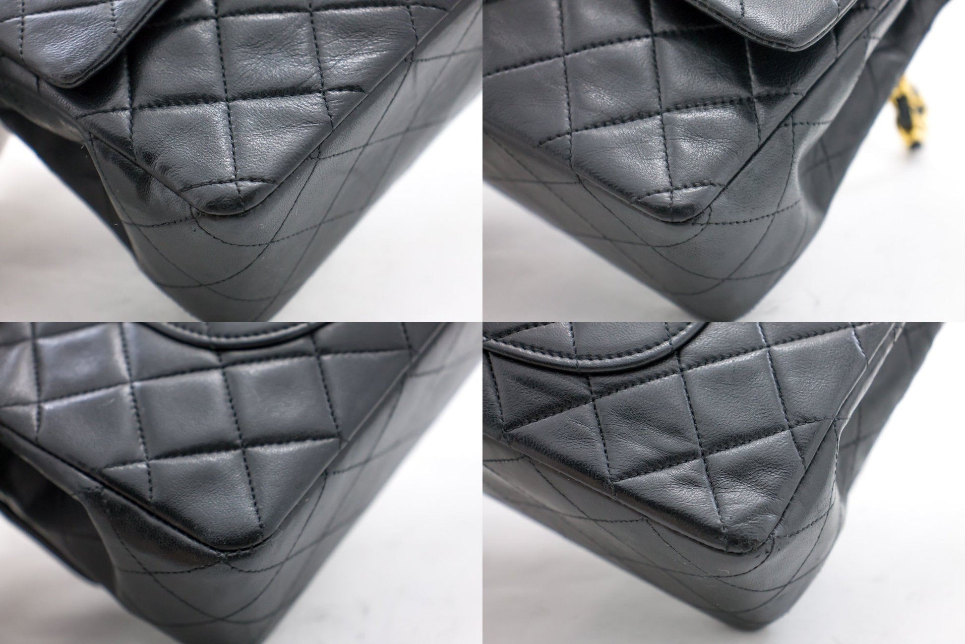 An CHANEL Classic Double Flap 10" Chain Shoulder Bag Black made of black Lambskin i71 This item is Vintage / Classic. The year of manufacture would be 1989-1991.