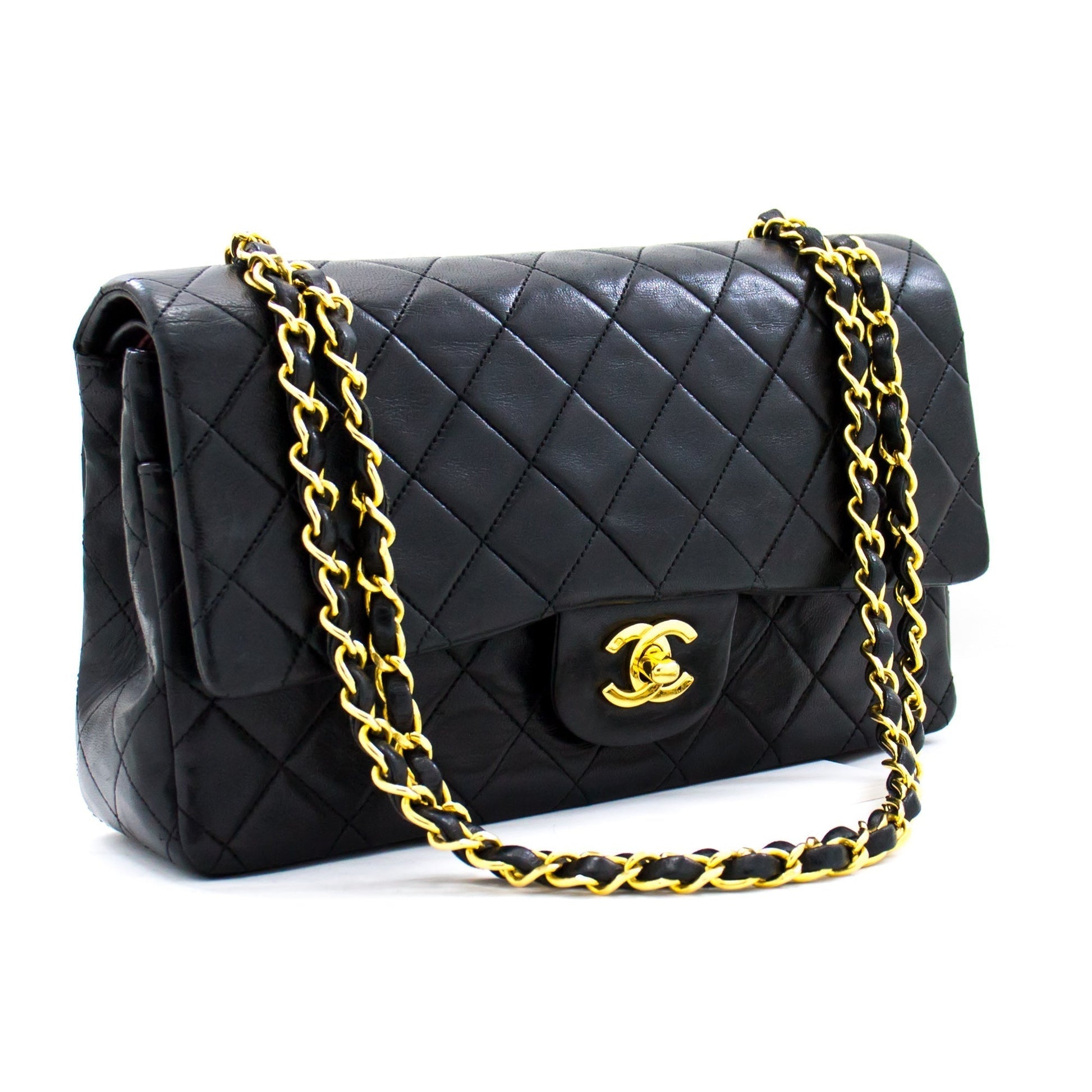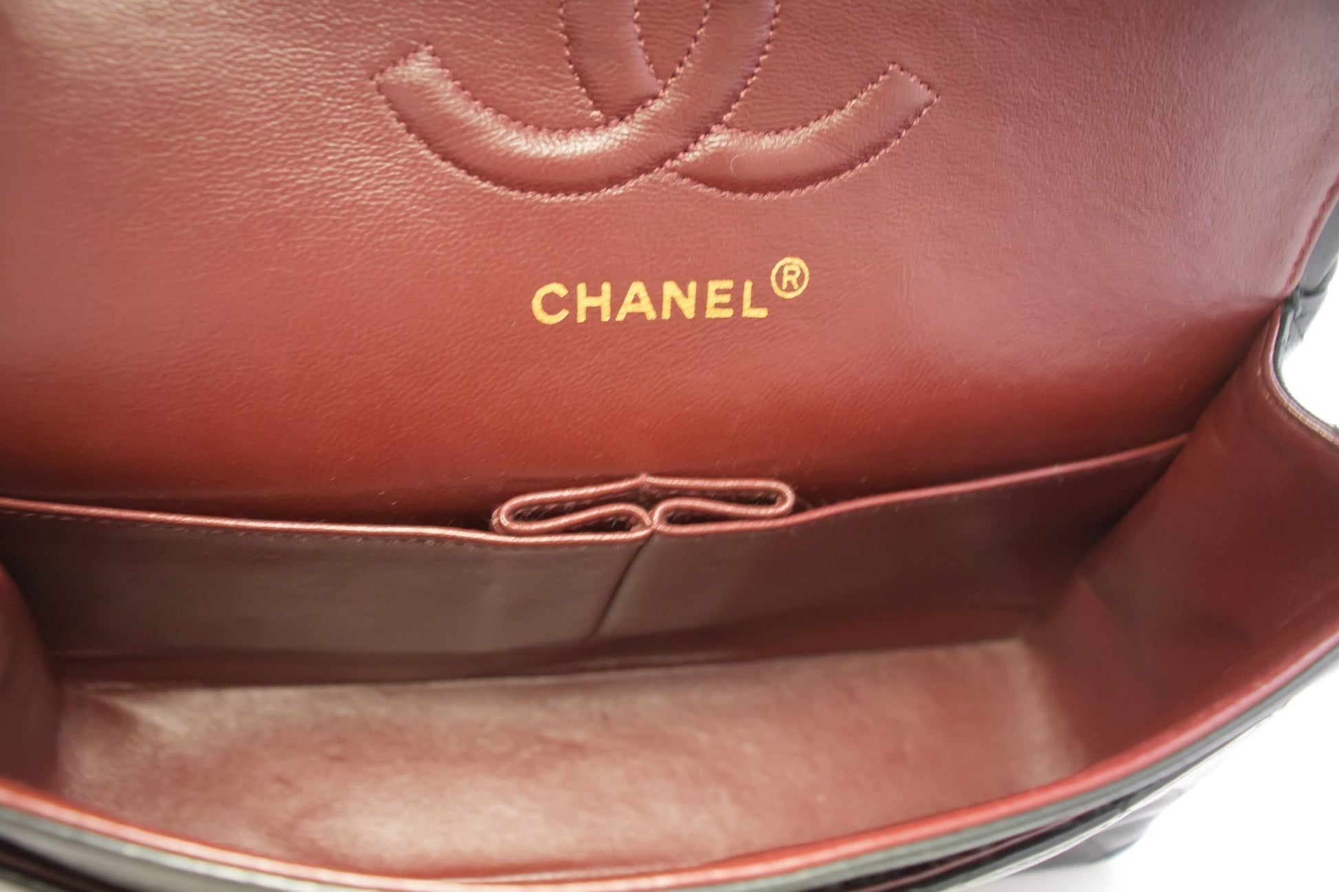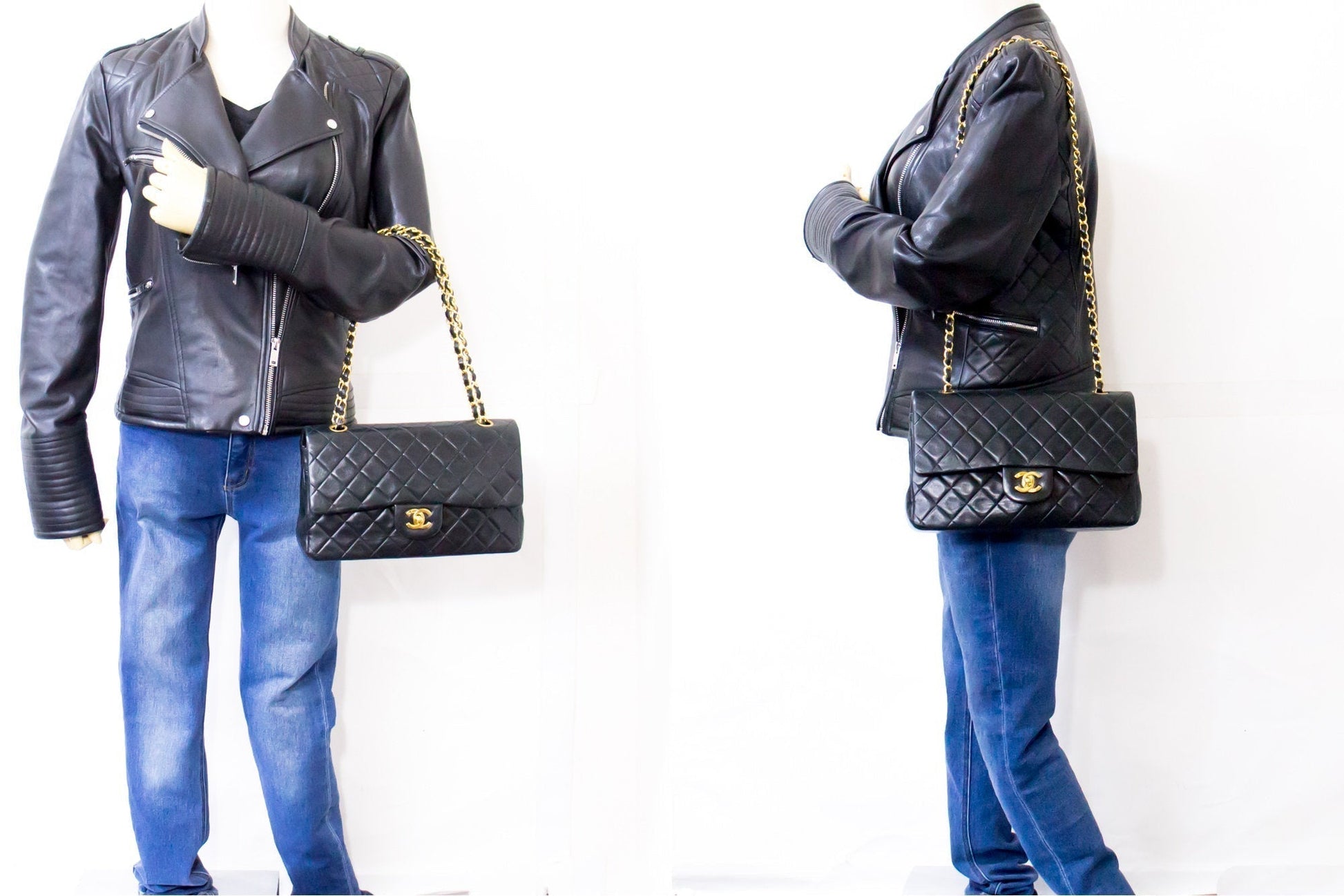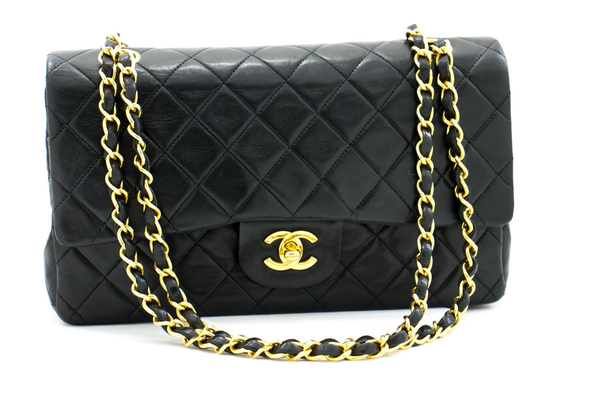 An CHANEL Classic Double Flap 10" Chain Shoulder Bag Black made of black Lambskin i71 This item is Vintage / Classic. The year of manufacture would be 1989-1991.