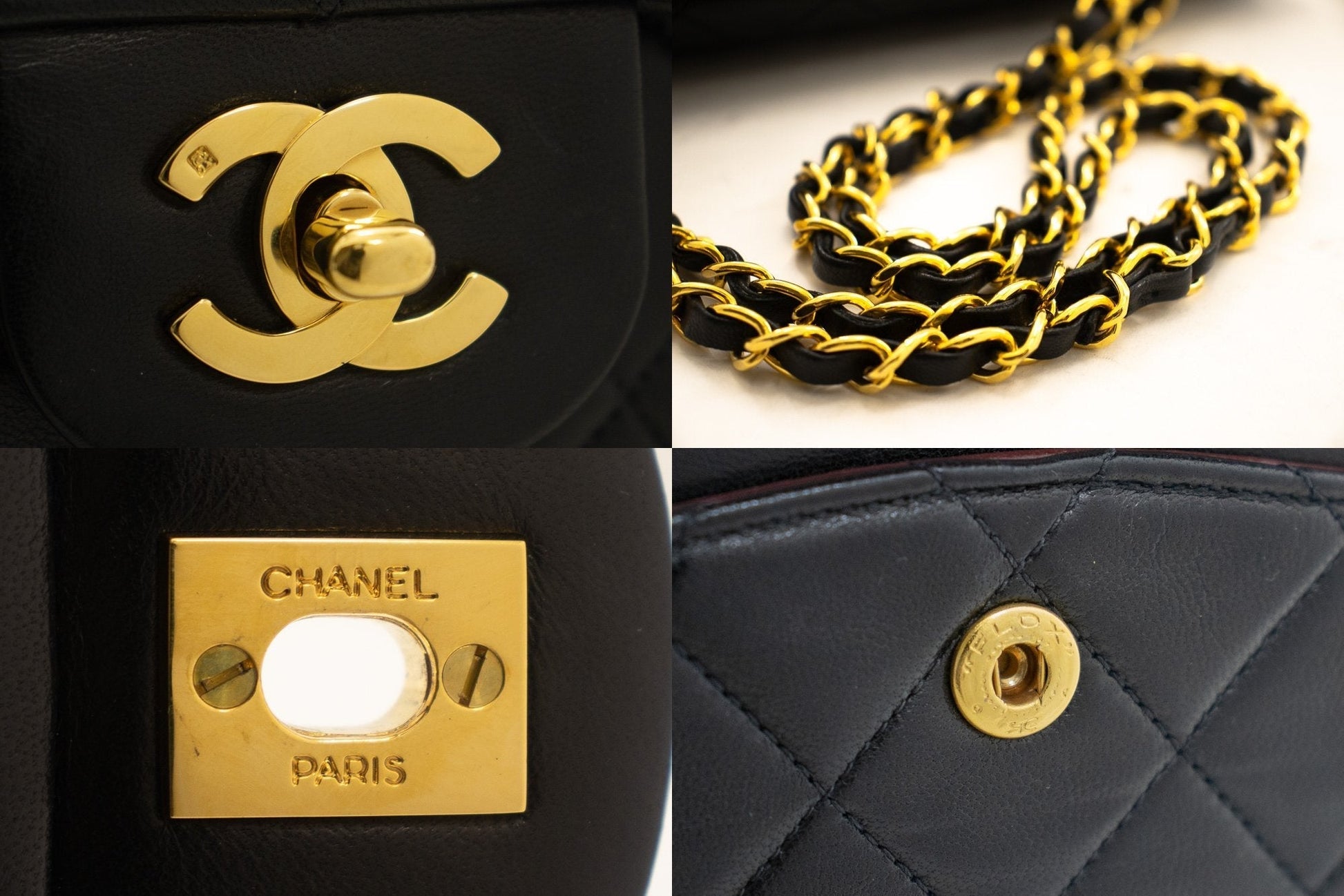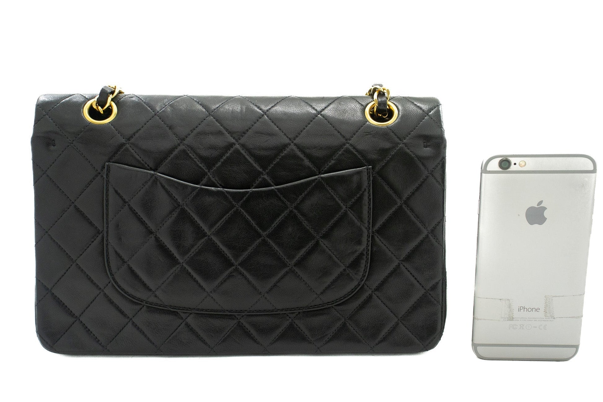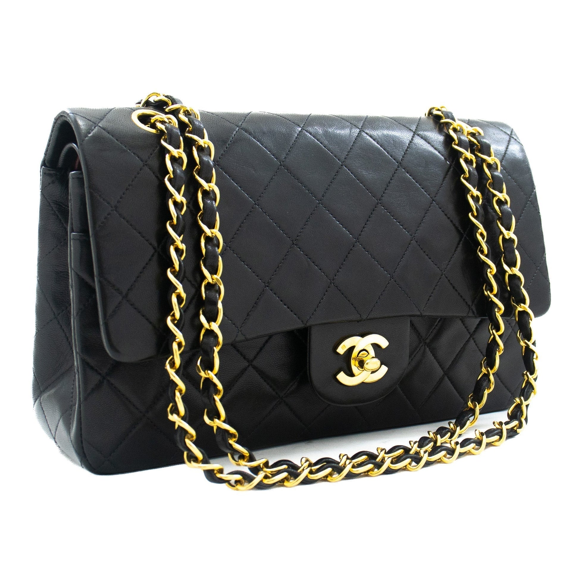 An CHANEL Classic Double Flap 10" Chain Shoulder Bag Black made of black Lambskin k03 This item is Vintage / Classic. The year of manufacture would be 1991-1994.
