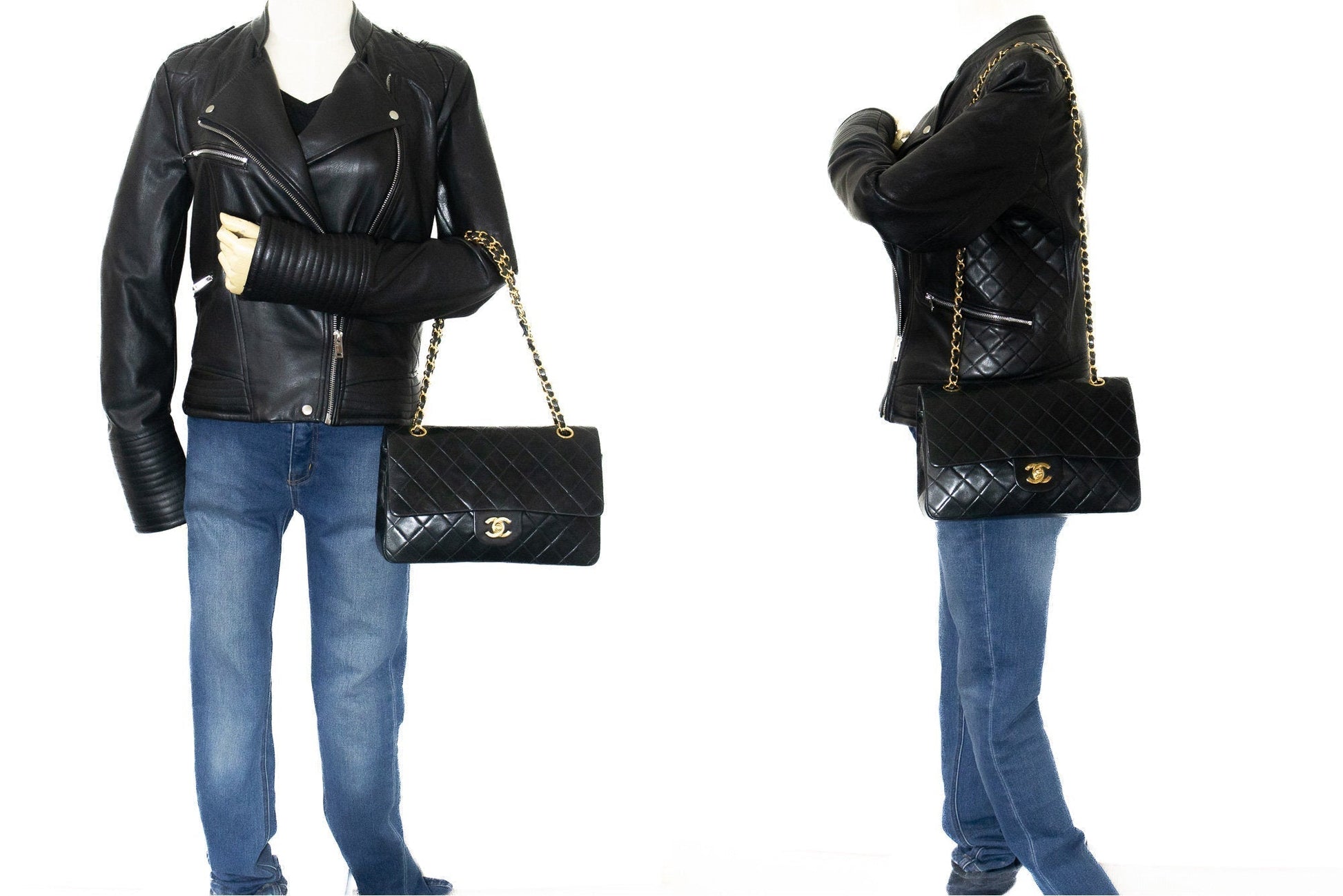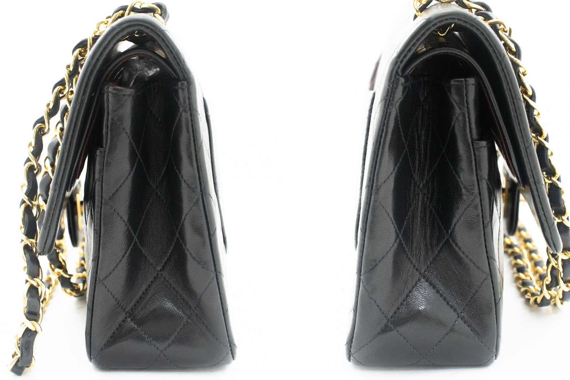 CHANEL Classic Double Flap 10" Chain Shoulder Bag Black Lambskin k03