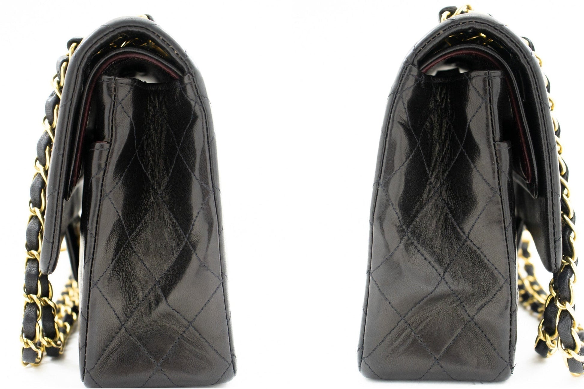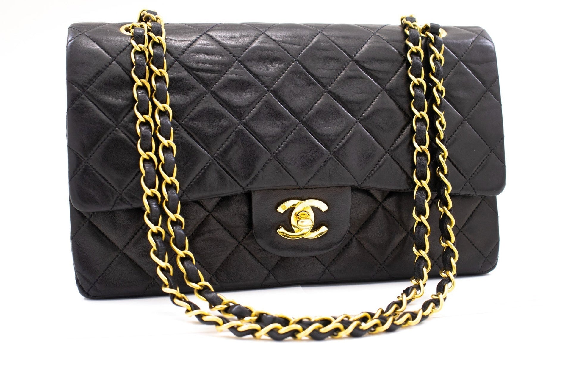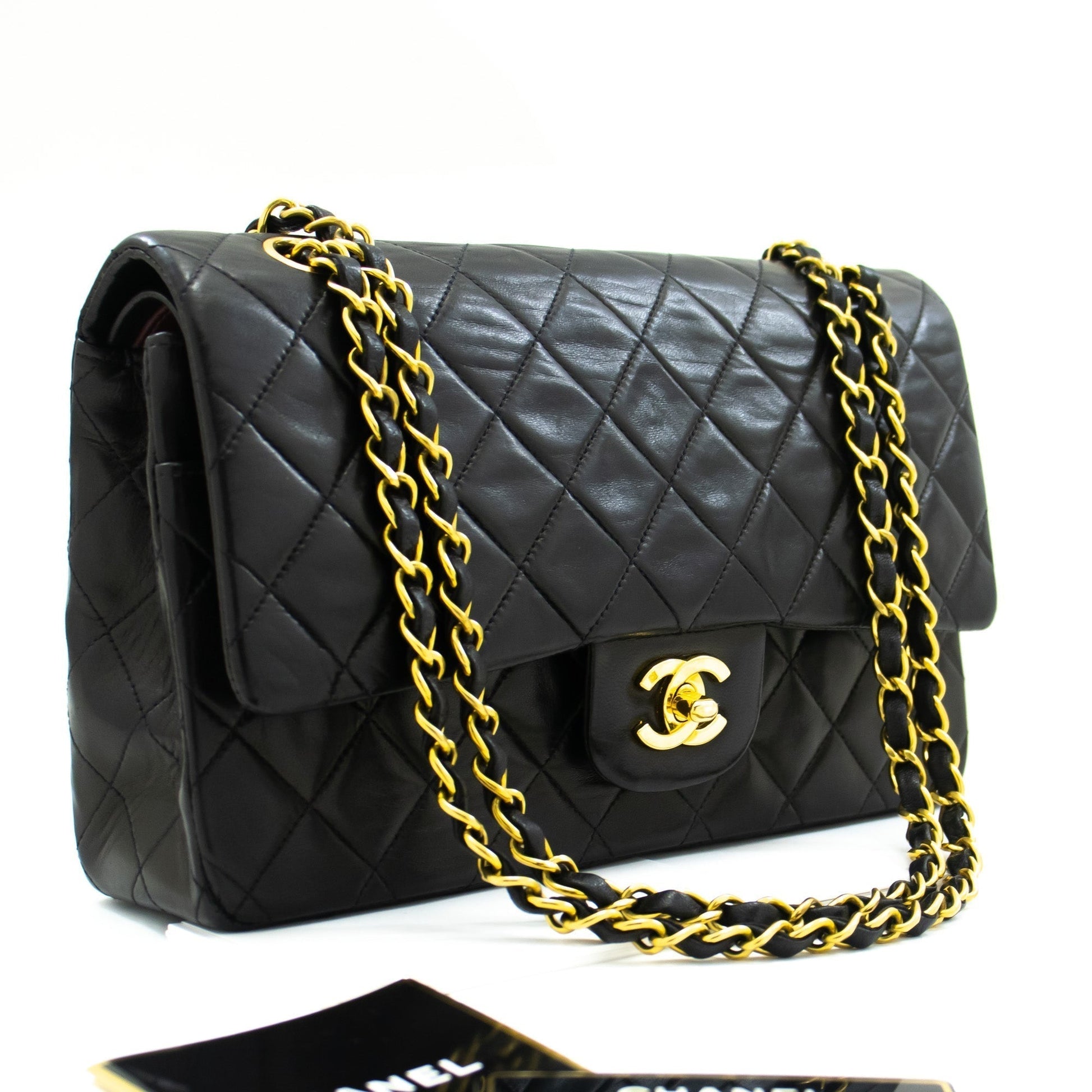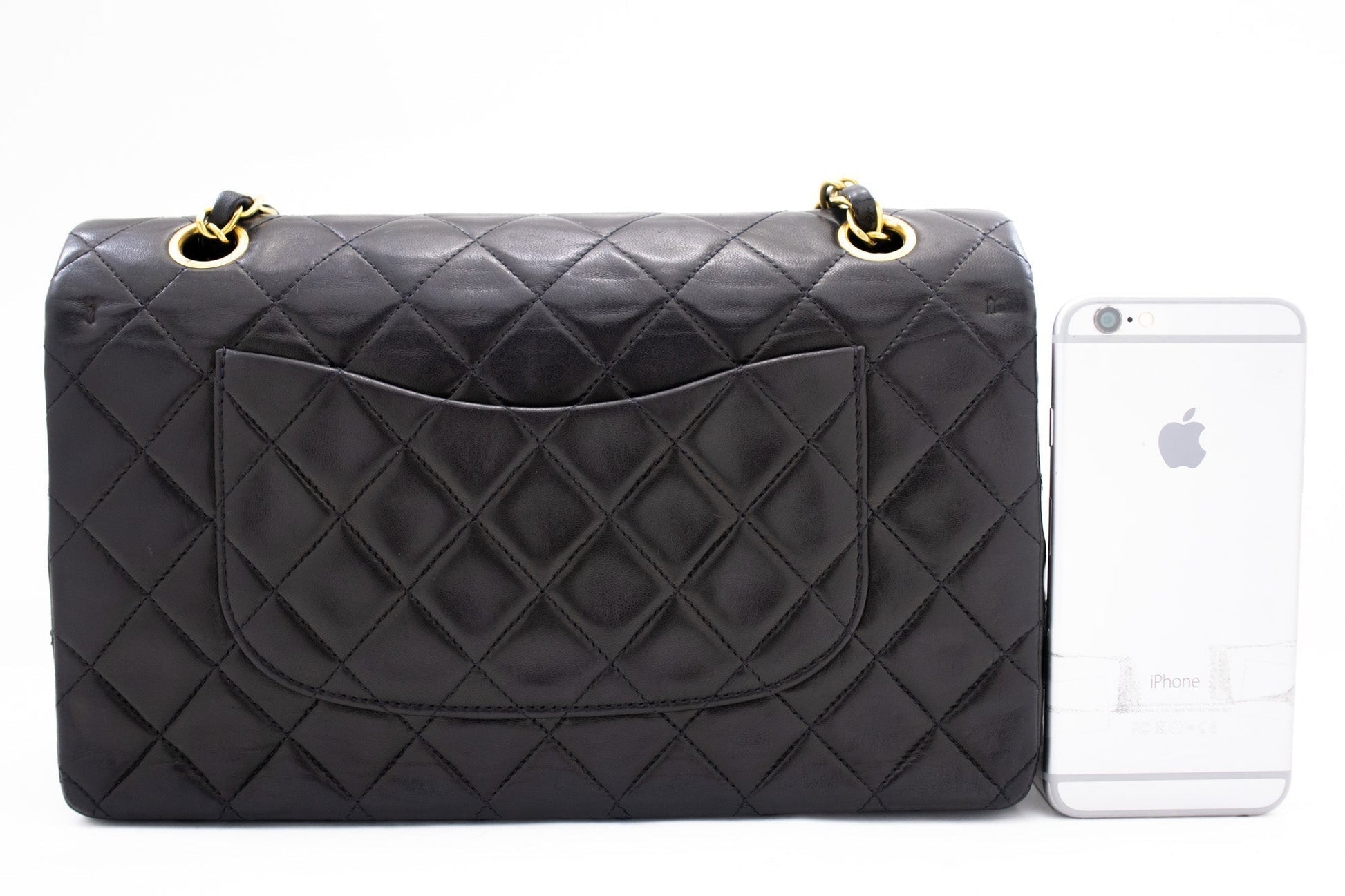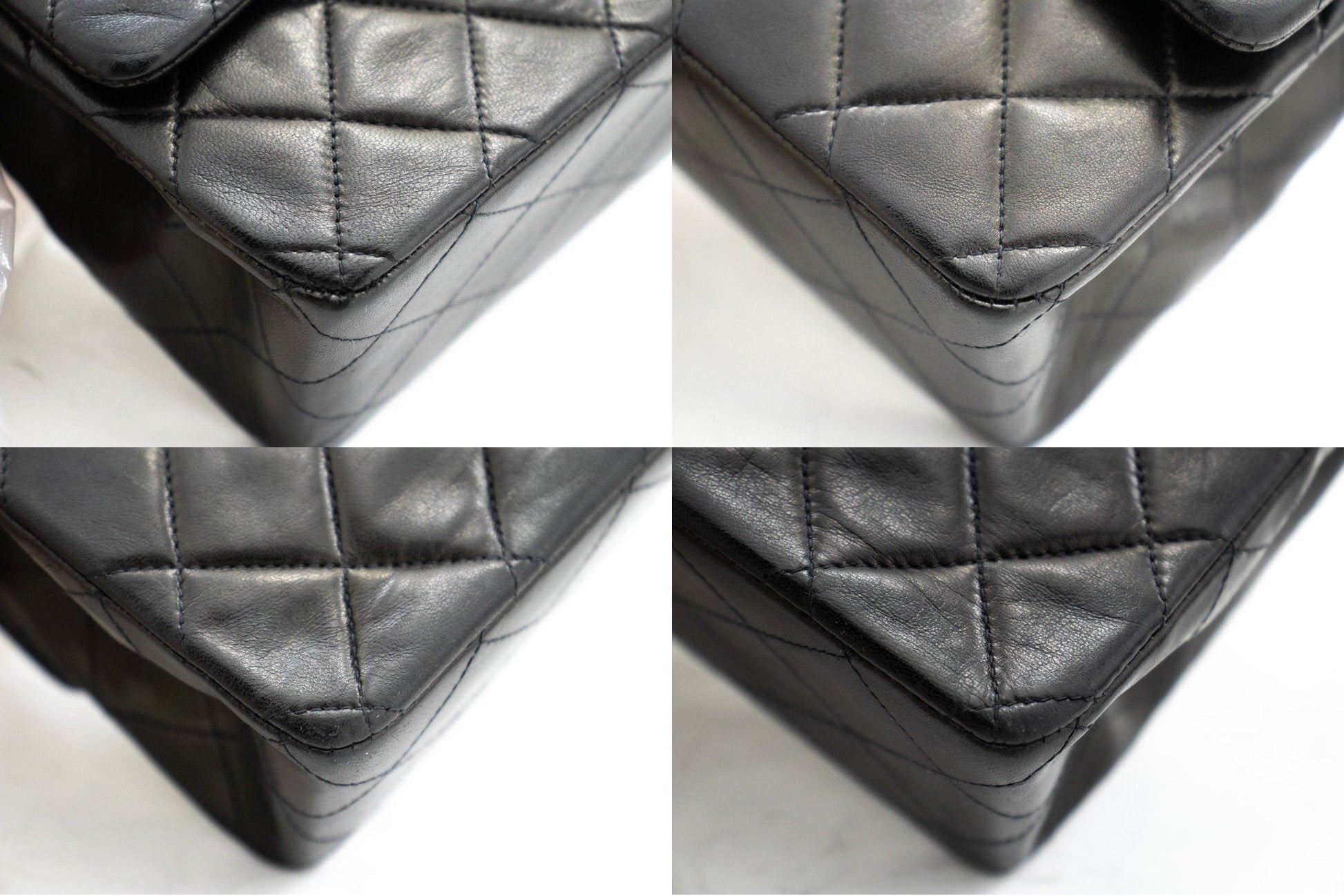 An CHANEL Classic Double Flap 10" Chain Shoulder Bag Black made of black Lambskin k71 This item is Vintage / Classic. The year of manufacture would be 1994-1996.