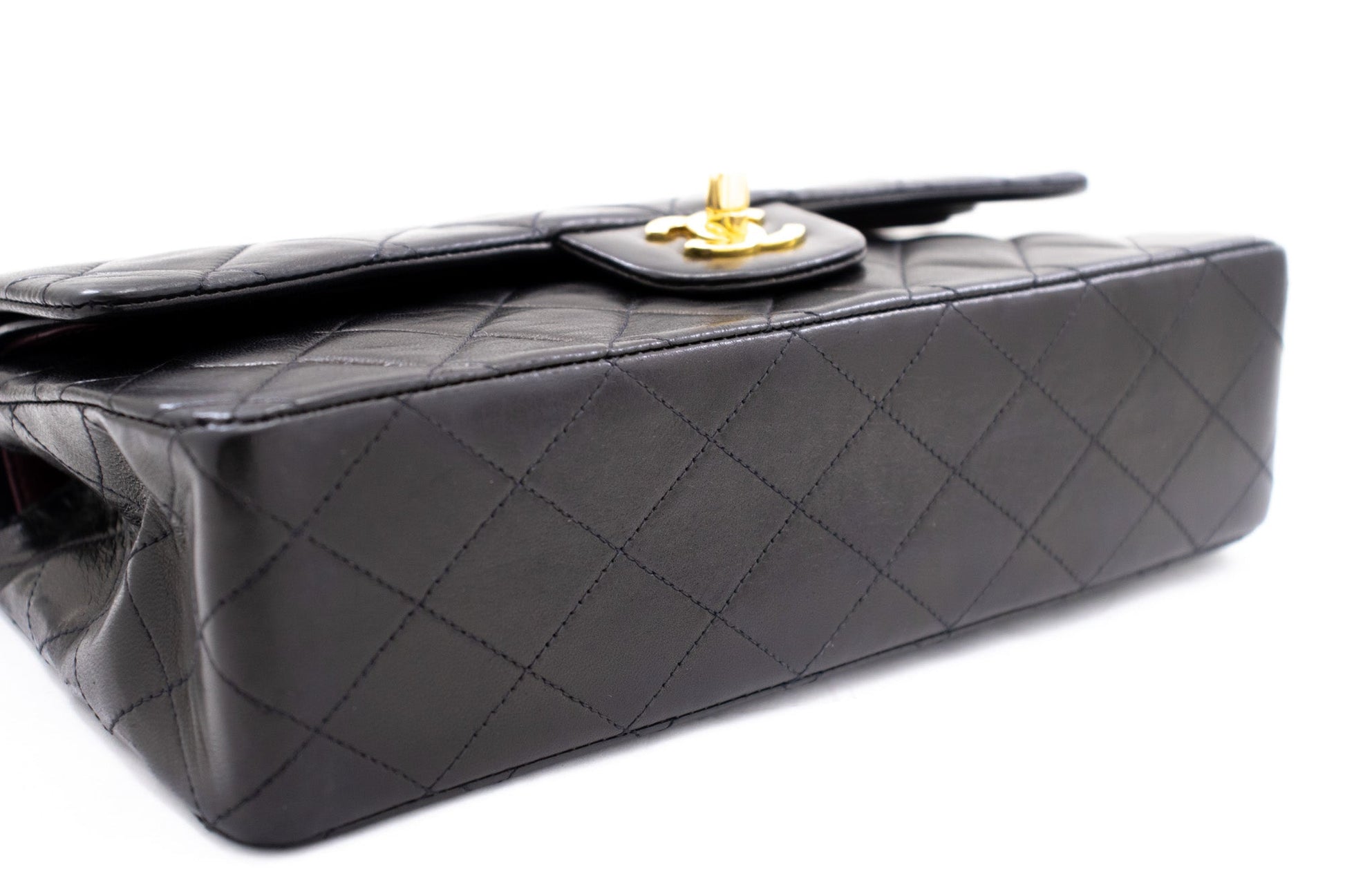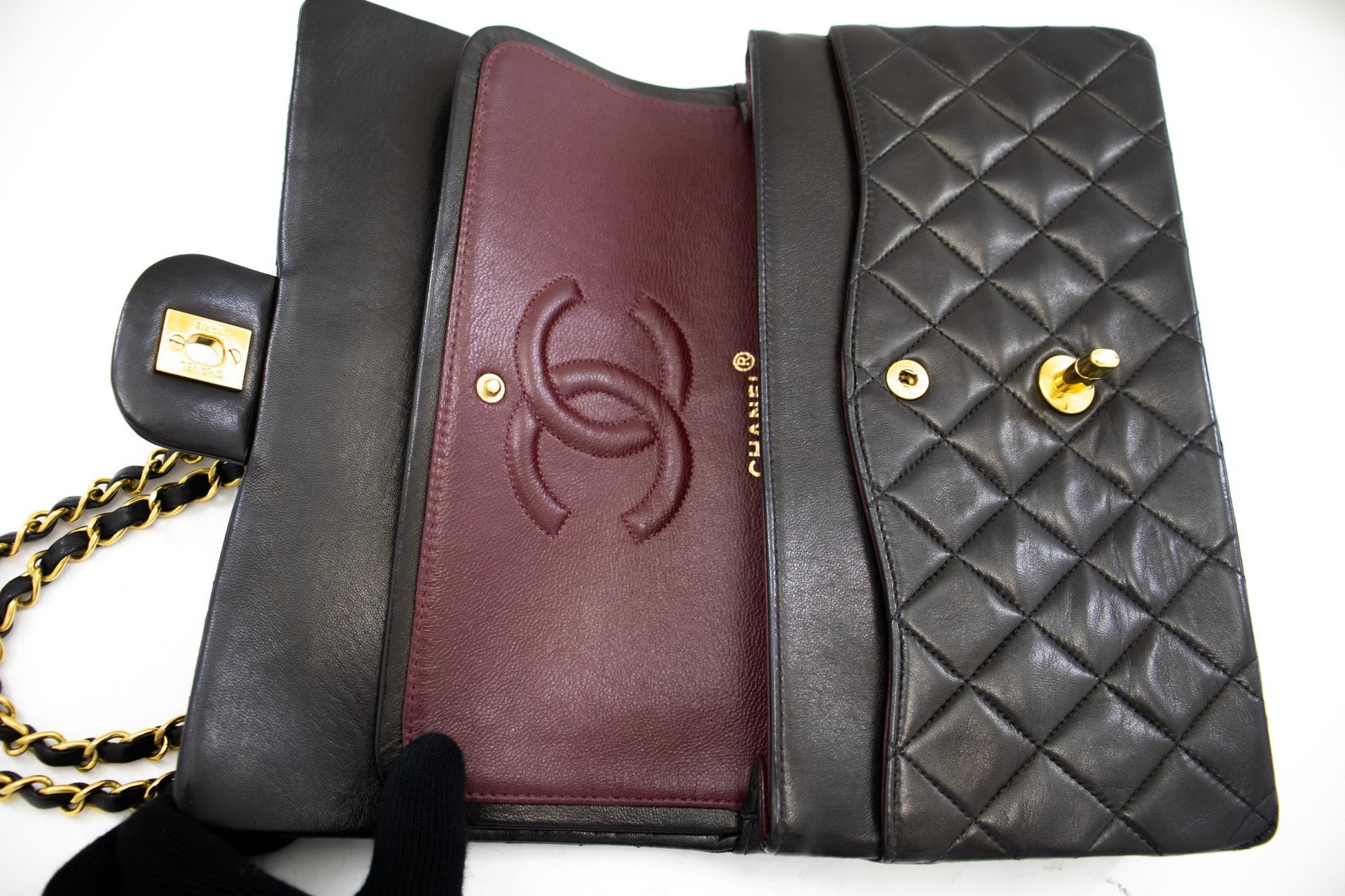 CHANEL Classic Double Flap 10" Chain Shoulder Bag Black Lambskin k71
