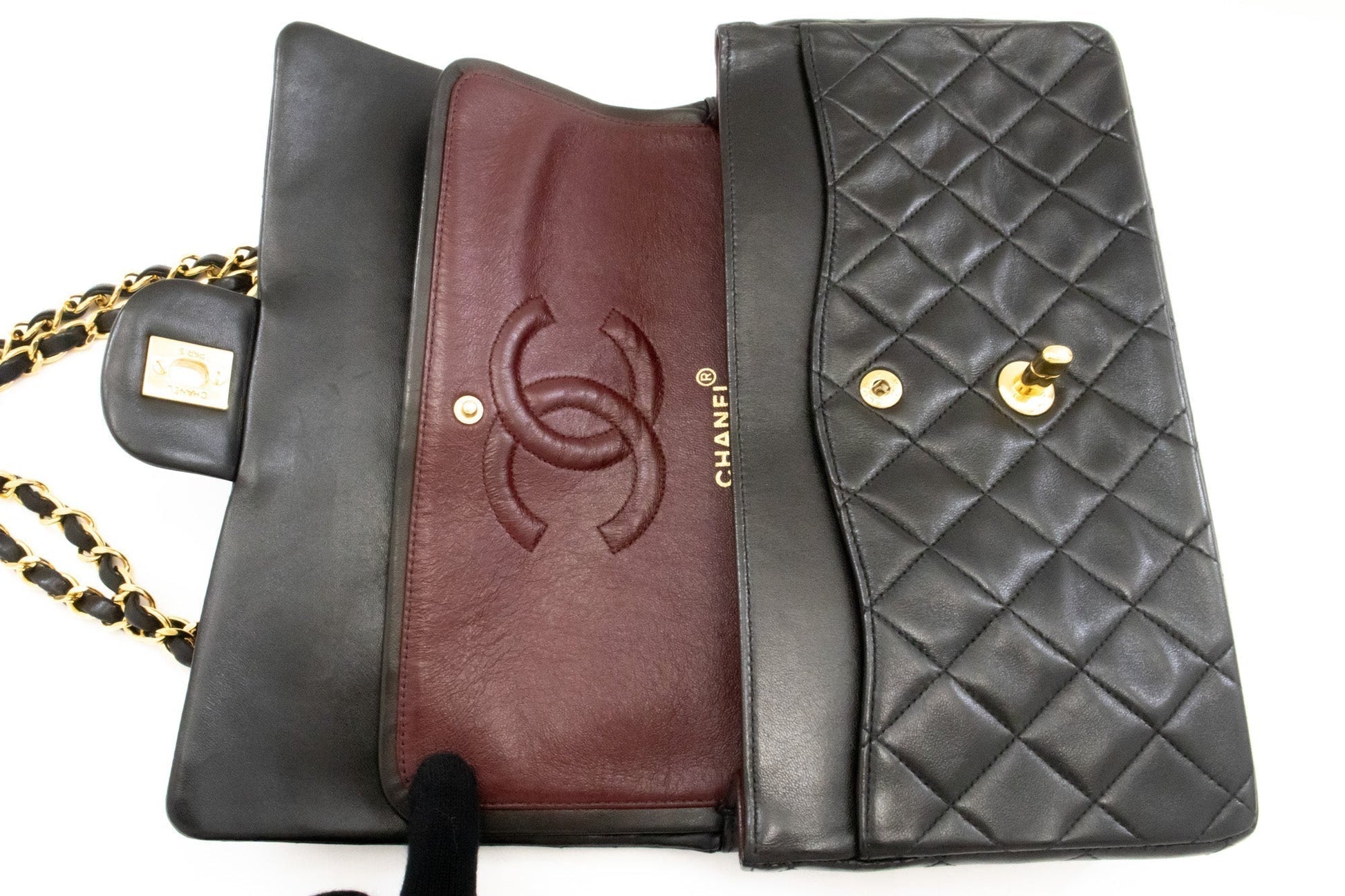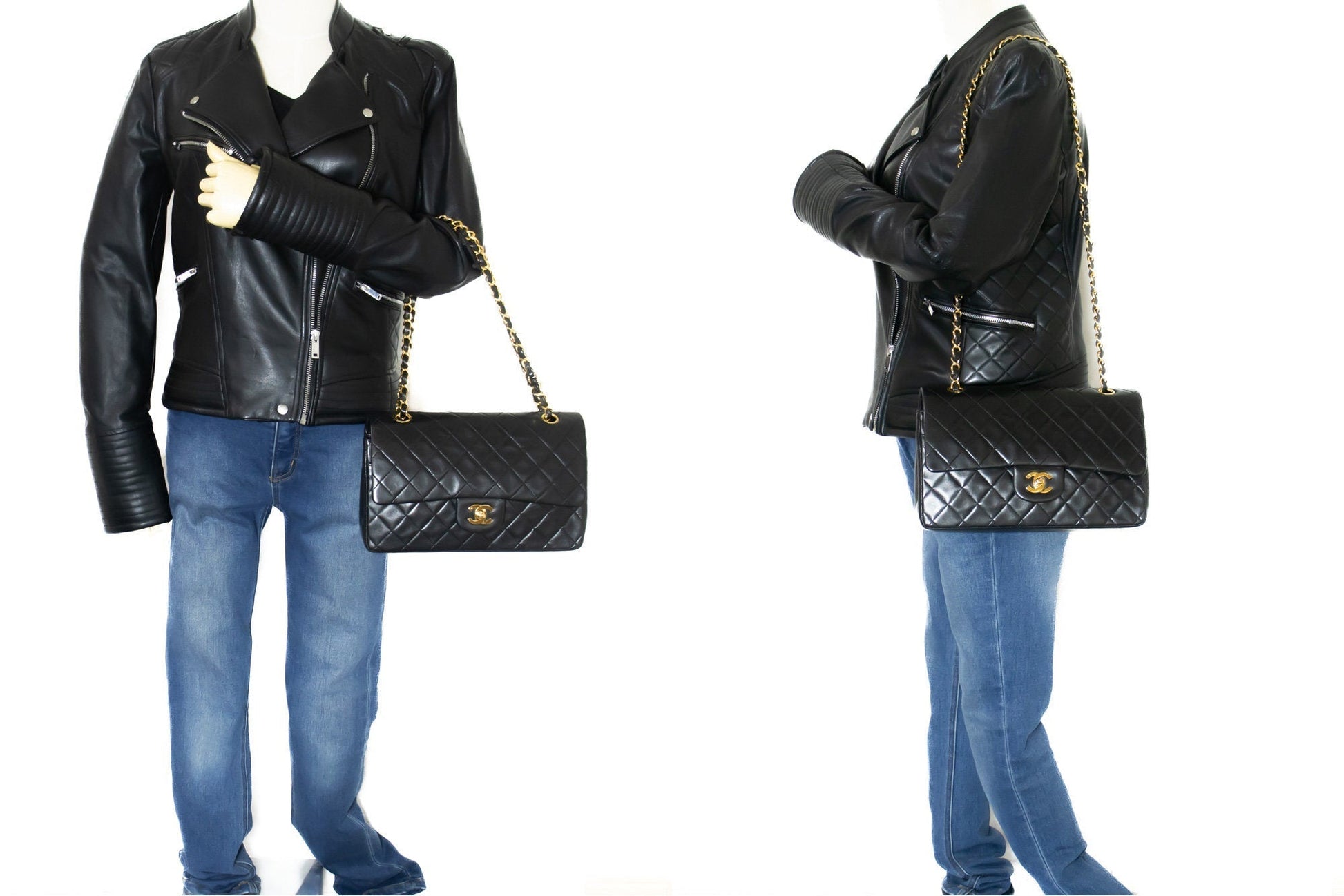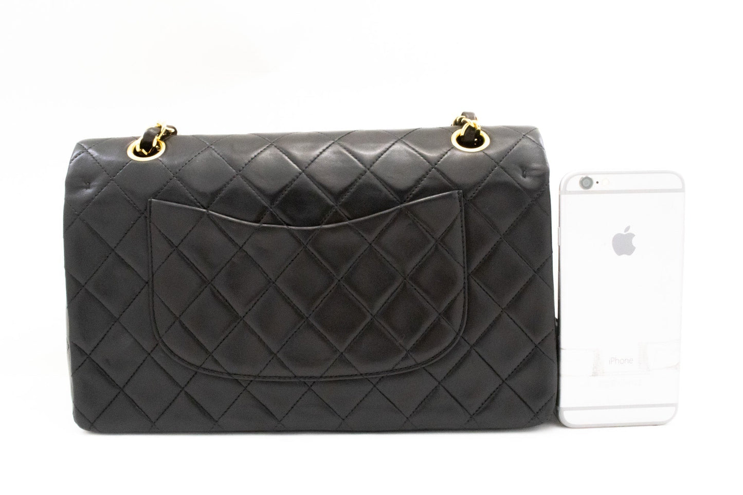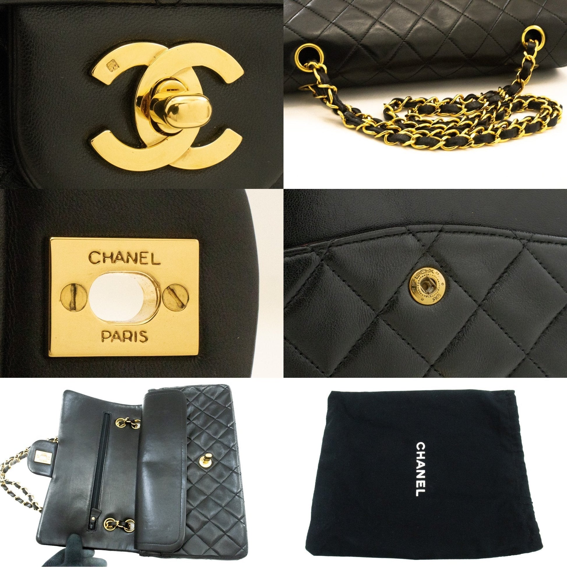 An CHANEL Classic Double Flap 10" Chain Shoulder Bag Black made of black Lambskin k74 This item is Vintage / Classic. The year of manufacture would be 1991-1994.
