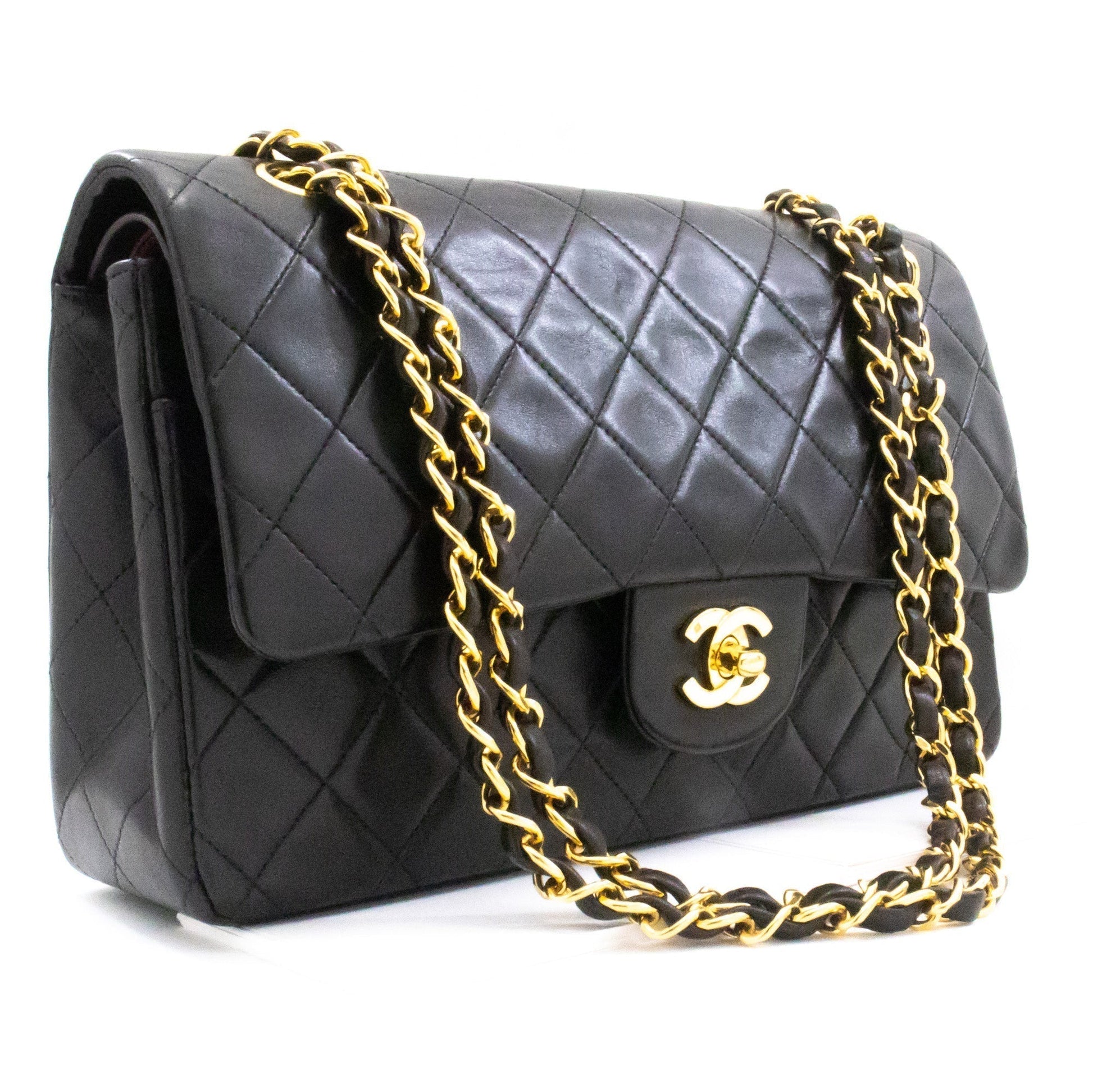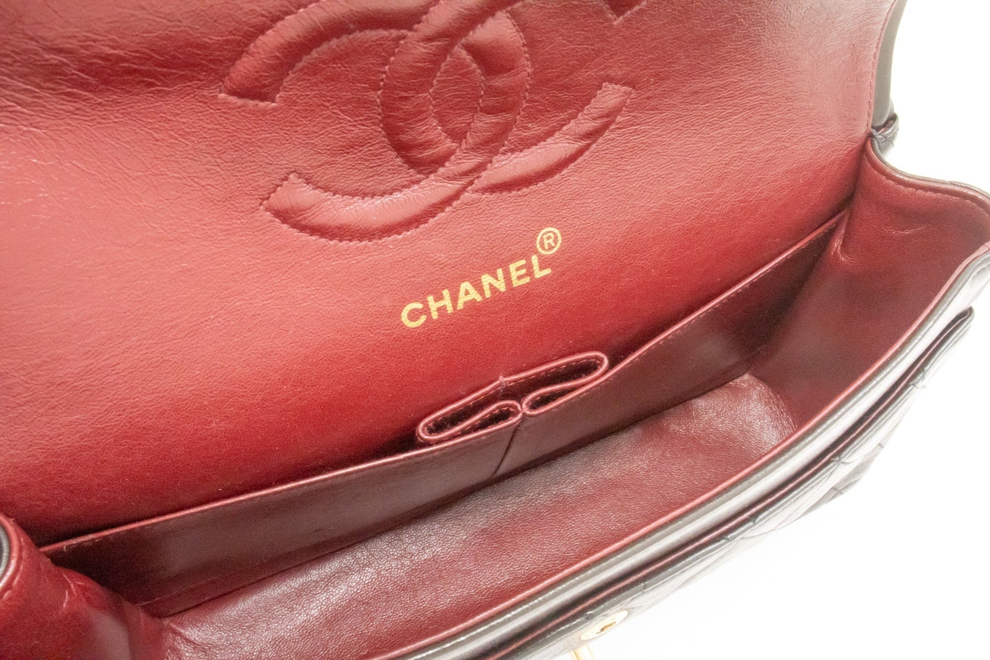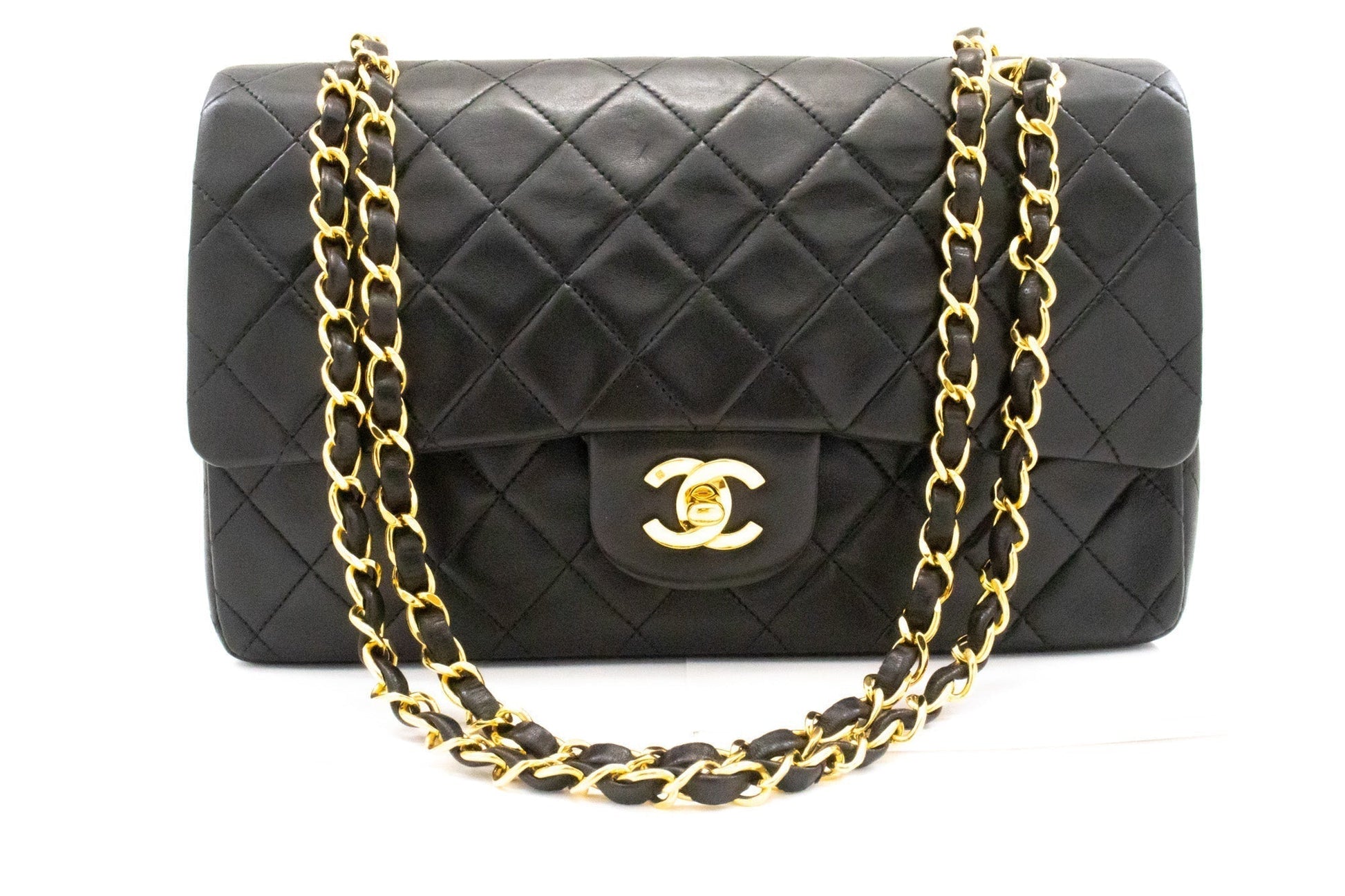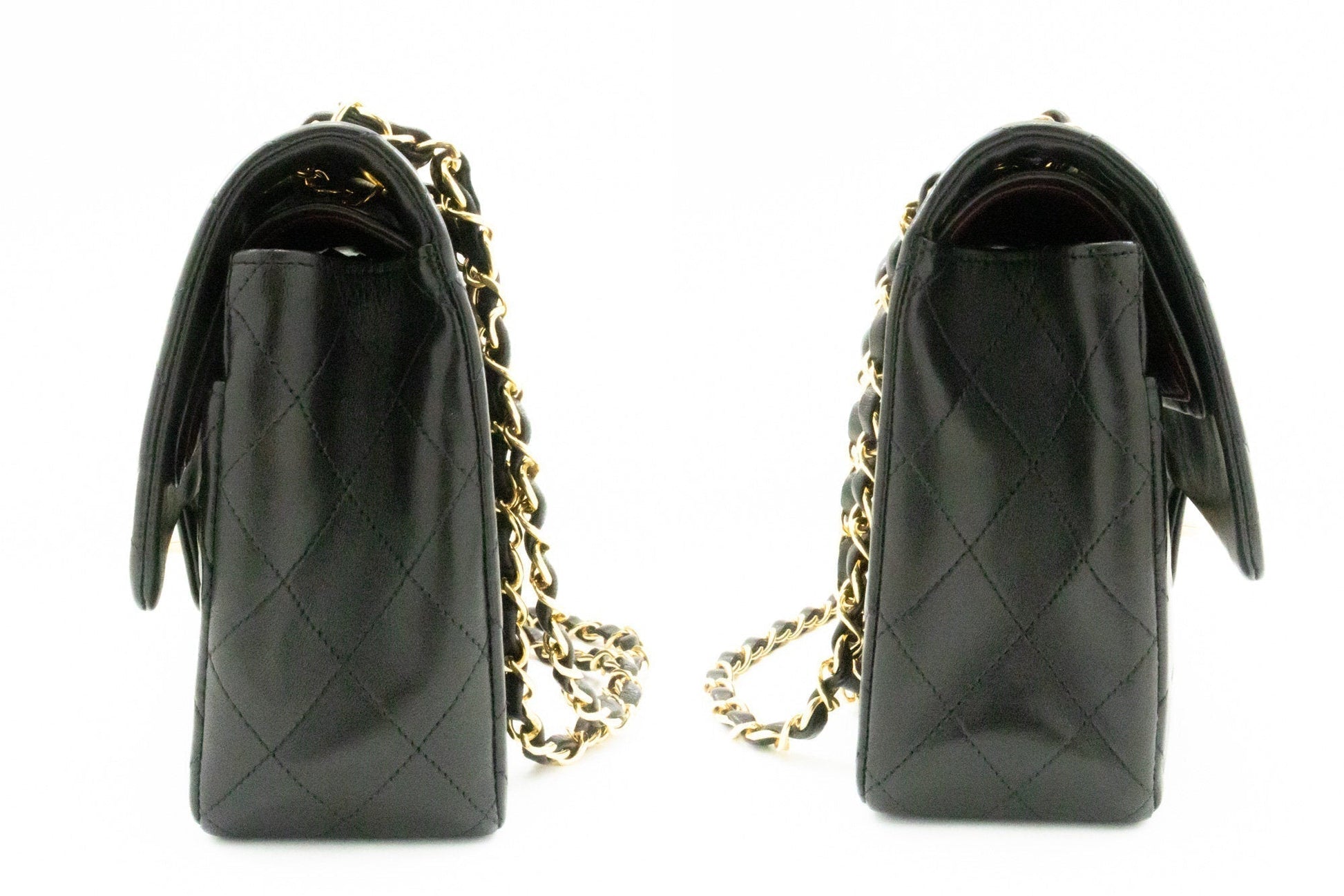 An CHANEL Classic Double Flap 10" Chain Shoulder Bag Black made of black Lambskin k74 This item is Vintage / Classic. The year of manufacture would be 1991-1994.