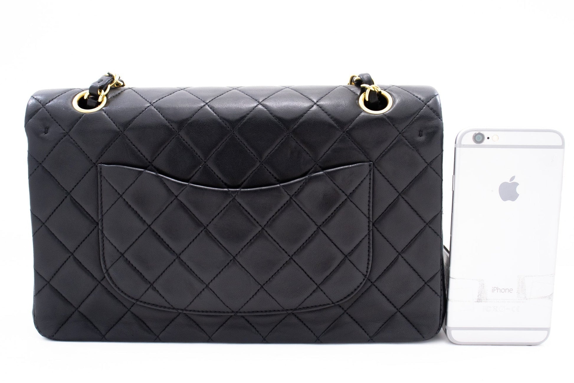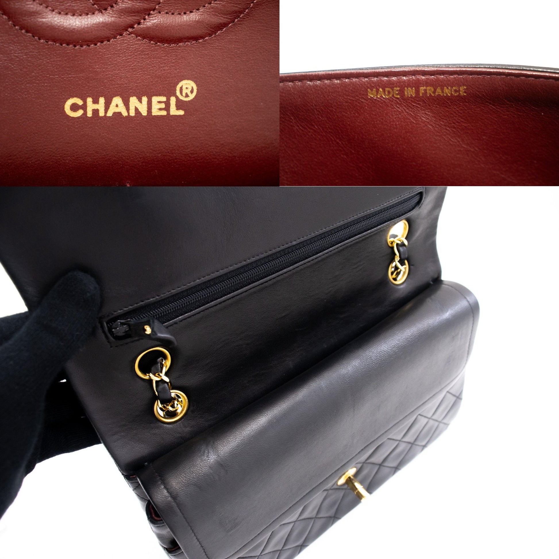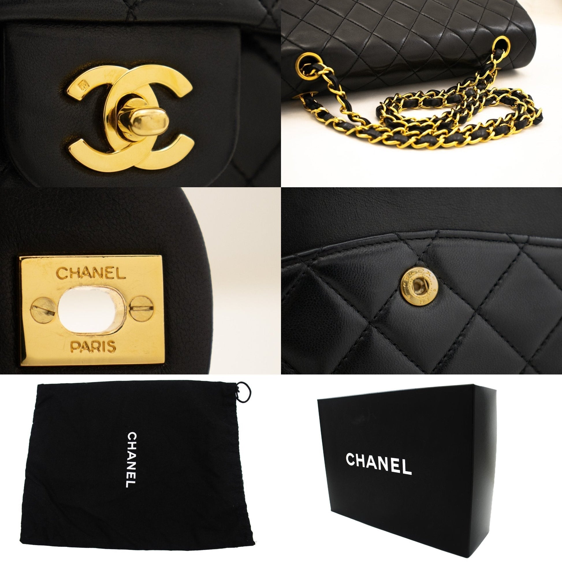 An CHANEL Classic Double Flap 10" Chain Shoulder Bag Black made of black Lambskin k76 This item is Vintage / Classic. The year of manufacture would be 1994-1996.