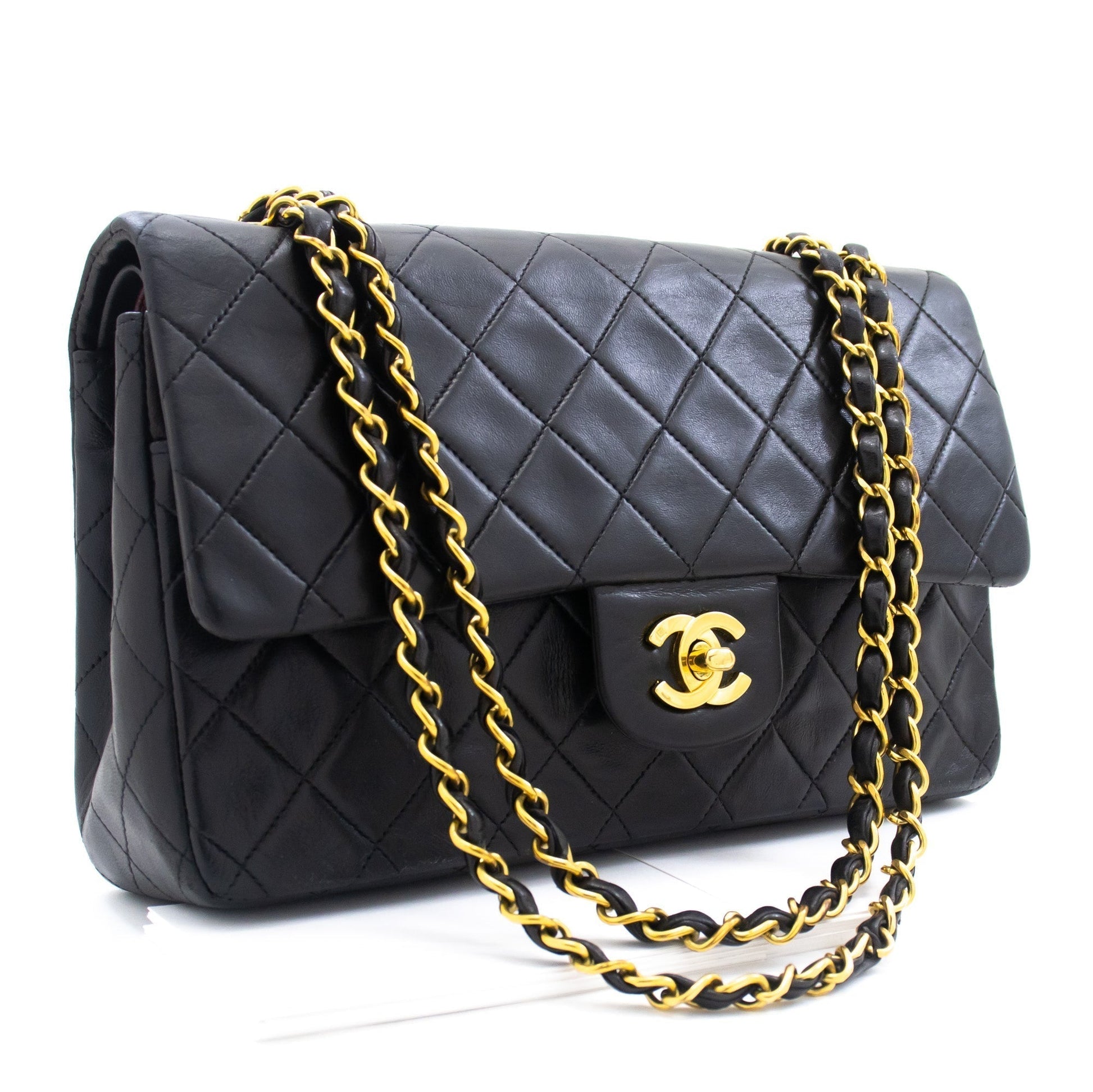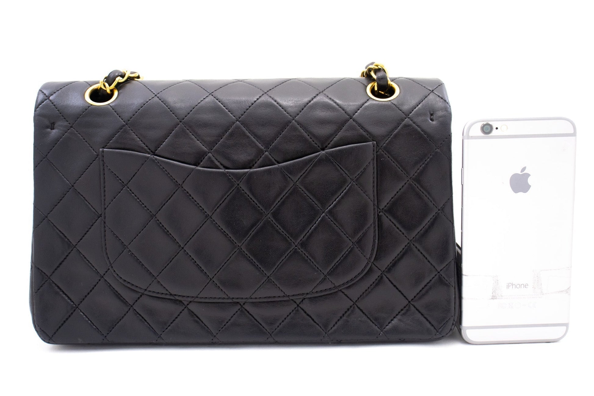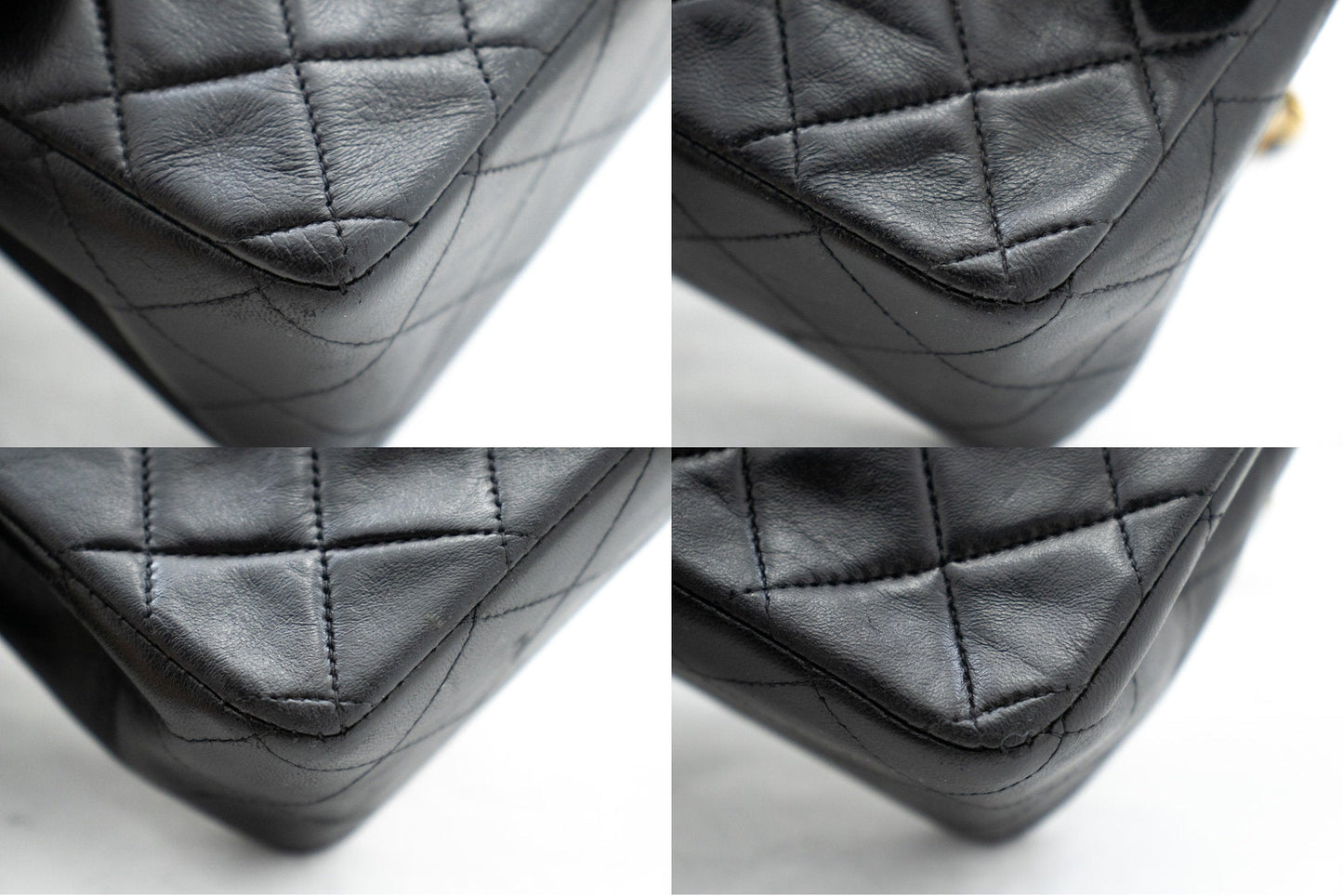 An CHANEL Classic Double Flap 10" Chain Shoulder Bag Black made of black Lambskin k77 This item is Vintage / Classic. The year of manufacture would be 1994-1996.