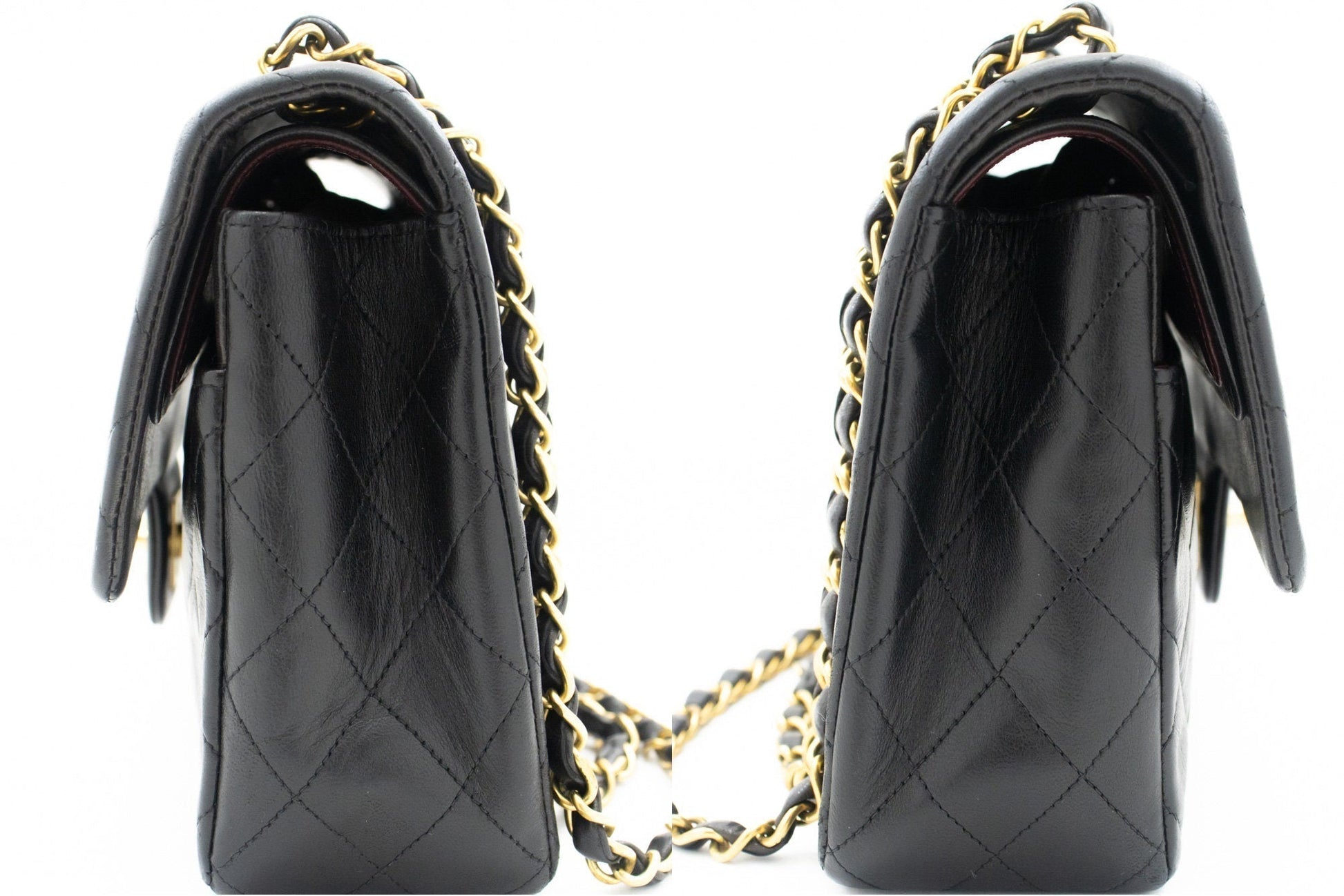 CHANEL Classic Double Flap 10" Chain Shoulder Bag Black Lambskin k77