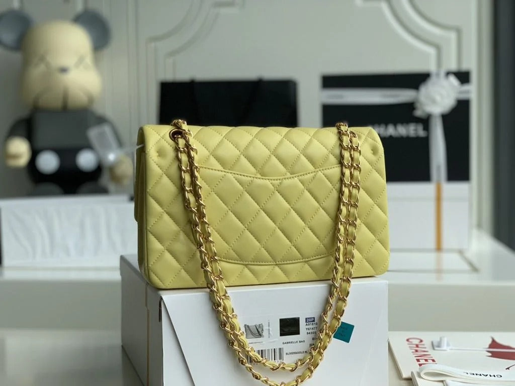 Chanel Classic Double Flap 25 Shoulder Bag Lemon