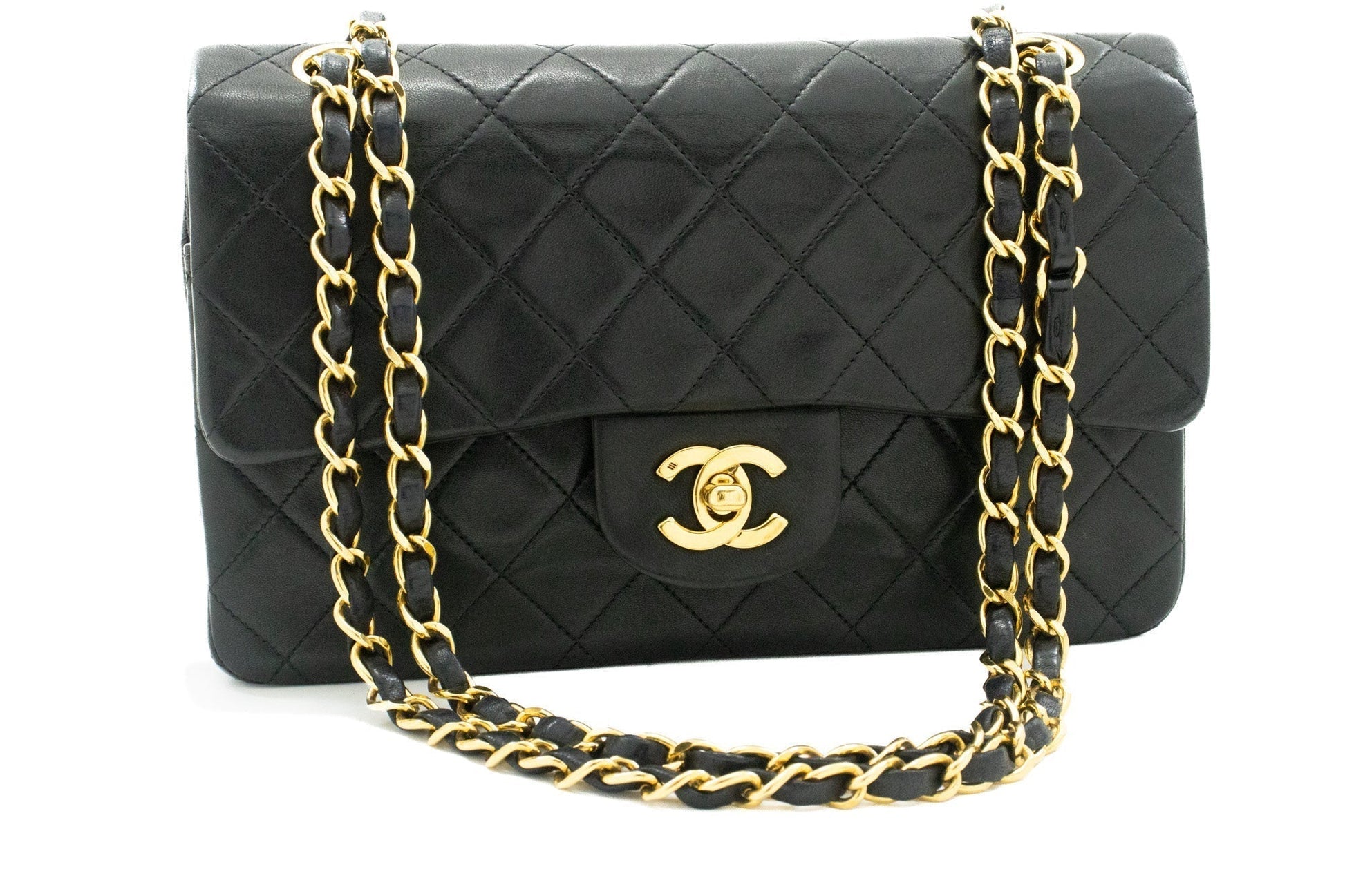 An CHANEL Classic Double Flap 9" Chain Shoulder Bag Black made of black Lambskin j57 This item is Vintage / Classic. The year of manufacture would be 1991-1994.