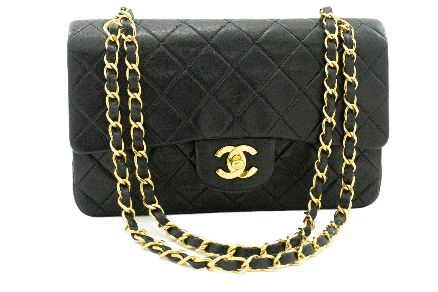 An CHANEL Classic Double Flap 9" Chain Shoulder Bag Black made of black Lambskin k51 This item is Vintage / Classic. The year of manufacture would be 1991-1994.