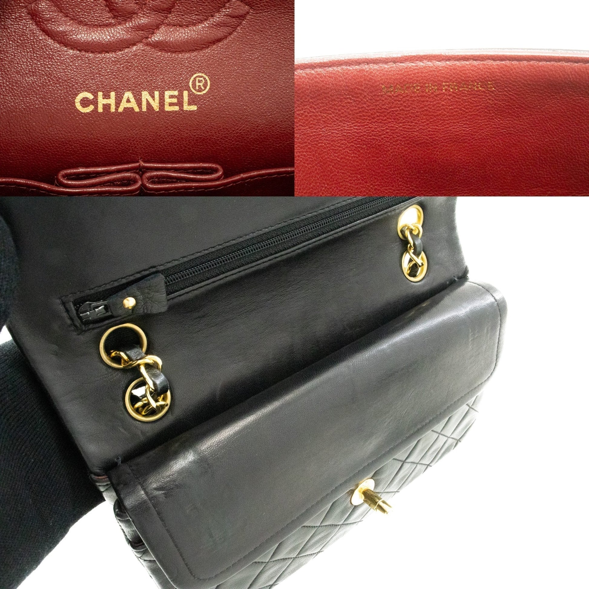 CHANEL Classic Double Flap 9" Chain Shoulder Bag Black Lambskin k51