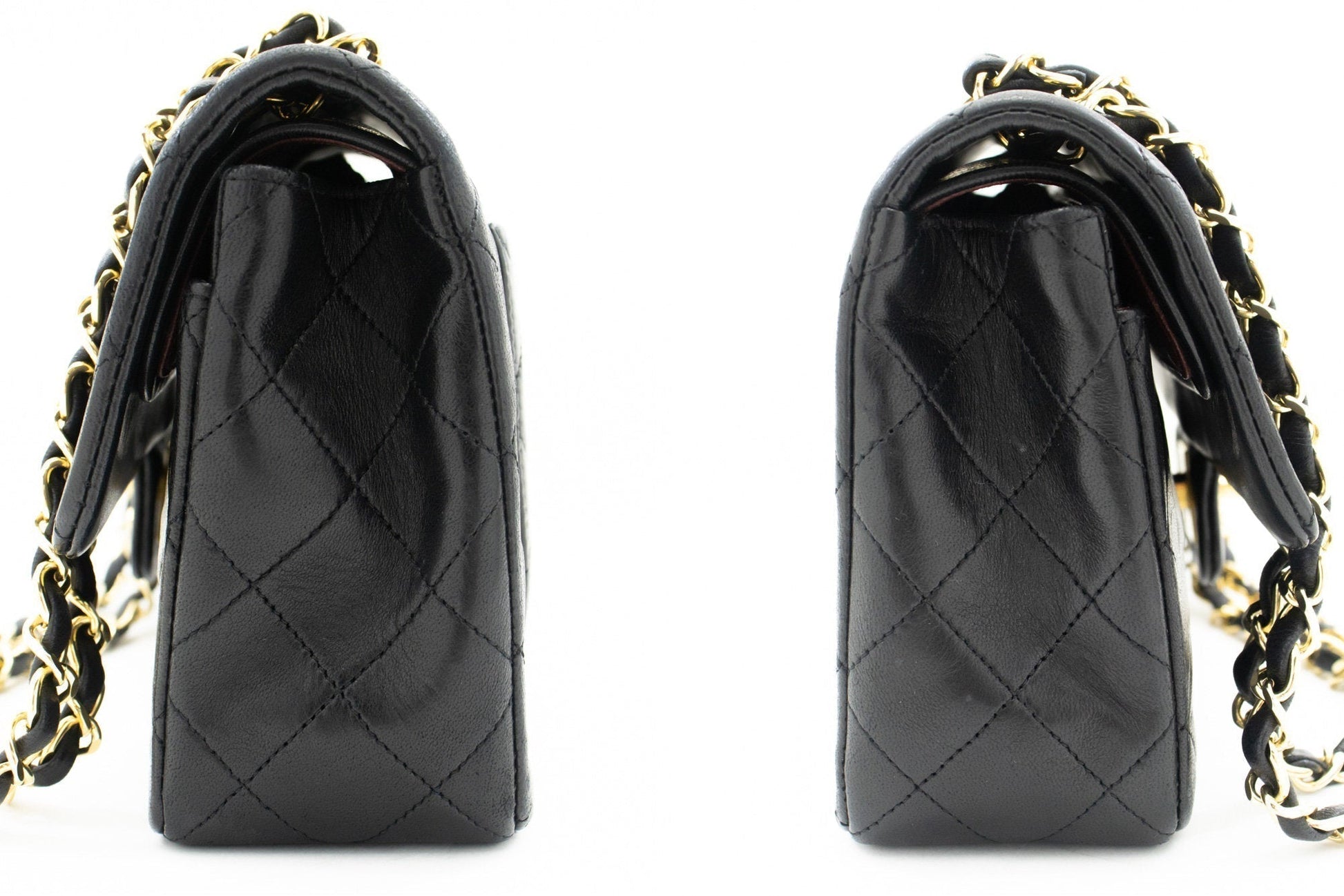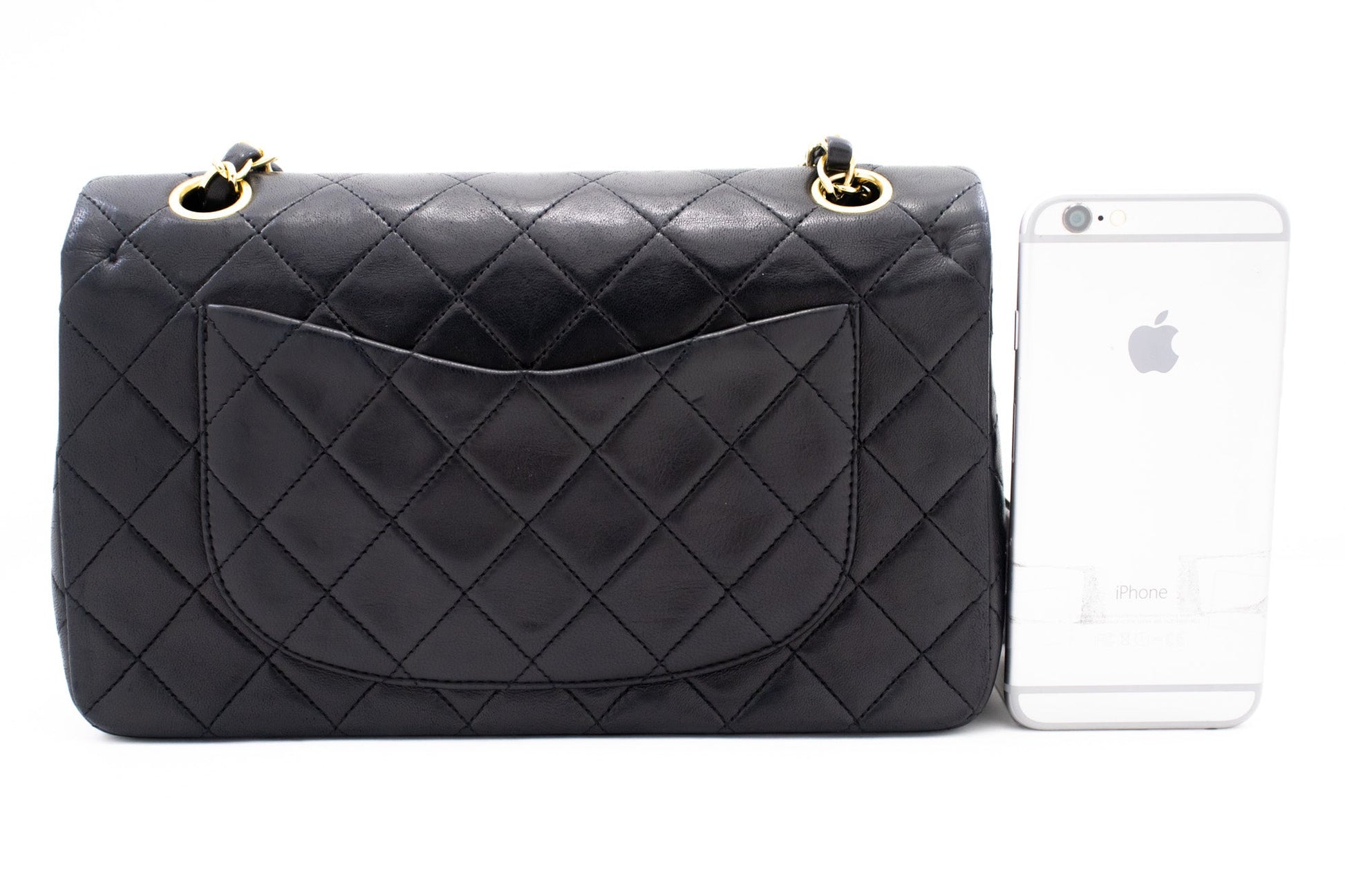 An CHANEL Classic Double Flap 9" Chain Shoulder Bag Black made of black Lambskin k65 This item is Vintage / Classic. The year of manufacture would be 1989-1991.