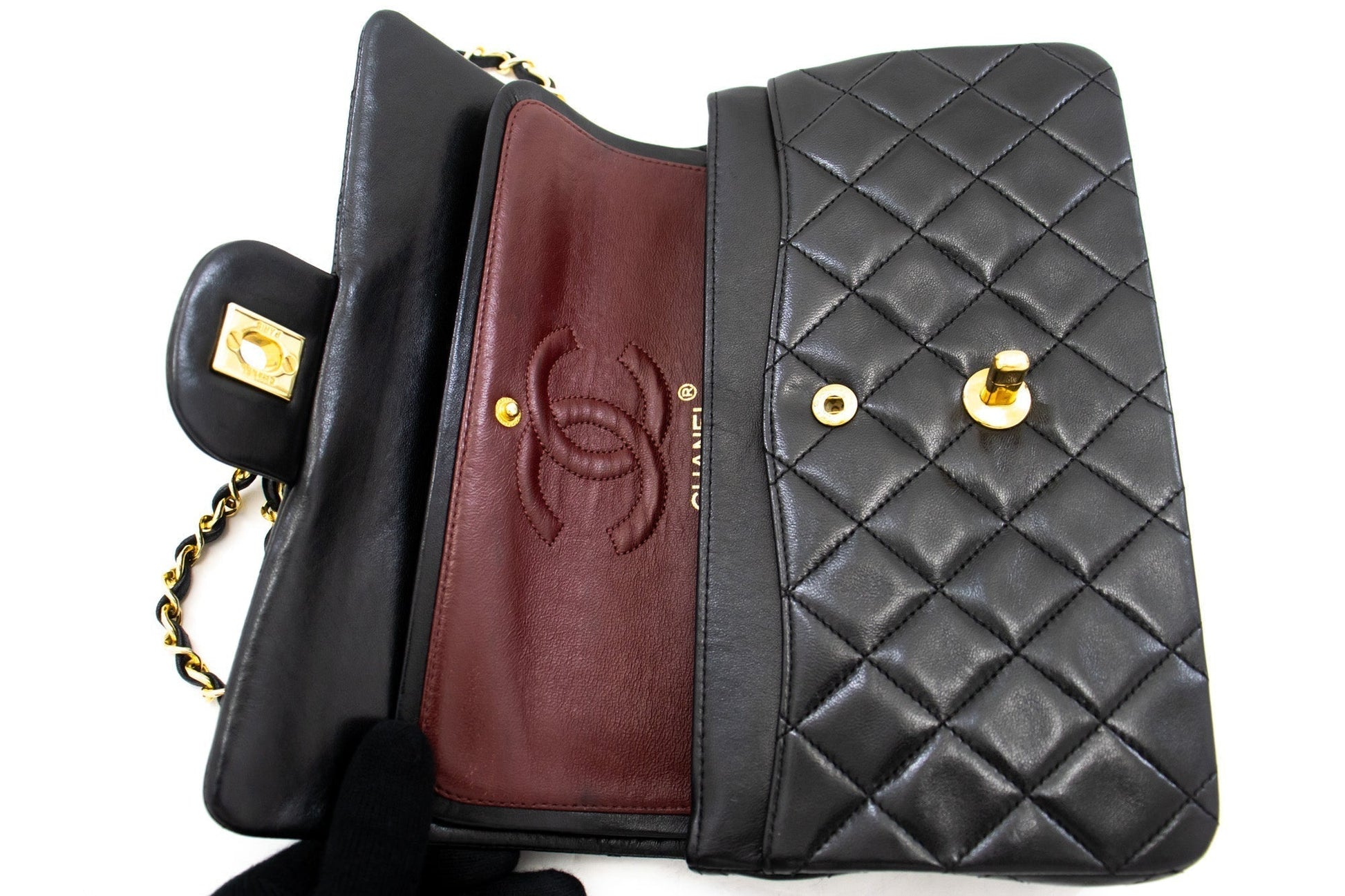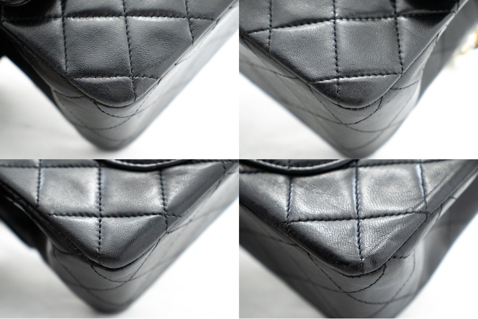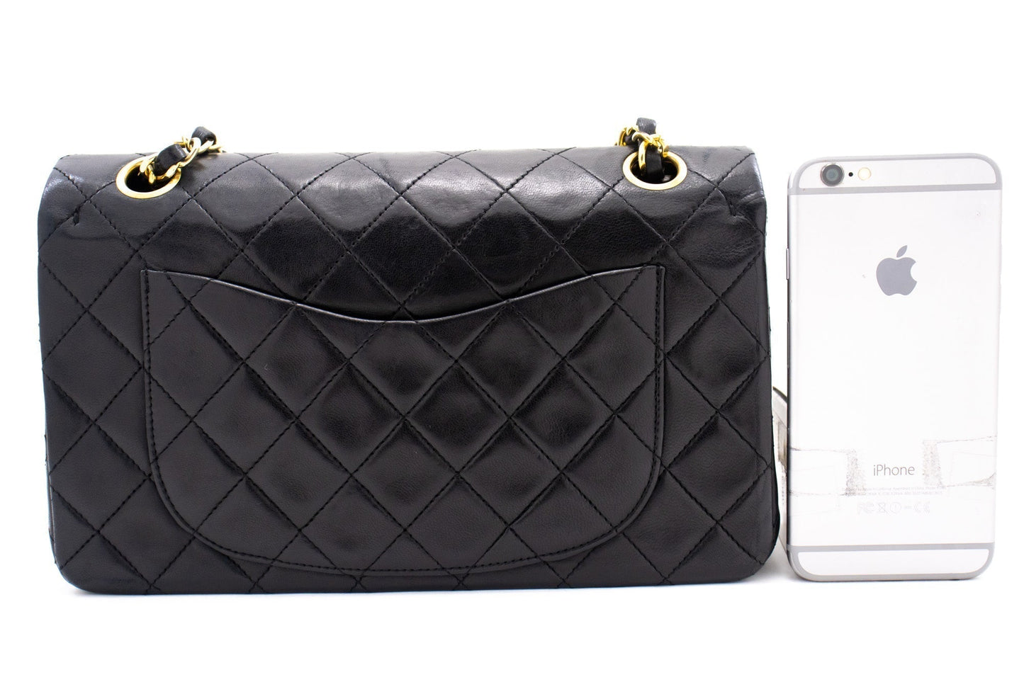 An CHANEL Classic Double Flap 9" Chain Shoulder Bag Black made of black Lambskin k80 This item is Vintage / Classic. The year of manufacture would be 1989-1991.