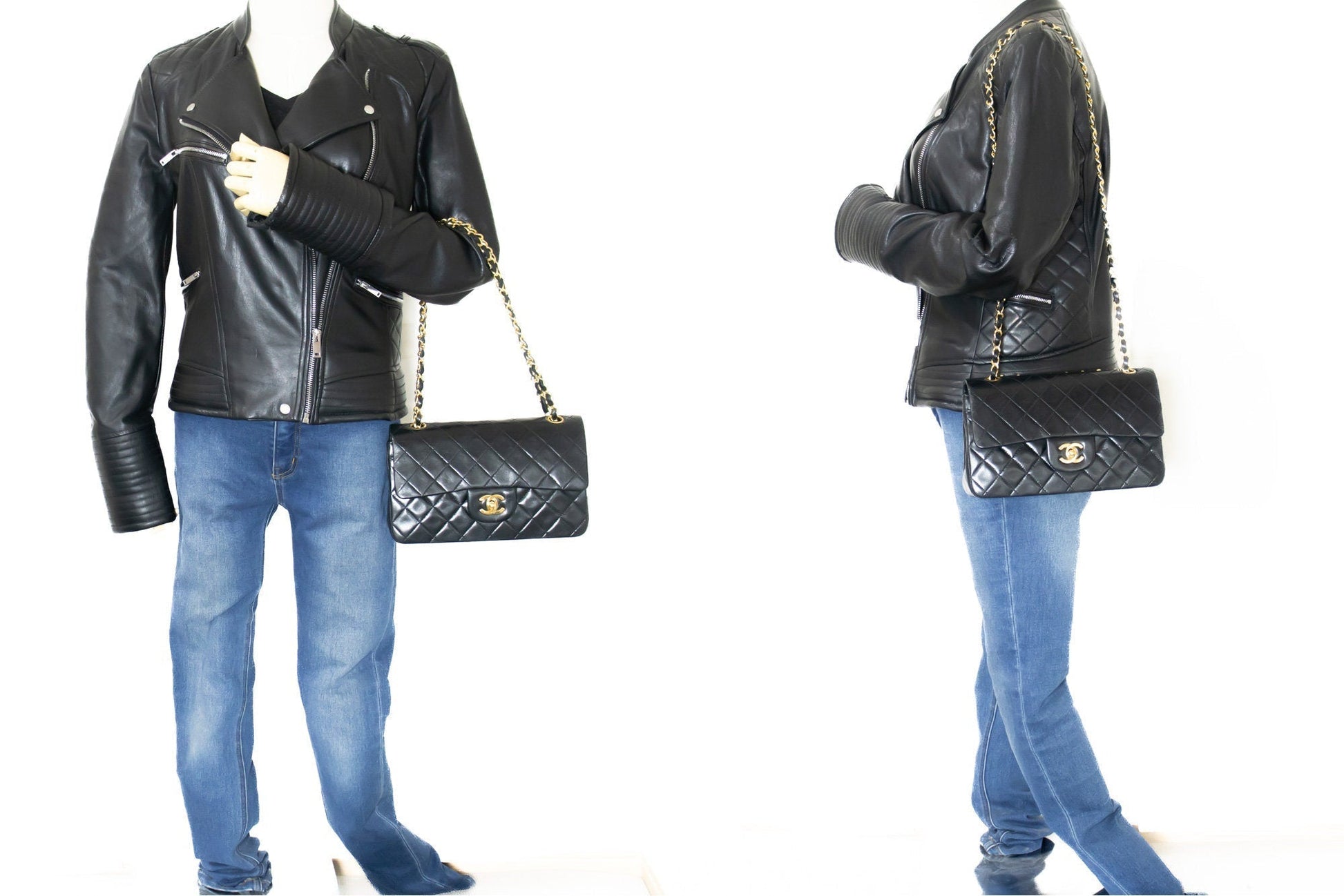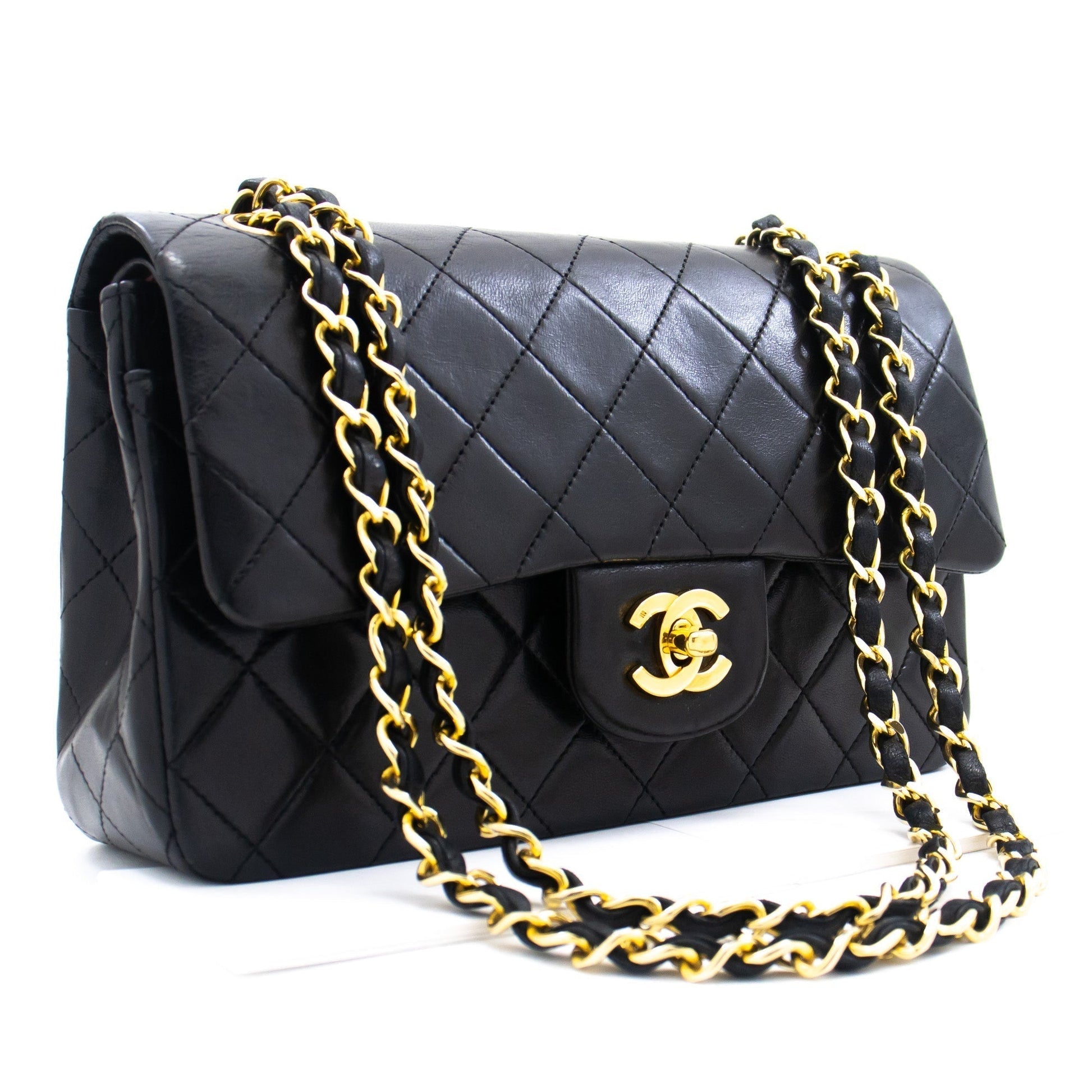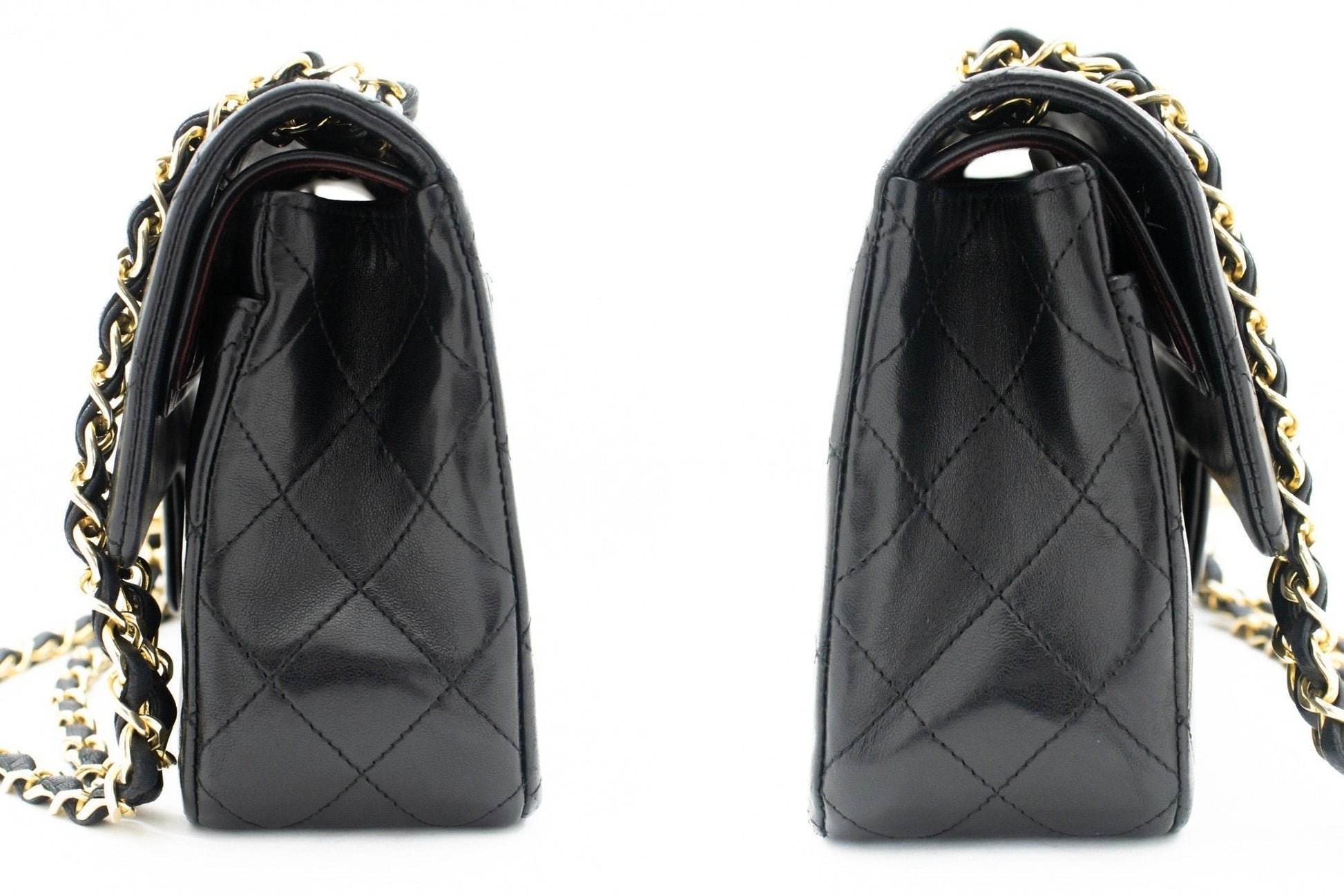 An CHANEL Classic Double Flap 9" Chain Shoulder Bag Black made of black Lambskin k80 This item is Vintage / Classic. The year of manufacture would be 1989-1991.