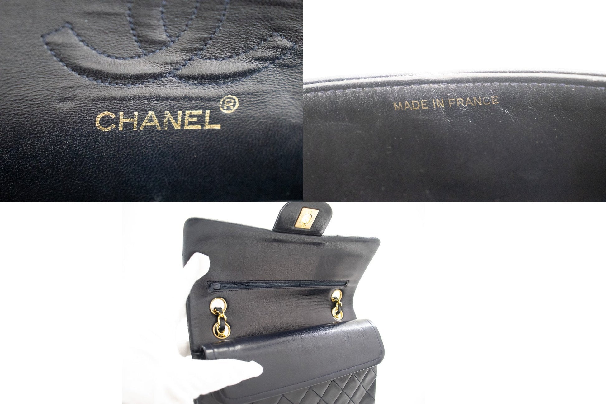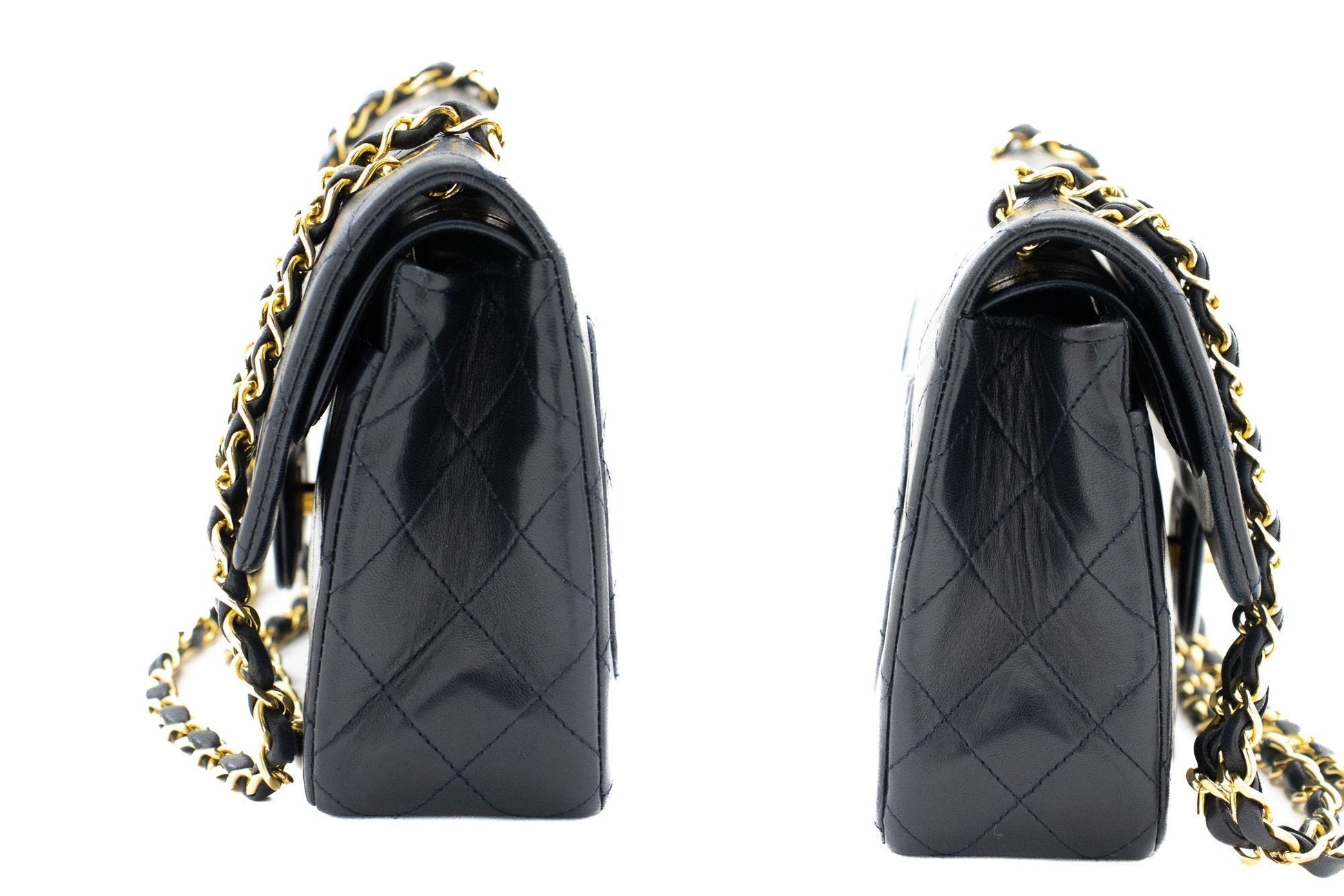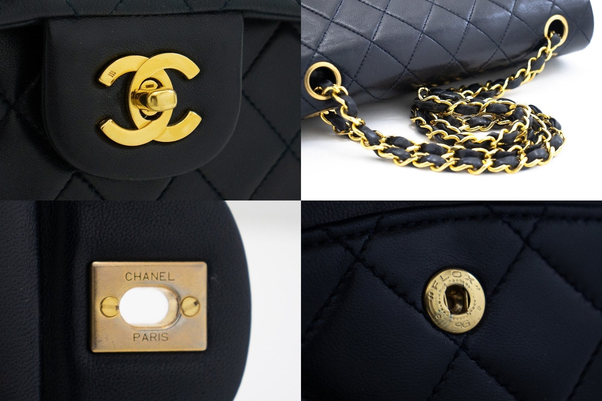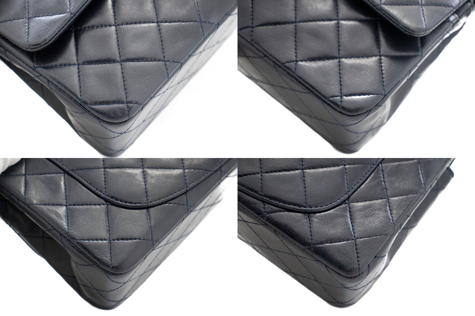 An CHANEL Classic Double Flap 9" Chain Shoulder Bag Navy made of black Lambskin g71 This item is Vintage / Classic. The year of manufacture would be 1986-1988.